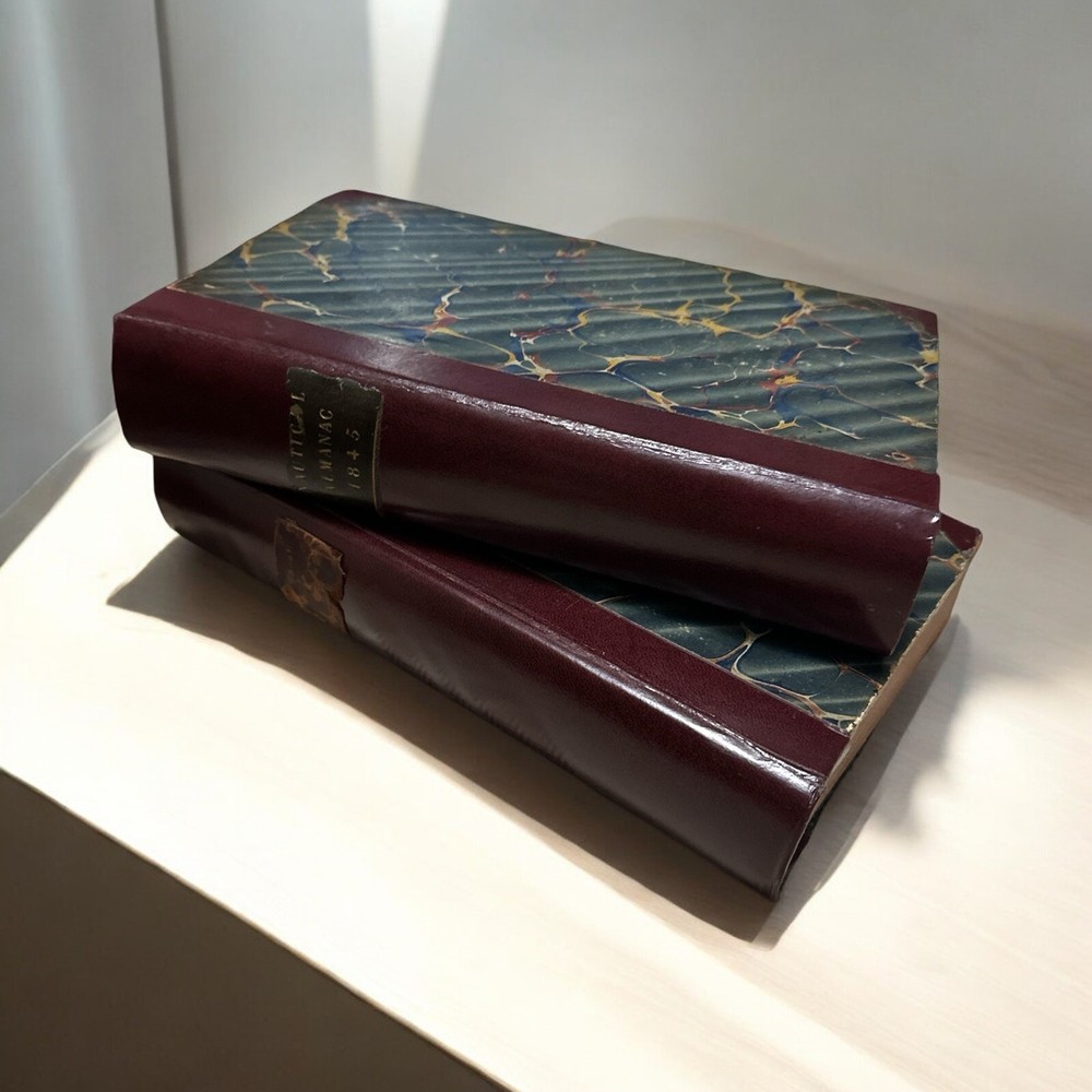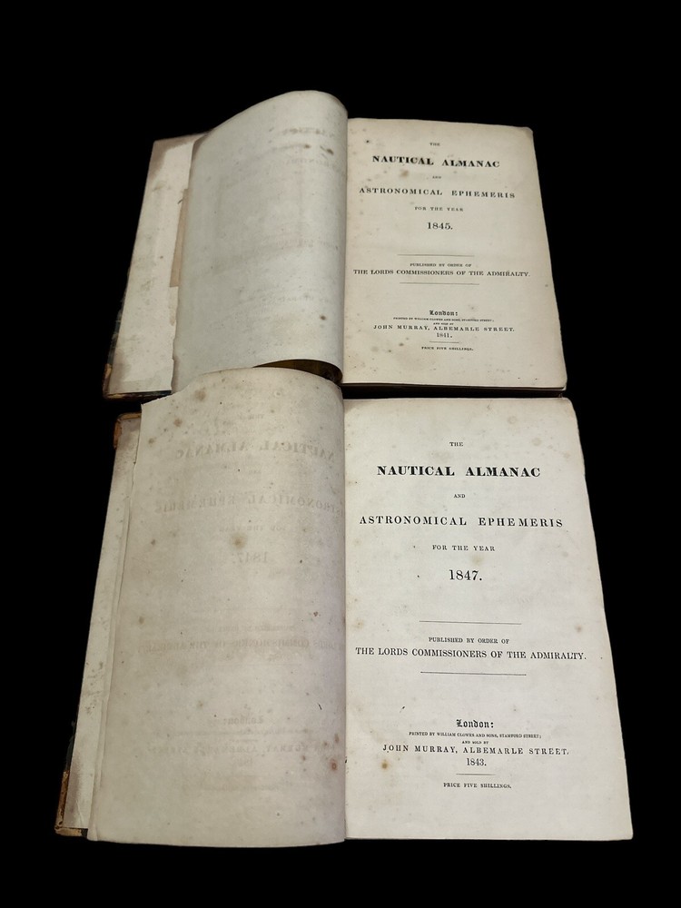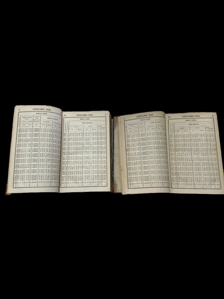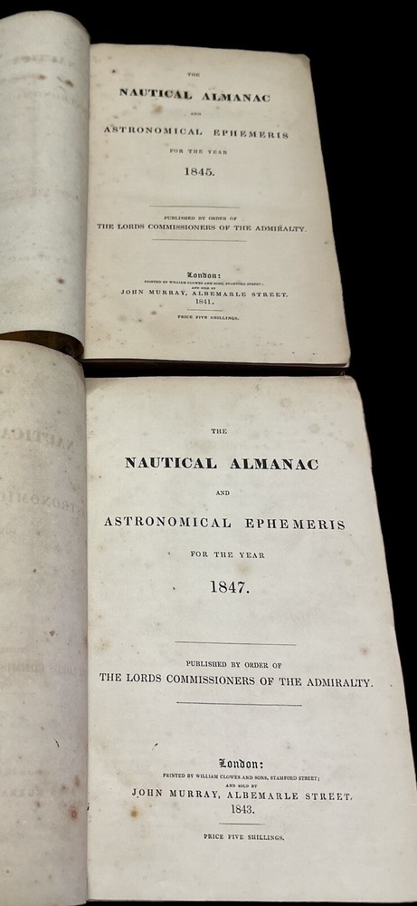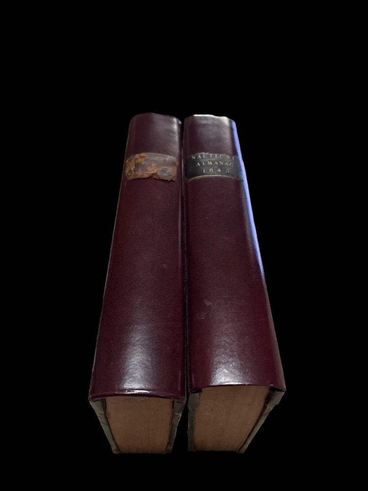LOT OF 2..1845/1847….PLEASE SEE ALL PICS…This is a rare and valuable set of two nautical almanacs and astronomical ephemeris published by John Murray in 1845/1847. The books are bound in leather and printed in English language. They contain comprehensive information on the positions of celestial bodies and their influence on navigation. The almanacs are original and authentic, and are a must-have for any collector of antique maps and charts. They are a dictionary and reference guide for navigators, and were published in London, United Kingdom. The set includes no modified or facsimile copies, and is a great addition to any library or collection.