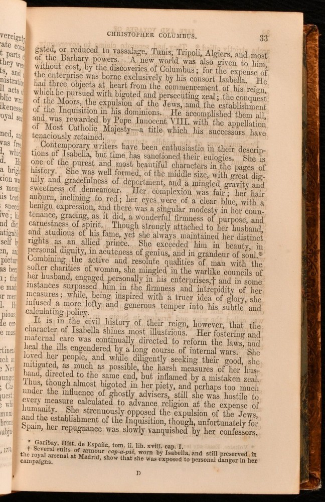 Click here to see our other books! The Life and Voyages of Christopher Columbus Together with The Voyages of His Companions Washington Irving 1850 George Routledge and Sons : London 6.5" by 4" [2], 269, 190pp SUMMARY A fascinating biography of the life and voyages of Christopher Columbus. Leather Binding,Prize Binding Overall Condition: Very Good This book weighs 0.5 KG when packed UK Postage: £ 3.99 US Postage: £ 15.99 EU Postage : £ 13.99 European Postage: £ 14.99 Asia Postage: £ 18.99 Worldwide Postage: £ 19.99 DESCRIPTION This is a copy of The Life and Voyages of Christopher Columbus Together and The Voyages of His Companions by Washington. Christopher Columbus was an Italian explorer and navigator who completed four Spanish-based voyages across the Atlantic Ocean, which opened the way for widespread European explorations and colonisation of the Americas. New and Revised Edition. In prize binding for Bristol Grammar School. CONDITION In full calf leather, prize binding for Bristol Grammar School. Externally, smart with some marks to the spine and boards. With a light pencil mark inscription to the front free endpaper. Internally, firmly bound with bright and clean pages. Overall Condition: Very Good GLOSSARY OF TERMS Overall Condition (Dustwrapper condition rating is shown after that for the book itself, where a dustwrapper is present) Fine - Very well preserved copy showing very little wear Very Good Indeed - Only one or two minor faults, really a very attractive copy Very Good - Quite a wide term meaning no major faults but probably several smaller ones often expected given the age of the book, but still a respectable copy Good - Meaning not very good. Some more serious faults as will be described in the condition report under 'condition' Good Only - Meaning one or more faults that could really do with repair Fair - As with good only above but with other faults leaving a compromised copy even after repair Poor - Really bad and possibly seriously incomplete. We only sell books in this condition where their rarity or value makes them attractive none the less. Major defects will be described. GUARANTEE We offer a full money back guarantee on our descriptions. Please ask for details and conditions. We prefer PAYPAL. If you pay via PAYPAL we will post the item off the same or the next working day with the postage you have selected. Please note we cannot accept USD cheques