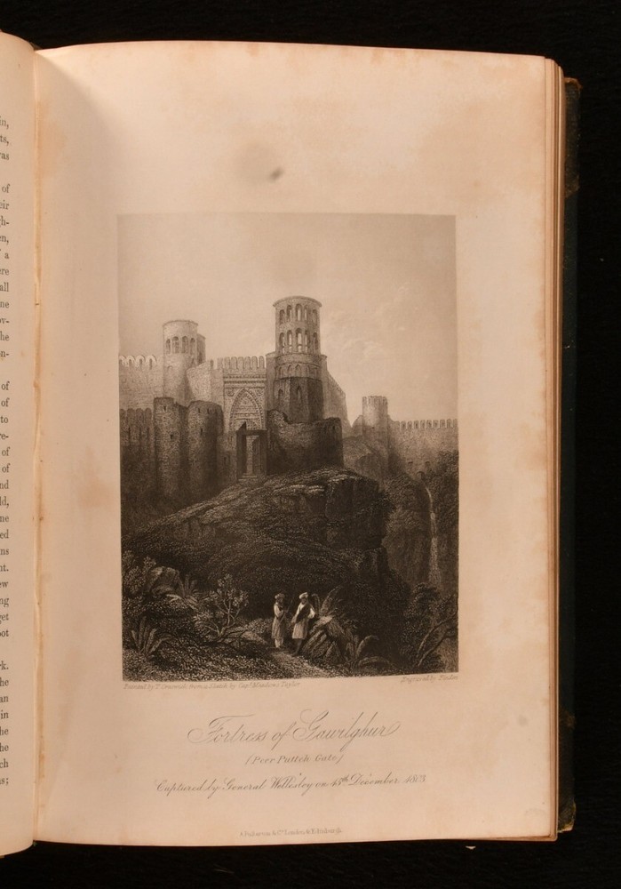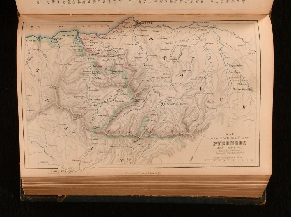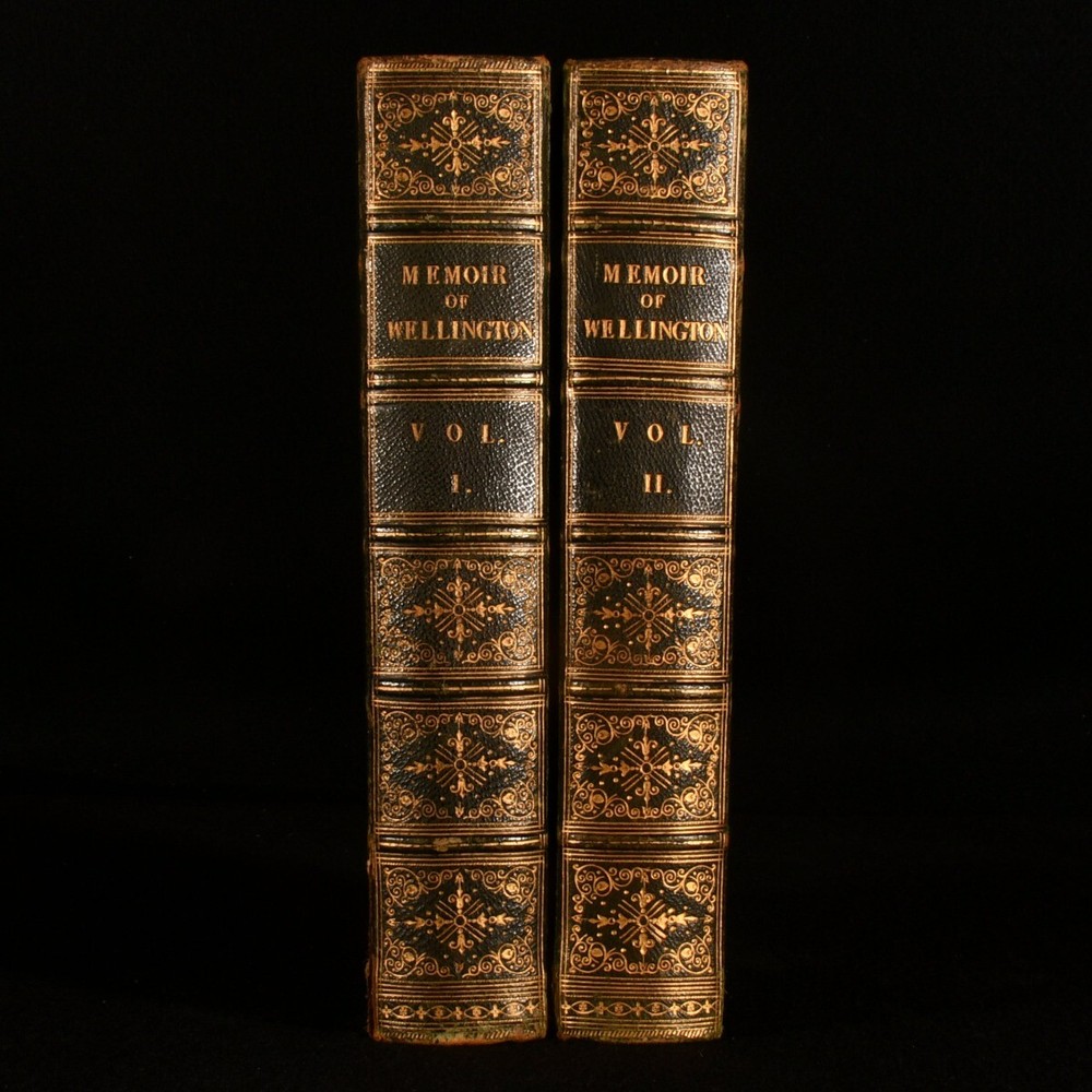 Click here to see our other books! A Memoir of Field-Marshal The Duke of Wellington with Interspersed Notices of His Principal Associates in Council and Companions and Opponents in Arms John Marius Wilson 1854-1854 A. Fullarton and Co. : London 9" by 6.5" xii, 644pp; vii, 632pp SUMMARY A memoir of 19th century political and military leader Arthur Wellesley, the First Duke of Wellington. In two volumes. Early Edition,Illustrated,Leather Binding Overall Condition: Very Good This book weighs 3 KG when packed UK Postage: £ 3.99 US Postage: £ 36.99 EU Postage : £ 25.99 European Postage: £ 17.99 Asia Postage: £ 47.99 Worldwide Postage: £ 69.99 DESCRIPTION Both volumes of John Marius Wilson's memoir of Arthur Wellesley, the First Duke of Wellington. Complete with 37 plates of maps and portraits. With letters and comments from those who knew him, this memoir offers the reader a comprehensive view of the 19th century military and political leader. As well as serving as Conservative prime minister between 1828 and 1830, and briefly again in 1834, Wellesley's superior military defence was crucial in the Napoleonic Wars. Prior owners blind stamp to recto of front free endpaper in both volumes. 'Capt. H. G. Innes R. N. West Monkton. Taunton'. No author given. Attributed to John Marius Wilson using JISC. Undated. Dated using JISC from estimate of the National Trust Library and others. CONDITION In half morocco binding over cloth. Externally, generally smart. Lightly rubbed to the boards and the joints, with a little wear to the extremities. Front hinge of volume I starting but firm. Internally, firmly bound. Pages a little age-toned, but generally clean aside from the first and last few pages. Overall Condition: Very Good GLOSSARY OF TERMS Overall Condition (Dustwrapper condition rating is shown after that for the book itself, where a dustwrapper is present) Fine - Very well preserved copy showing very little wear Very Good Indeed - Only one or two minor faults, really a very attractive copy Very Good - Quite a wide term meaning no major faults but probably several smaller ones often expected given the age of the book, but still a respectable copy Good - Meaning not very good. Some more serious faults as will be described in the condition report under 'condition' Good Only - Meaning one or more faults that could really do with repair Fair - As with good only above but with other faults leaving a compromised copy even after repair Poor - Really bad and possibly seriously incomplete. We only sell books in this condition where their rarity or value makes them attractive none the less. Major defects will be described. GUARANTEE We offer a full money back guarantee on our descriptions. Please ask for details and conditions. We prefer PAYPAL. If you pay via PAYPAL we will post the item off the same or the next working day with the postage you have selected. Please note we cannot accept USD cheques