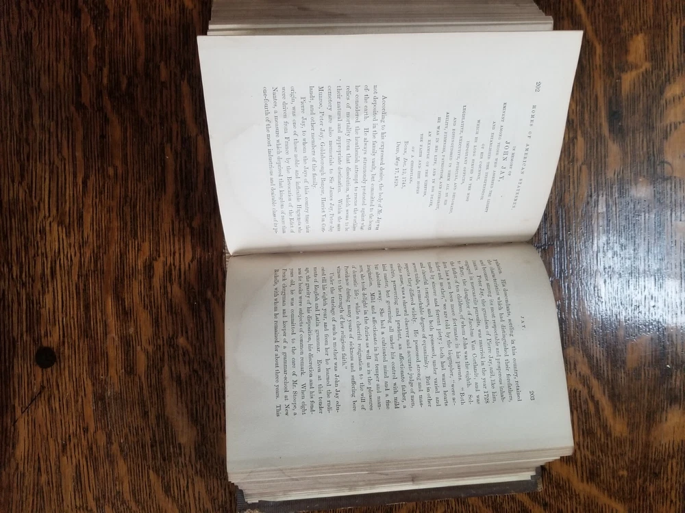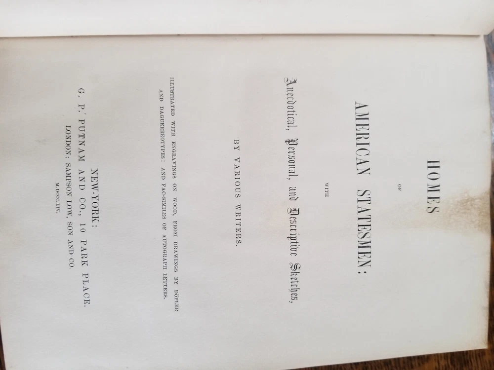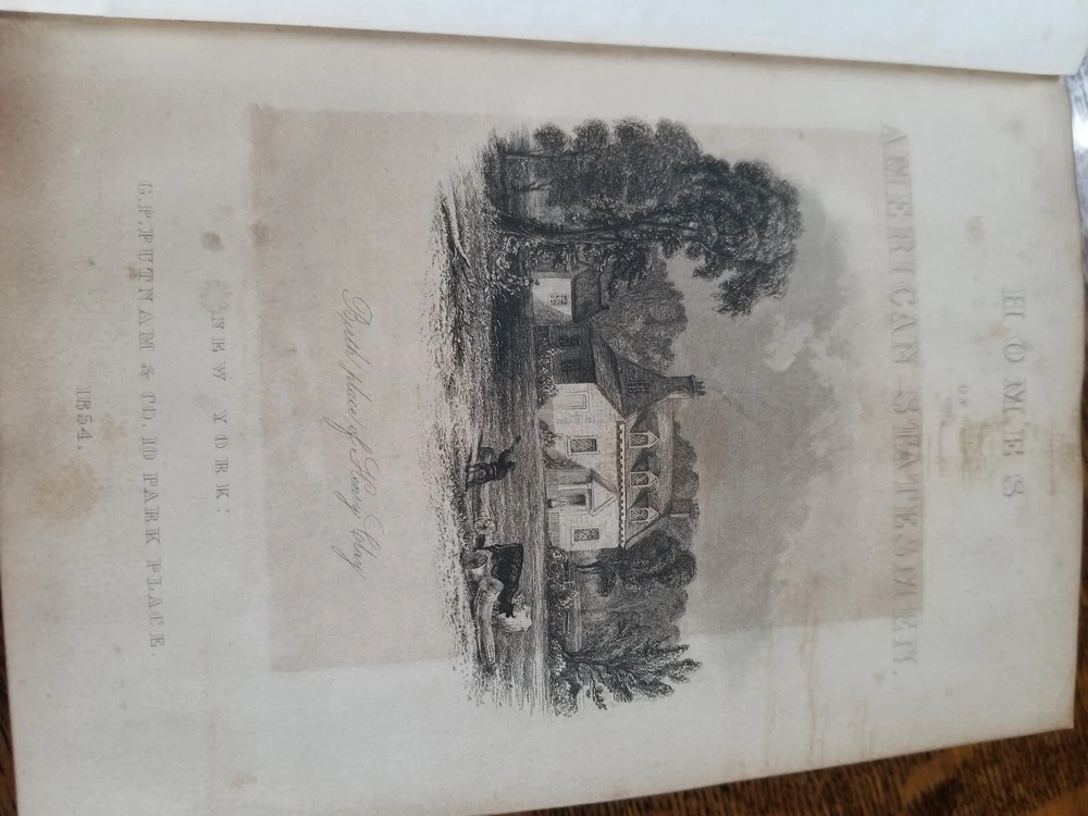 Explore the rich tapestry of American history with the 1854 "Homes of American Statesmen," an illustrated first edition that offers a fascinating glimpse into the lives of seminal figures like George Washington, Thomas Jefferson, and John Hancock. Published by G.P. Putnam and Co., this collectible is a testament to the enduring legacy of North America's founding fathers, compiled by various authors who bring these biographical subjects to life in vivid detail. Bound in supple leather and printed in New York, this piece is a treasure for both bibliophiles and history aficionados. It is a genuine original, complete with its language and regional associations, representing a remarkable period in American literature and culture. Delve into the past with this singular volume, a jewel for your library or a thoughtful gift for a history enthusiast. A personal note on an inside page from the original owner as gifted to the recipient and dated 1854 included. Overall binding is still sharply intact with minimal separation limited to the beginning cover page. Also evidence of minimal traces of wetness in some of the pages to the back. Overall condition while not pristine is very good.