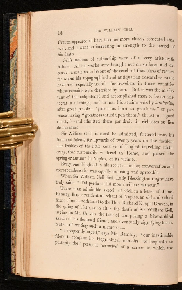 I bought this for the copy's associations with a family I'm interested in, thanks to the suggestions about provenance in the seller's description. The description and photos told me all I needed to know about the book - clearly the right family, though I have my own view on the individual who owned it - but that is part of the fund of an old book. It arrived promptly - a couple of days' delay caused by UPS - safely packaged and a good price, I think.