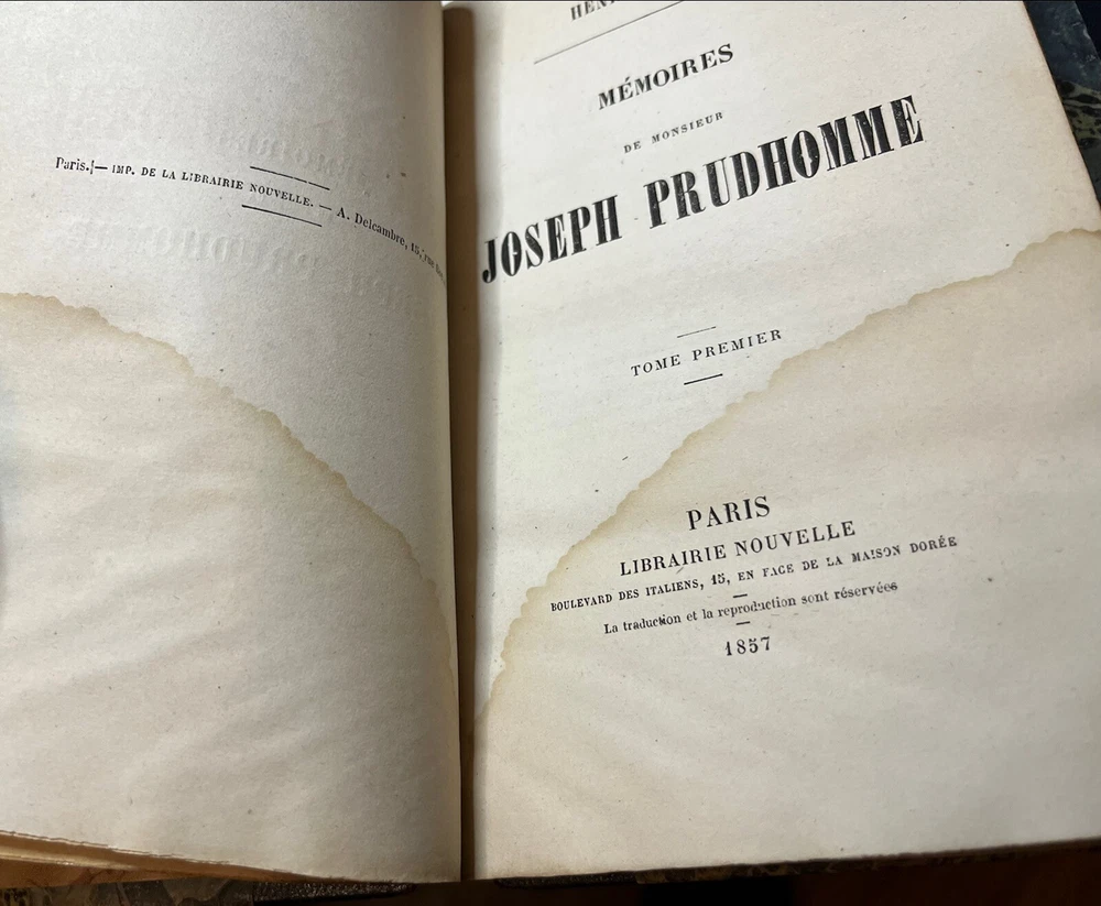 1857 Two-volume hardcover set w/leather spines and marbled boards. Text in French. Sturdy and attractive set with minor deterioration/wear to areas of leather, rubbing/bending to boards, usual wear to extremities, staining/ripple to lower third of first 100p. of Vol. 1, contents very clean & free from markings/marginalia.