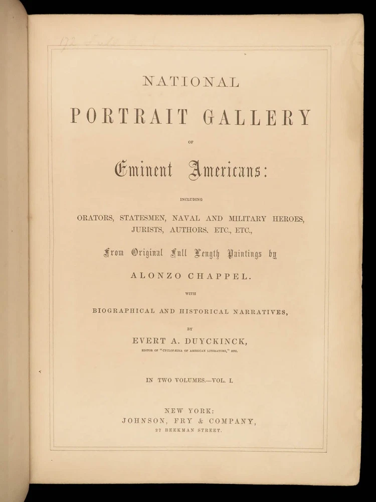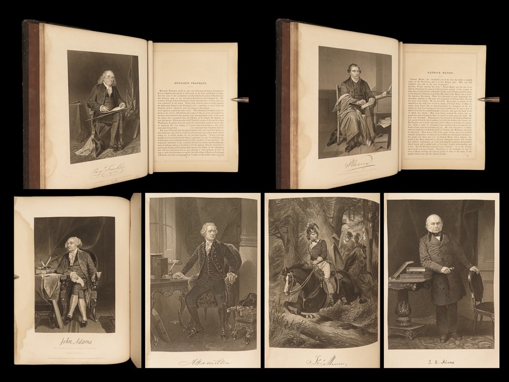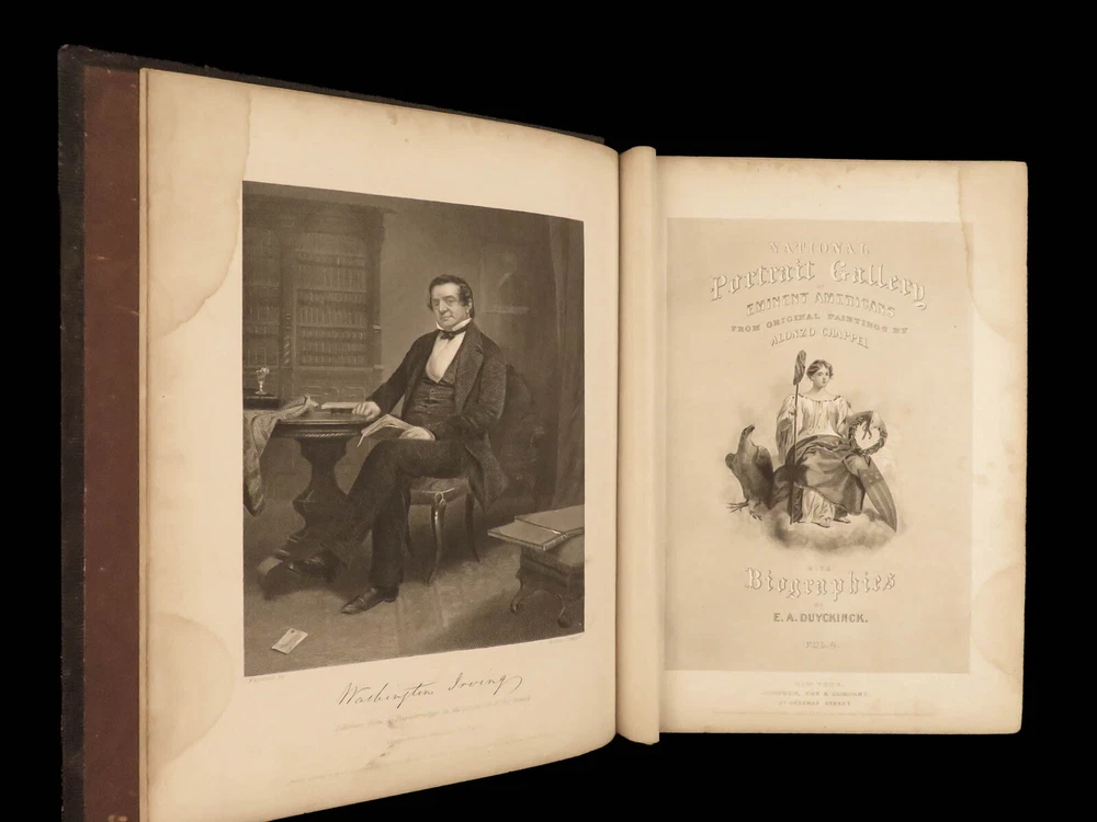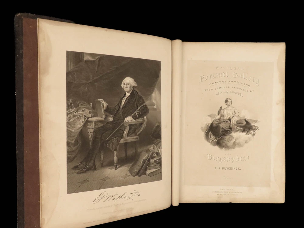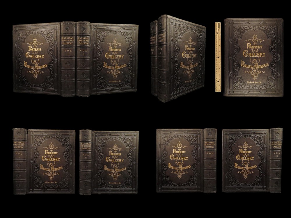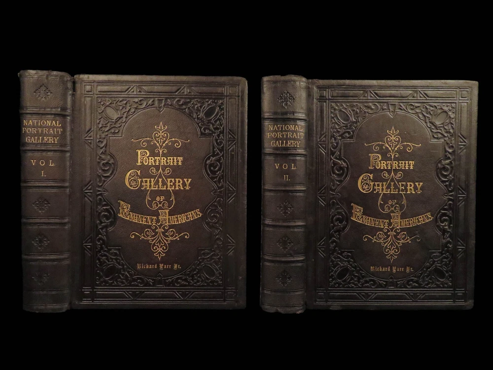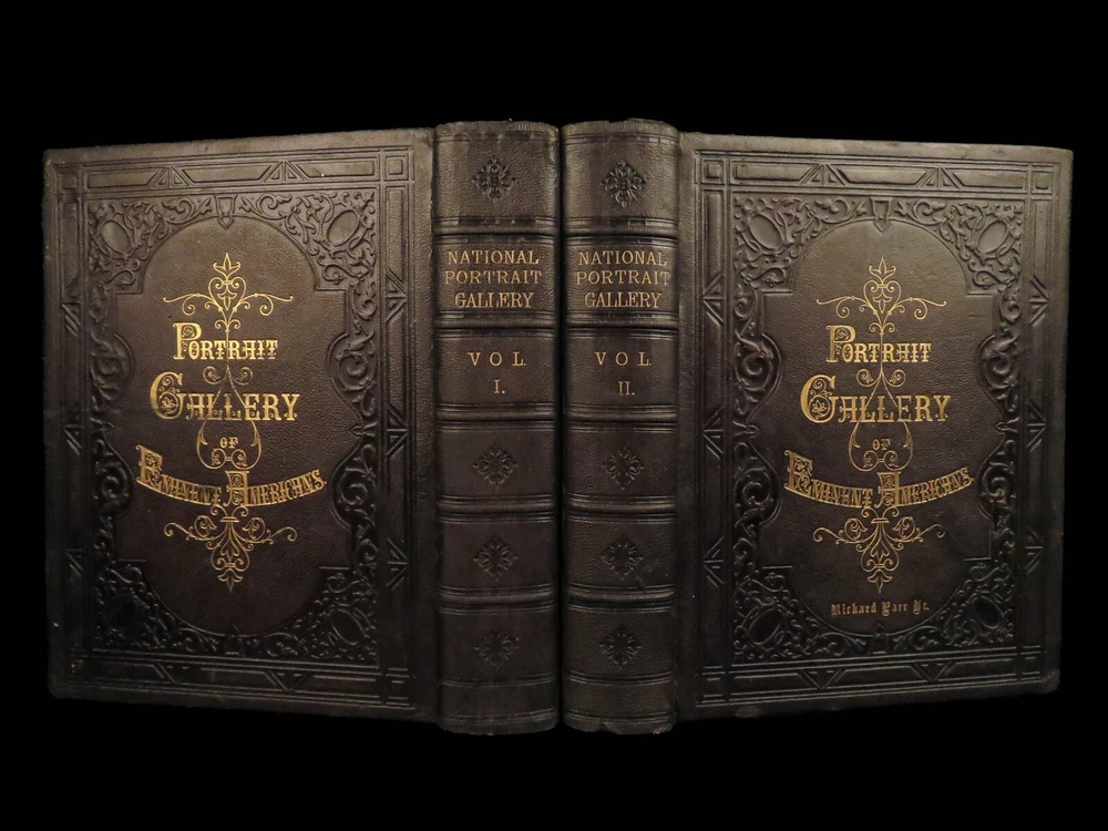 1862 EXQUISITE 1 ed National 119 Portraits ART Gallery Washington Jefferson USA Illustrated by “perhaps one of the best historical illustrators in the United States,” Alonzo Chappel. (Metropolitan Museum of Art, N.Y.) ‘National Portrait Gallery’ is one of the most impressive collections of biographies of famous Americans with portraits of leading figures from American History. This incredible set contains biographies of American leaders such as George Washington, Benjamin Franklin, Thomas Jefferson, and Alexander Hamilton. The appeal of this work, however, is the 119 portrait engravings by Alonzo Chappel. Item number: #30569 Price: $750 DUYCKINCK, Evert National portrait gallery of eminent Americans: including orators, statesman, naval and military heroes, jurists, authors, etc., etc. from original full-length paintings by Alonzo Chappel, with biographical and historical narratives. New York: Johnson, Fry & Company, 1862. First edition Details : · Collation: Complete with all pages; 2 volumes o Vol. I –viii, iii-iv, 9-488 o Vol. II – iv, 470 o 100+ portraits & vignette titles · Language: English · Binding: Leather; tight and secure · Size : ~11.25 in X 8.75in (28.5cm x 22cm) Our Guarantee: Very Fast. Very Safe. Free Shipping Worldwide. Customer satisfaction is our priority! Notify us with 7 days of receiving, and we will offer a full refund without reservation! 30569