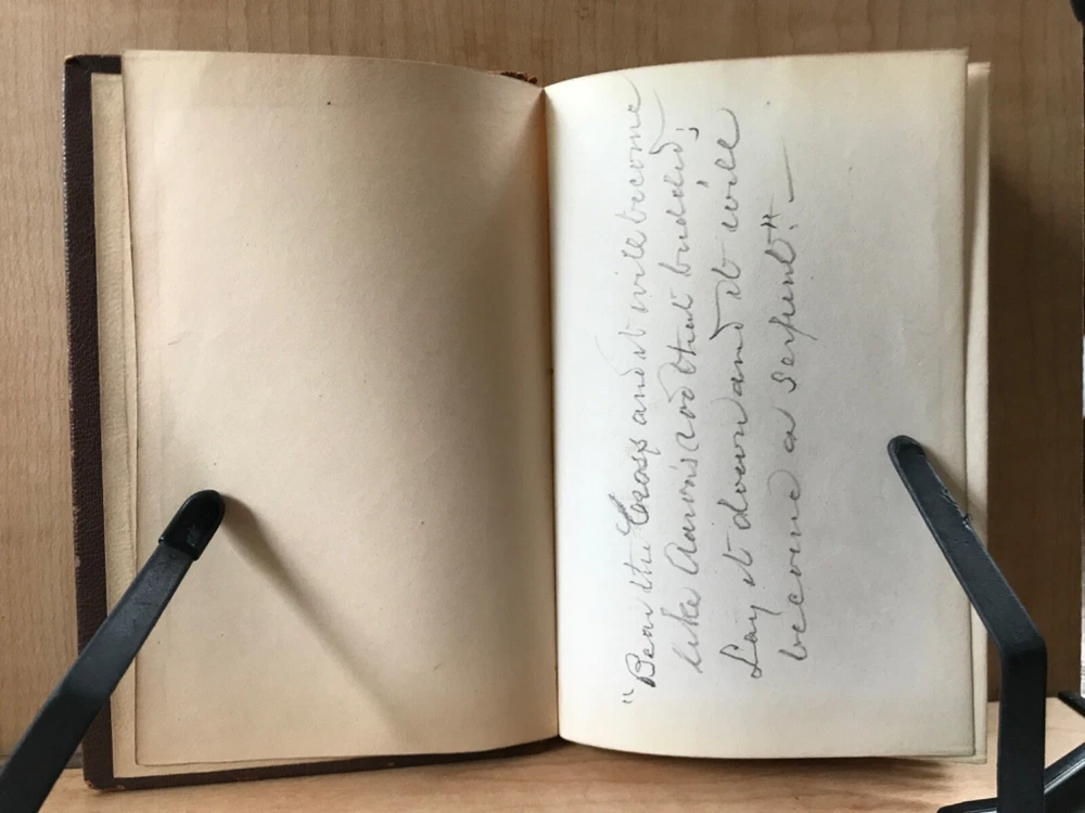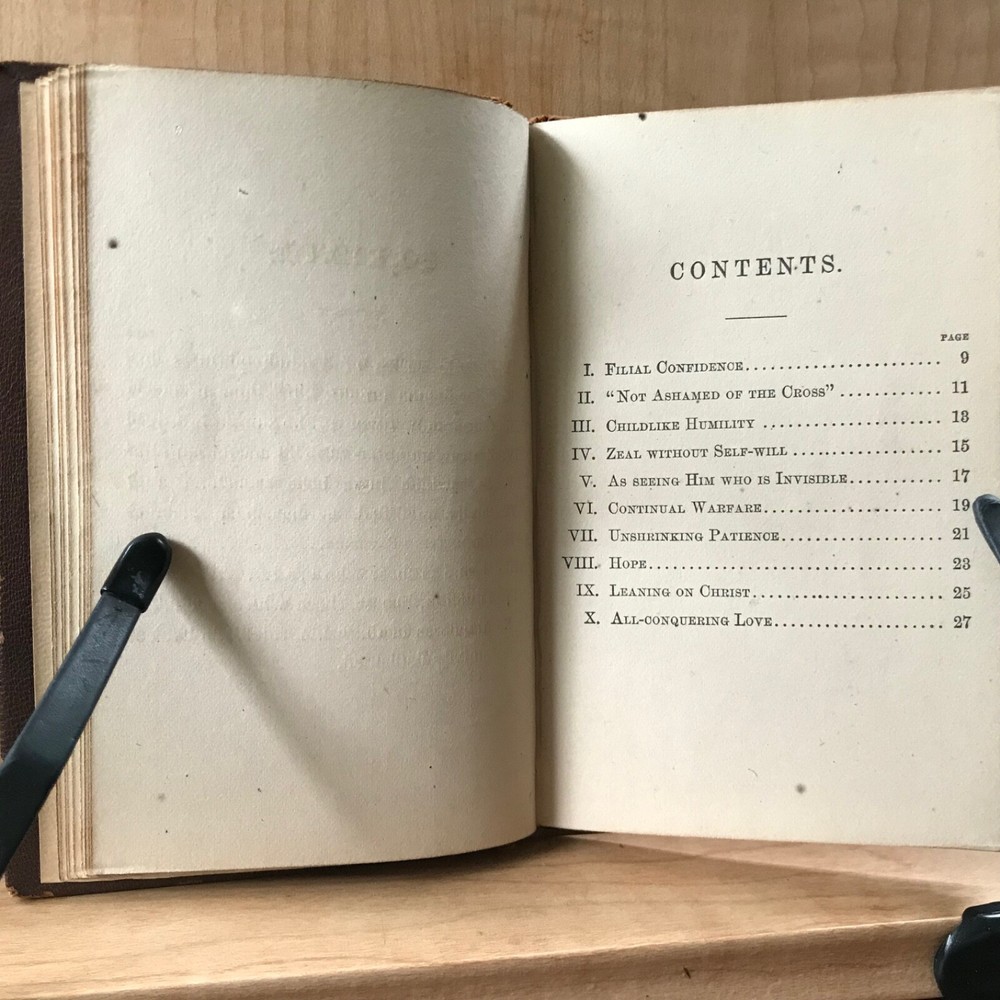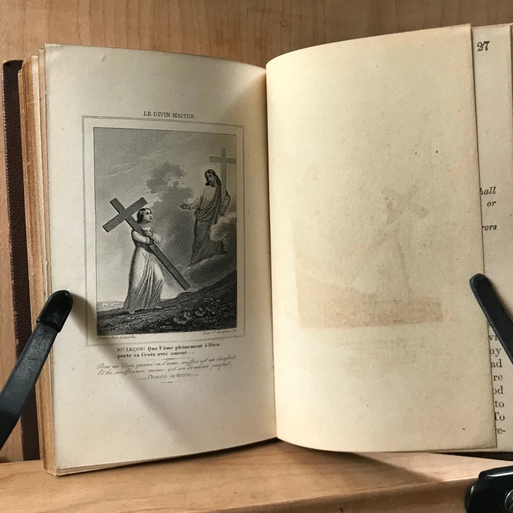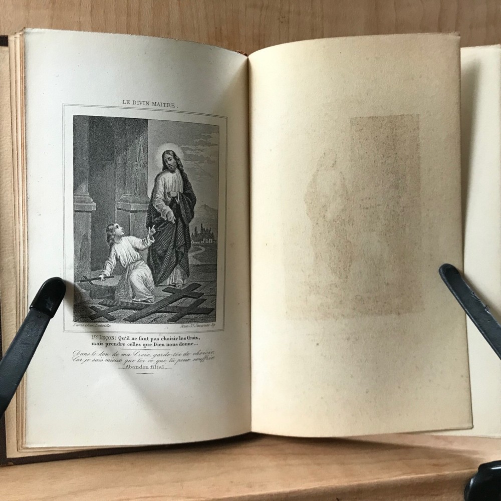 Bearing the Cross; Or, The Diving Master, General Protestant Episcopal S. School Union and Church Book Society, New York, 1864, 28 pp, illustrated, full leather, 5.75 x 3.75”, 32mo. In good condition. Light wear to extremities with minor scuffing along corners. More heavier scuffing and rubbing along spine with dryness and light red rot. Deborah Adams tooled in gilt on front board. End papers clean. Quote in old hand graphite on second fly leaf. Interior lightly toned. Minimal foxing. Light offsetting from plates. Binding tight and intact. Please see photos. A personalized book of Christian living with insights on hope and patience taught by Christ. COLR1864ABBN