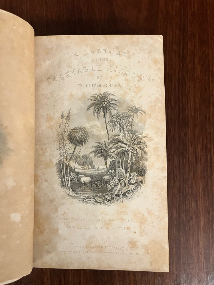 Clean pages - overall VG + condition especially for its age Smoke feee home - no funky odor This antique book from 1866, titled "History Of The Vegetable Kingdom" by William Rhind, is a rare find for any collector or enthusiast of natural history reference books. The book is beautifully bound in leather and features stunning color plates that enhance the reading experience. In addition to its visual appeal, this original printing from Blackie and Son: London, is written in English and covers a range of topics related to the plant kingdom. It is in great shape, with no inscriptions or personalization, and would be a valuable addition to any collection.