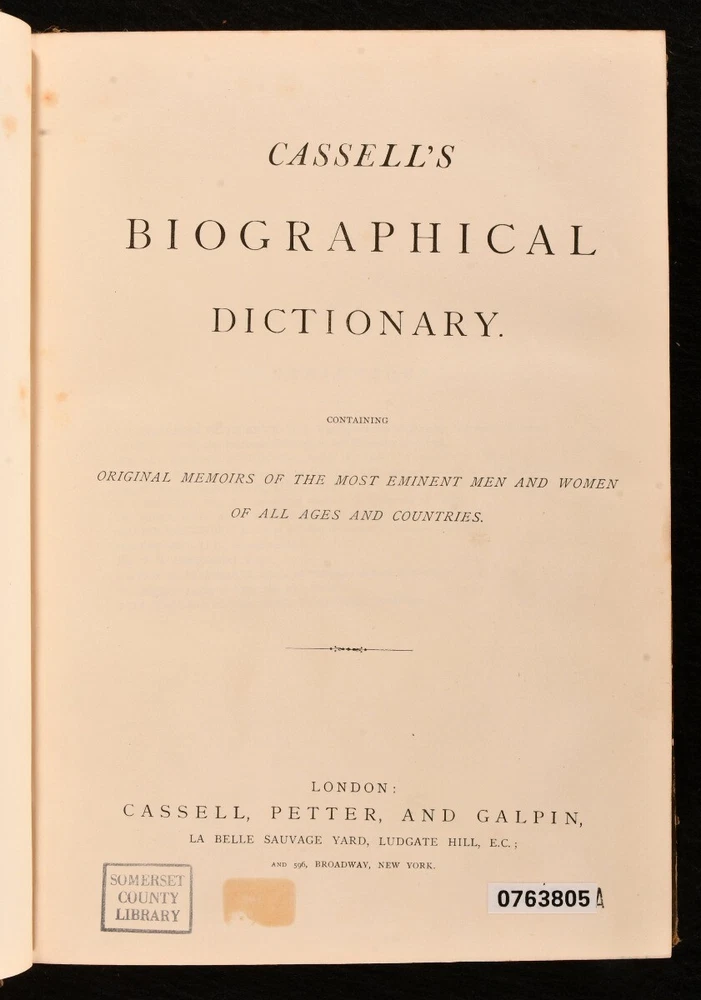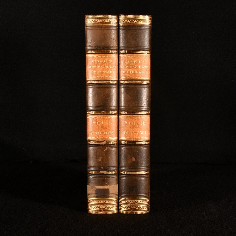 Click here to see our other books! Cassell's Biographical Dictionary containing Original Memoirs of the most Eminent Men and Women of all Ages and Countries Not Stated [1867-9] Cassell, Petter & Galpin : London 10.5" by 7.5" viii, 576; 577-1160pp. SUMMARY Cassell's sweeping biographical dictionary in two volumes, handsomely bound in uniform half calf. Illustrated,Leather Binding,Rebound Overall Condition: Very Good Indeed This book weighs 4 KG when packed UK Postage: £ 4.49 US Postage: £ 39.99 EU Postage : £ 26.99 European Postage: £ 36.99 Asia Postage: £ 65.99 Worldwide Postage: £ 99.99 DESCRIPTION Bound in two volumes with continuous pagination, dated from Copac. An extensive biographical dictionary, containing original memoirs of numerous eminent men and women from all age and country. Contributors include the Rev, Canon Payne Smith, Aurelio Saffi, Colonel Medows Taylor, and J. F. Waller among others. Illustrated with thirty-four full page plates. CONDITION Rebound in uniform half calf binding over marbled board and edges, renewed endpapers. Externally very smart with minor shelf wear only. Evidence of the removal of library shelf number label to spine vol. I. Library bookplate to front free endpaper, with minor library stamps to title page. Internally, firmly bound. Minor spotting to odd leaf, otherwise pages generally bright and clean. Overall Condition: Very Good Indeed GLOSSARY OF TERMS Overall Condition (Dustwrapper condition rating is shown after that for the book itself, where a dustwrapper is present) Fine - Very well preserved copy showing very little wear Very Good Indeed - Only one or two minor faults, really a very attractive copy Very Good - Quite a wide term meaning no major faults but probably several smaller ones often expected given the age of the book, but still a respectable copy Good - Meaning not very good. Some more serious faults as will be described in the condition report under 'condition' Good Only - Meaning one or more faults that could really do with repair Fair - As with good only above but with other faults leaving a compromised copy even after repair Poor - Really bad and possibly seriously incomplete. We only sell books in this condition where their rarity or value makes them attractive none the less. Major defects will be described. GUARANTEE We offer a full money back guarantee on our descriptions. Please ask for details and conditions. We prefer PAYPAL. If you pay via PAYPAL we will post the item off the same or the next working day with the postage you have selected. Please note we cannot accept USD cheques