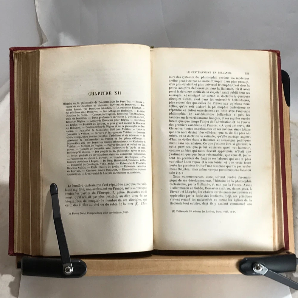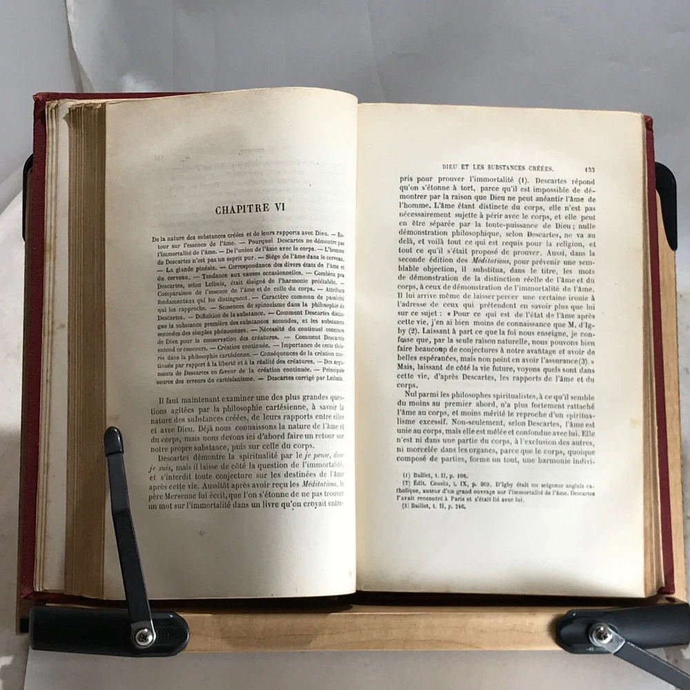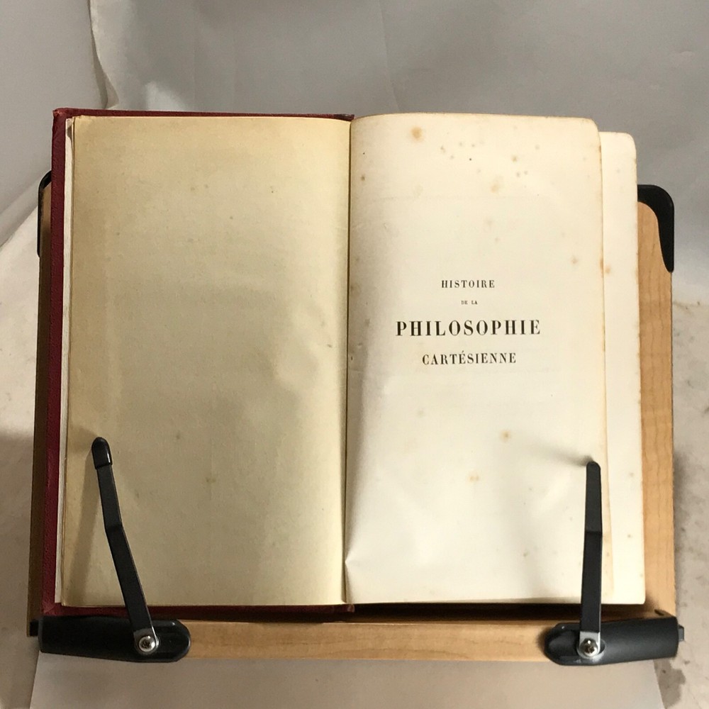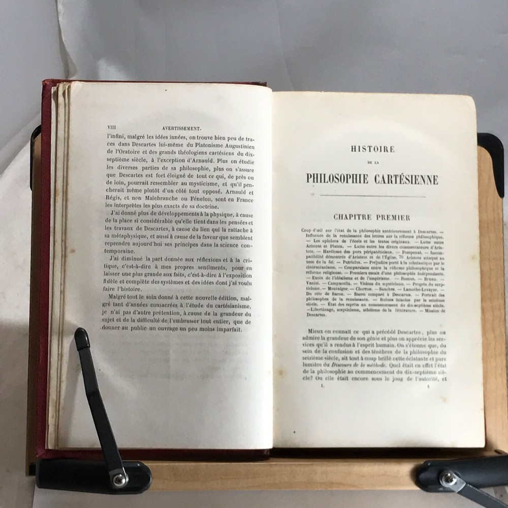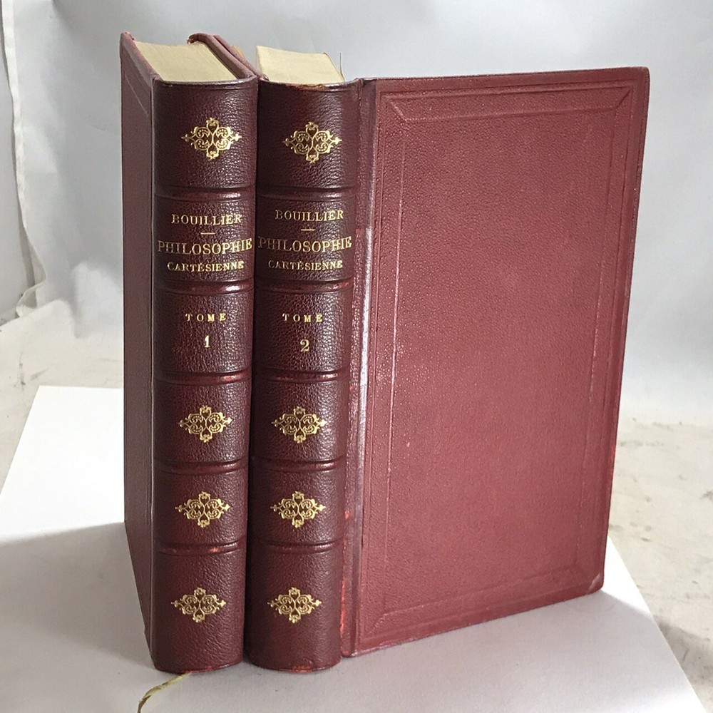 Histoire de la Philosophie Cartesienne, Francisque Bouillier, Troisieme Edition, Ch. Delagrave, Paris, 1868, two volumes, leather, 8vo. In good condition. Nicely bound. Boards show typical wear. Light surface dirt to boards. Spines are clean and gilt work is bright. Gilt fore edge is bright and clean. Gutters are shaken in both volumes. Front end papers are toned with foxing. Textblocks are bright and clean. Unmarked. Bindings are tight and intact. Please see photos. French biography of Descartes written by French philosopher Francisque Bouillier. He studied at the Ecole Normale Superieure, Paris and in 1839 was appointed professor of philosophy at the University of Lyons. He was dean of the faculty at Lyons and from 1867 to 1870 director of the Ecole Normal Superieure. COLH1868AIJA-variant