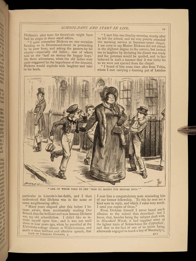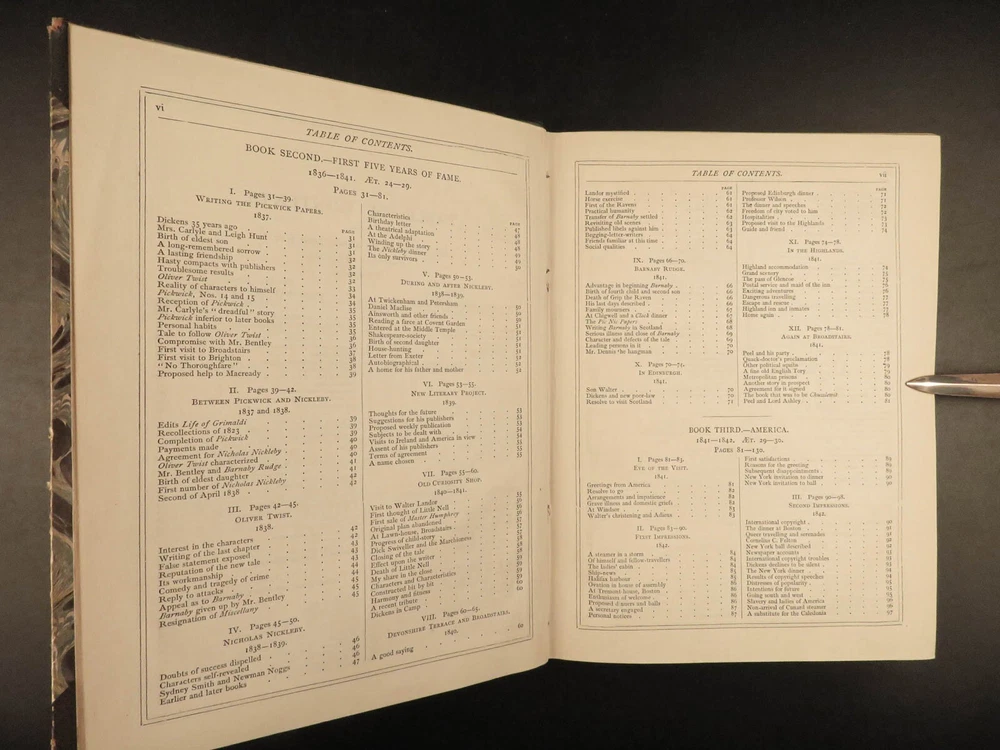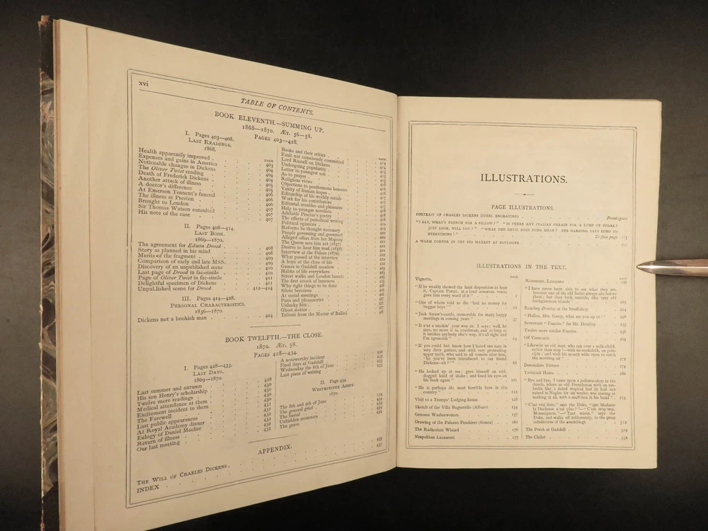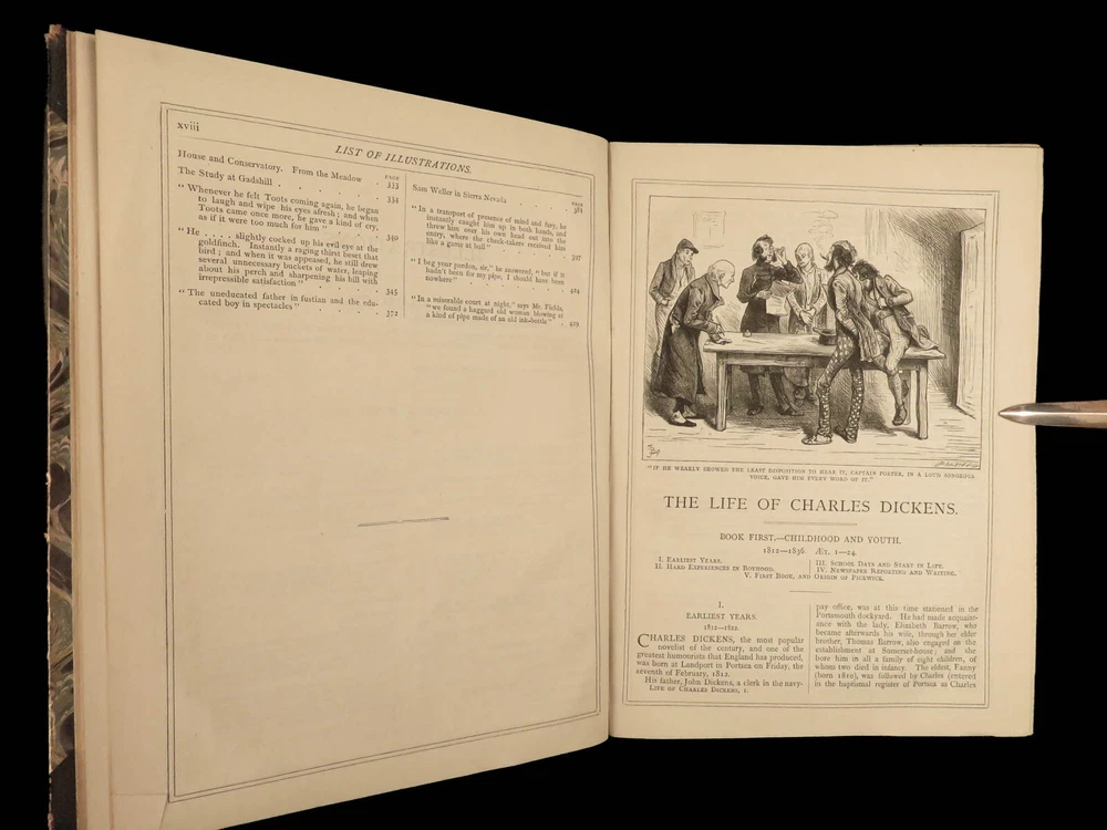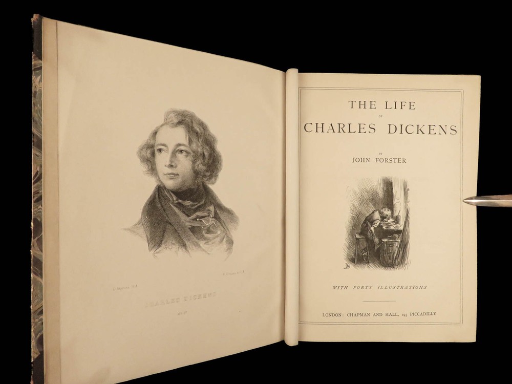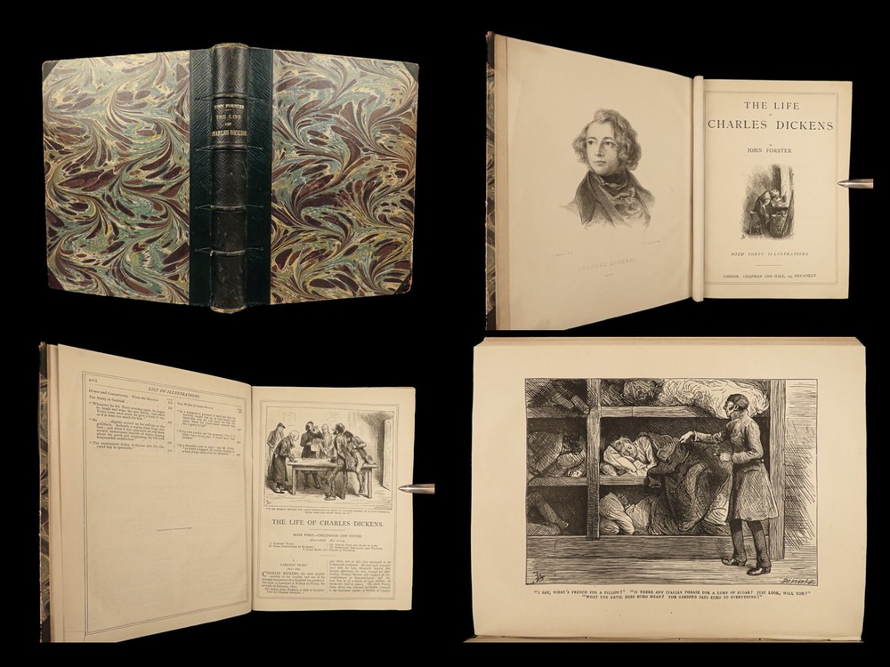 1872 Life of CHARLES DICKENS 1 st /1 st A Christmas Carol Oliver Twist Illustrated “ The Life of Charles Dickens ” is a detailed biography authored by John Forster, a close friend and advisor to Dickens since 1836, offering an intimate look into the life and career of the renowned Victorian novelist and social critic. Meticulously constructed, the book reflects the deep personal connection between the author and Dickens, who had entrusted Forster with manuscripts and appointed him as a co-executor of his will, signifying a relationship built on trust and mutual respect. The biography, initially released as a single volume in 1872 and later expanded to include up to six volumes, features 40 captivating engravings , weaving together a rich tapestry of Dickens’s vibrant life that spanned an extensive literary career with acclaimed serial publications known for their cliffhanger endings, and fervent advocacy for social reforms. Not only does the work portray Dickens as a literary maestro who revolutionized narrative fiction with his serialized novels, but it also paints a picture of a man deeply committed to societal betterment, underlining his relentless efforts to address poor social conditions through his art and personal influence. Item number: #41408 Price: $499 FORSTER, John The Life of Charles Dickens. London: Chapman and Hall, [1872]. First Edition. First Printing. Details : · Collation: Complete o xviii, 449, [1] o 40 engravings · Edition Note(s): o Published as a single volume. Later editions were printed as multi-volume sets. o Title Page: No publication date. o Copyright: No copyright date. · Language: English · Binding: Leather; secure · Size : ~9.5in X 7.75in (24cm x 19.5cm) · Quite scarce Our Guarantee: Very Fast. Very Safe. Free Shipping Worldwide. Customer satisfaction is our priority! Notify us with 7 days of receiving, and we will offer a full refund without reservation! 41408