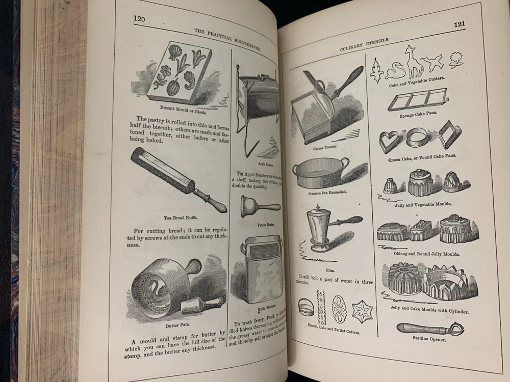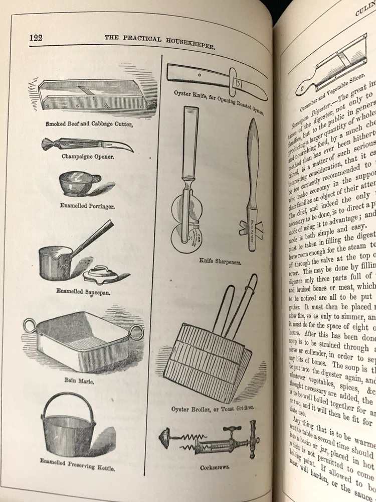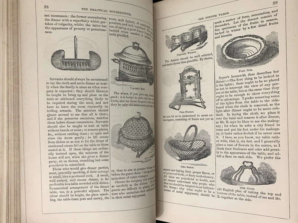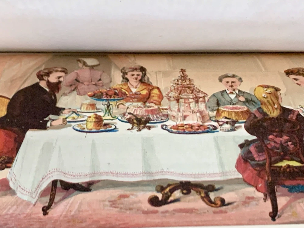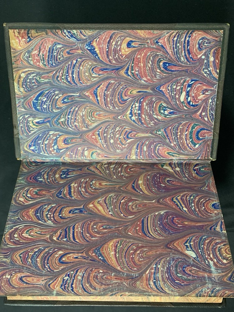Author/Editor: Ellet, Mrs. E.F. 2. Title: The New Cyclopedia of Domestic Economy 3. Place: Norwich, Conn. 4. Date: 1873 5. Publisher: Henry Bill Publishing Co. 6. Binding: Finely bound in ¾ leather with gilt stamped decorated compartments and title, gilt applied to spine and corner edges 7. IIlustrated: “with over 200 engravings” plus 2 color plates. 8. Pages: 603 (including Index) plus 9 pages of publisher’s ads including one for this book and an engraving of the publisher’s establishment. 9. Endpapers: Beautifully marbled endpapers and edges. 10. Dust Jacket: N/A 11. Condition: corners are bumped and worn, slight spots of wear on exterior hinges, bump at lower left interior (also shows a small bit on exterior) front cover and at upper left interior of rear cover. Lower left corner of rear endpaper is lightly rubbed. Color plate frontispiece has some small foreign substance appearing on the servant and father. The binding is solid and appears the book perhaps was never read. Very clean with no marks of any kind. Please see photos for more details. Purchases within four days are eligible for combined shipping.