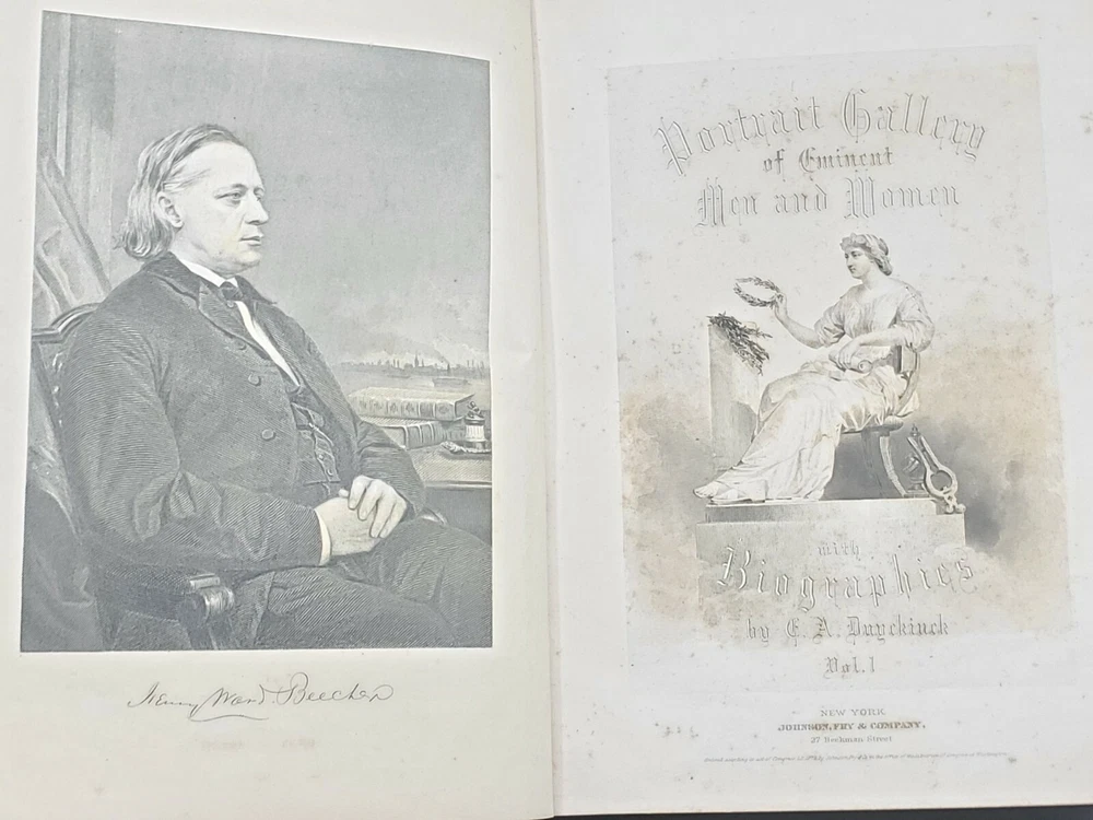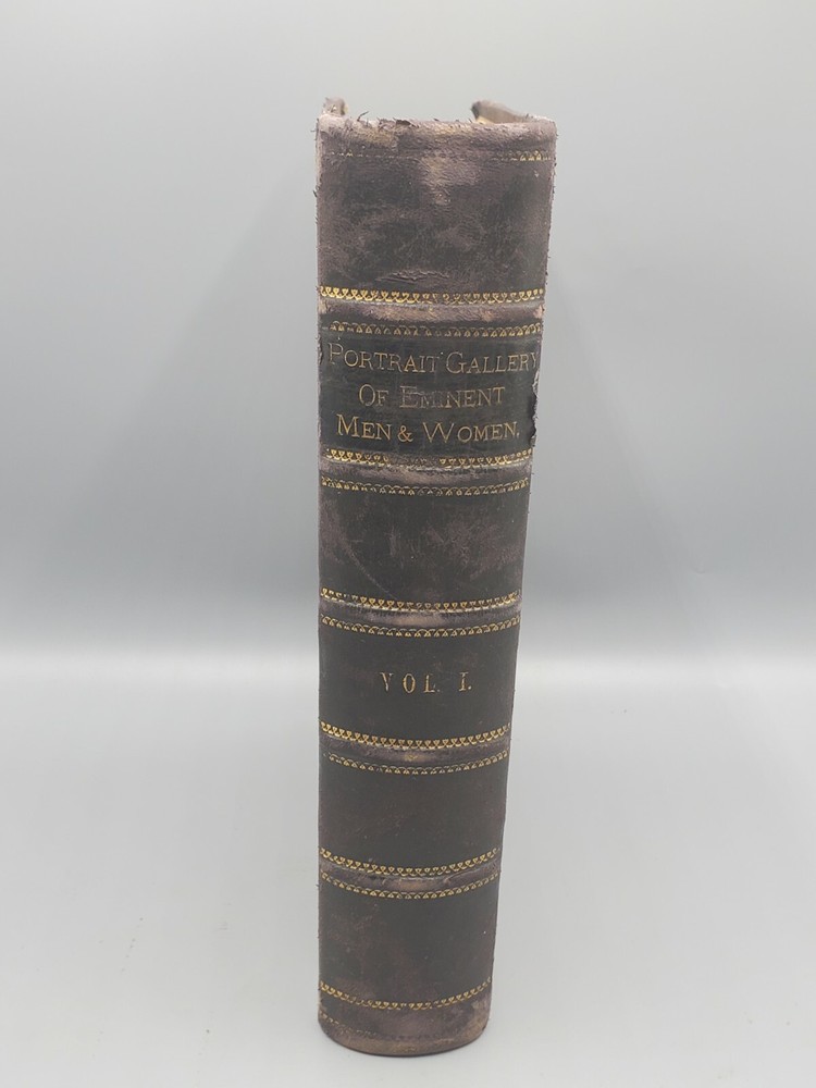 We’re offering Portrait Gallery of Eminent Men and Women of Europe and America, Volume 1 by Evert A. Duyckinck . Published 1873 by Johnson, Wilson and Company, New York, rebound by Enoch Paine Binder, Springfield, Illinois, this large edition features three-quarter bound leather on cloth boards with decorative gilt stamped design and lettering on the front cover and spine, raised bands on the spine, decorative endpapers, a frontispiece, illustrated title page and contains “HISTORY, STATESMANSHIP, NAVAL AND MILITARY LIFE, PHILOSOPHY THE DRAMA, SCIENCE, LITERATURE AND ART WITH BIOGRAPHIES, ILLUSTRATED WITH HIGHLY FINISHED STEEL ENGRAVINGS, FROM THE ORIGINAL PORTRAITS BY THE MOST CELEBRATED ARTISTS.” The book measures apx. 9 ¼ x 11 ½” (WxL) and contains 640pp. Good condition (see photos and full description). Bright illustrations and clear text; binding tight; no loose or torn pages; toning, scattered foxing, and stains due to age; rubbing; edge and spine wear with some peeling at upper edge of spine; covers soiled, scuffed, and faded with some peeling; corners bumped; school stamp on front flyleaf. (See photos) Beautifully illustrated book of biographies. Combined shipping for multiple purchases. Please review the photos and description. Email us with any questions you have BEFORE you purchase. We offer a 30-day money-back GUARANTEE. Please email us with questions BEFORE you return any item. Be sure to visit Bees Book Collective Ebay Store for more great items!
