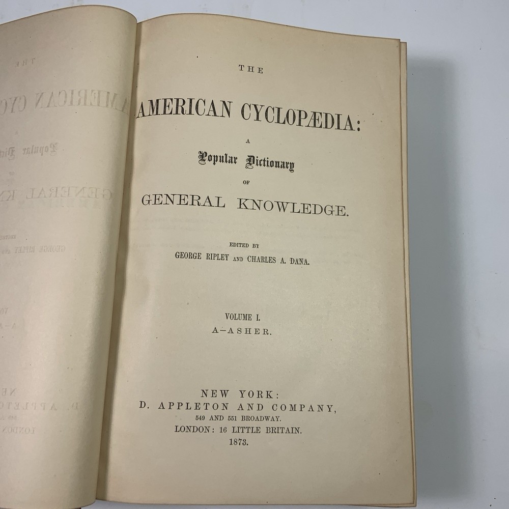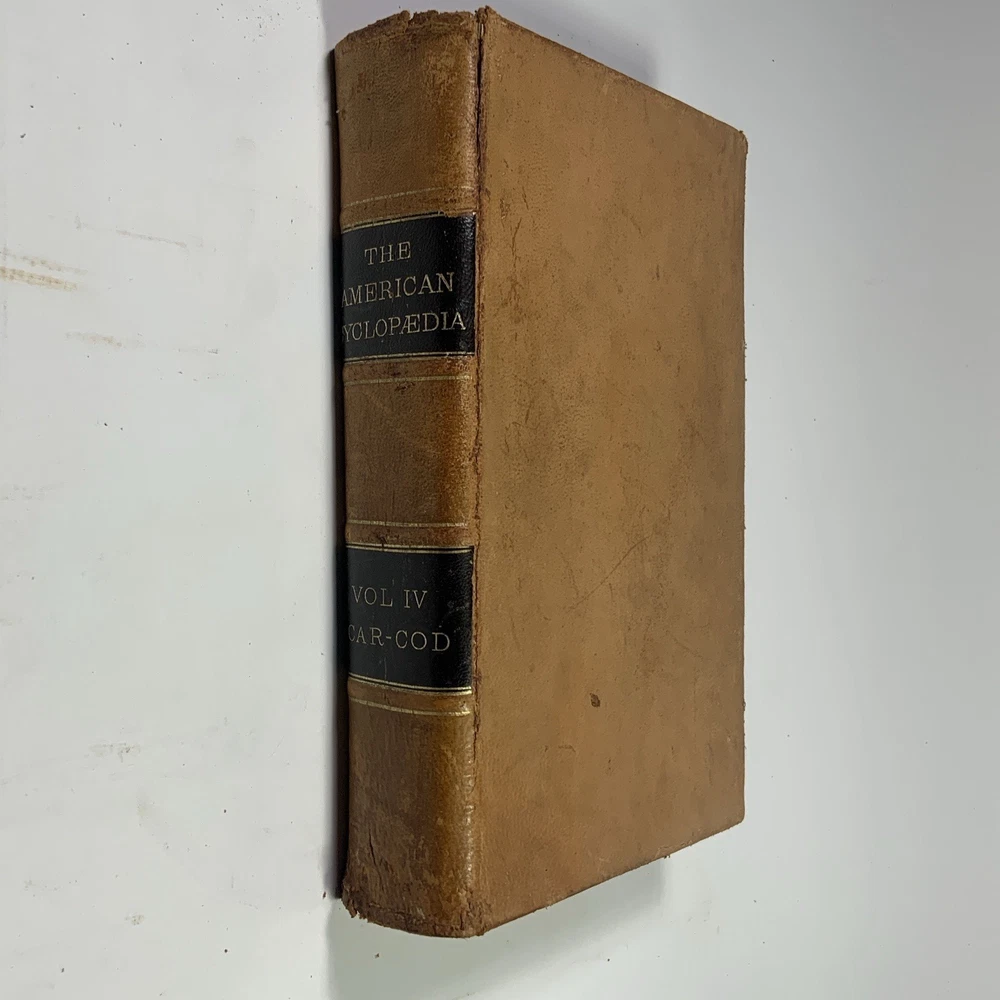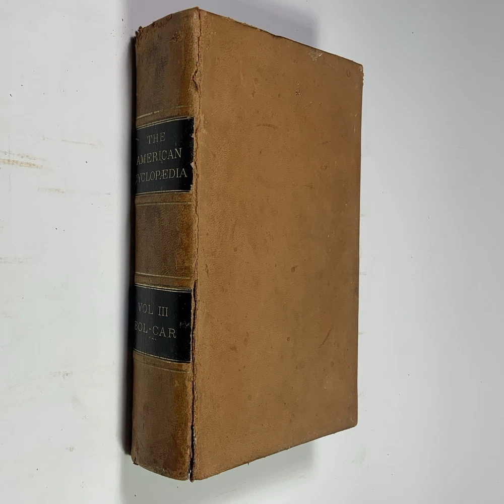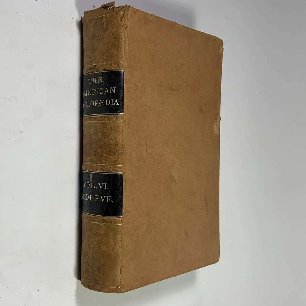 This is a partial set of The American Cyclopaedia , volumes I through VII, published by D. Appleton & Co. The set includes: Volume I (1873) Volume II (1873) Volume III (1873) Volume IV (1879) Volume V (1879) Volume VI (1874) Volume VII (1874) These are the first seven volumes in sequence, though from varying years of publication. All are original 19th-century editions, leather-bound with marbled page edges. Condition: The leather covers show typical wear for their age, including corner and edge damage, surface peeling, and some splitting along the spine joints. All covers remain securely attached. Page edges also show discoloration and wear from age and handling. Inside, the pages are aged but in good, readable condition. Most are unmarked, though some volumes may contain prior owner notations such as pricing, acquisition dates, names, or dates completed. A solid partial set for collectors, historical research, or period decor. Feel free to reach out with questions or additional photos. Free shipping within the continental U.S. only. The American Cyclopaedia, D. Appleton, antique encyclopedia, Victorian reference books, leather-bound books, partial set 1800s, collectible history, vintage nonfiction, historical library decor