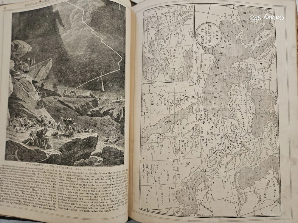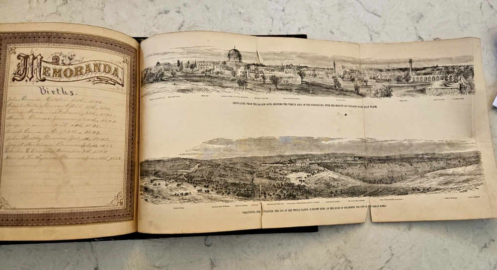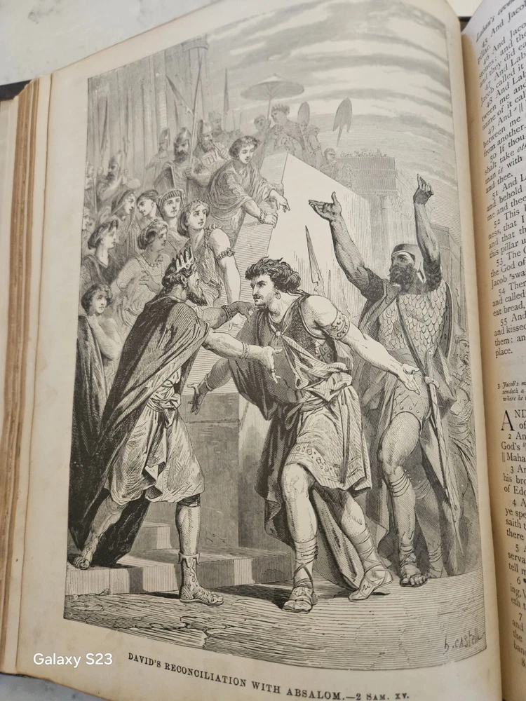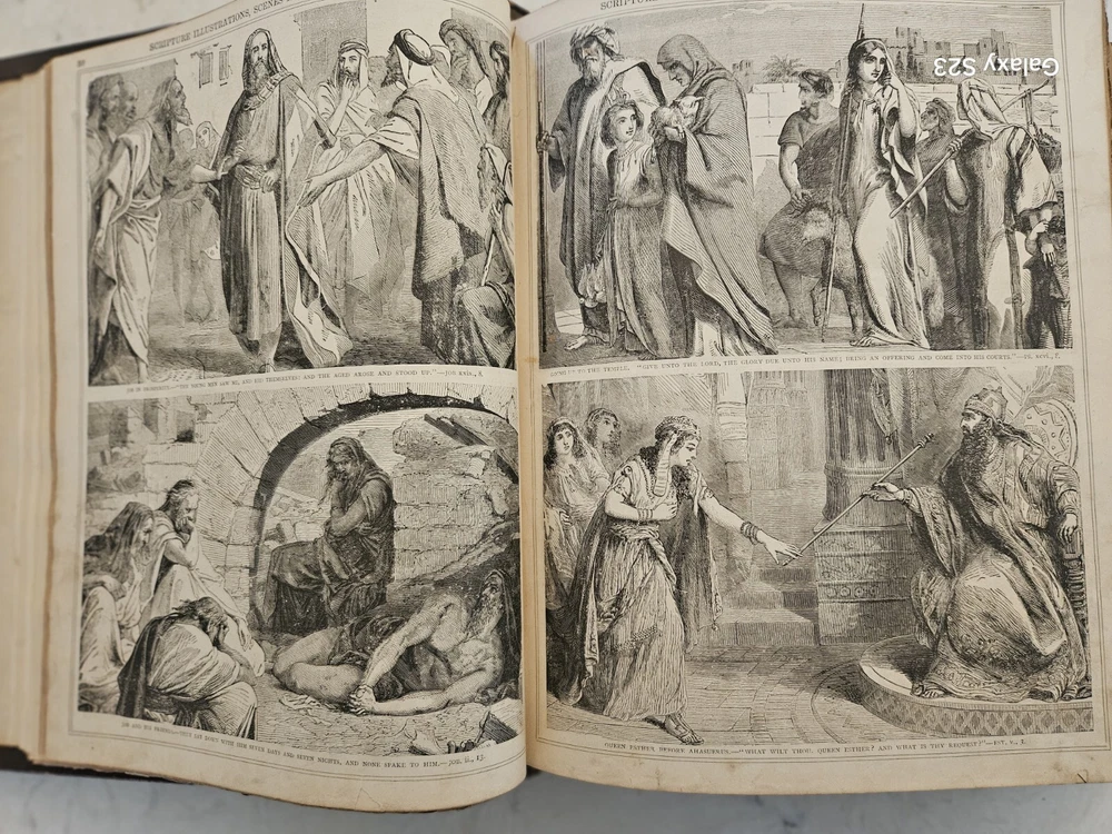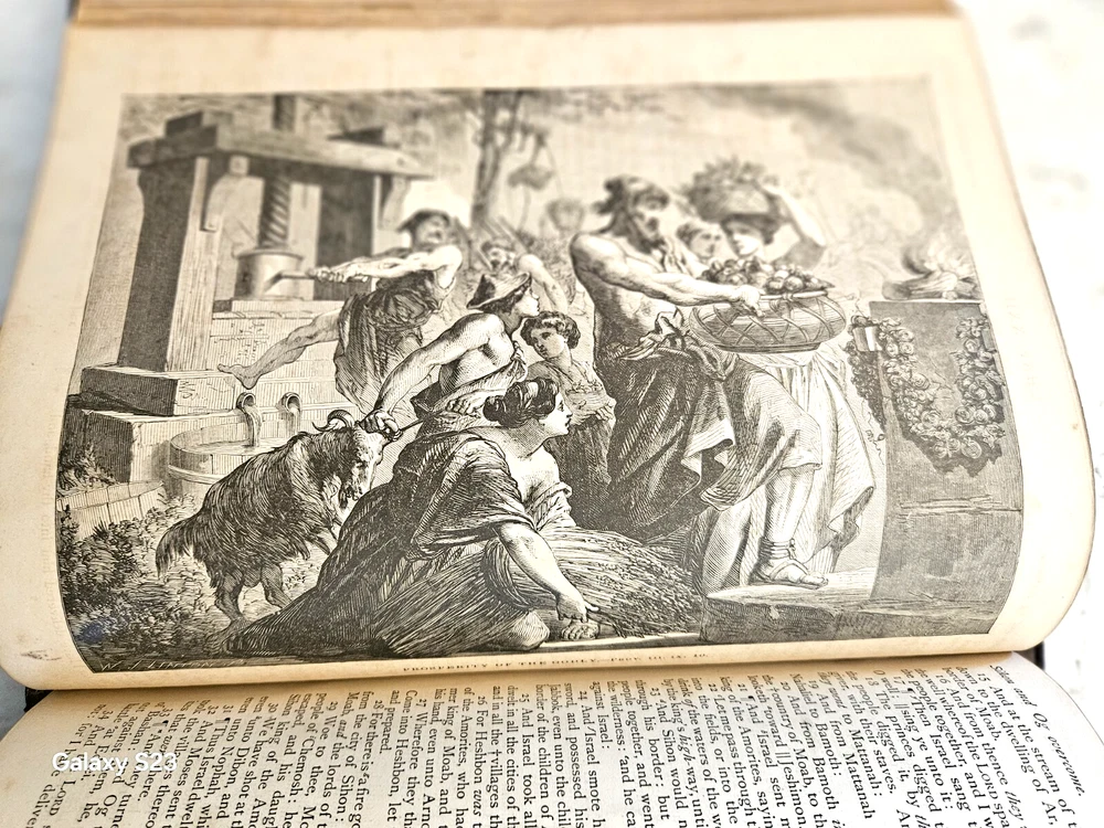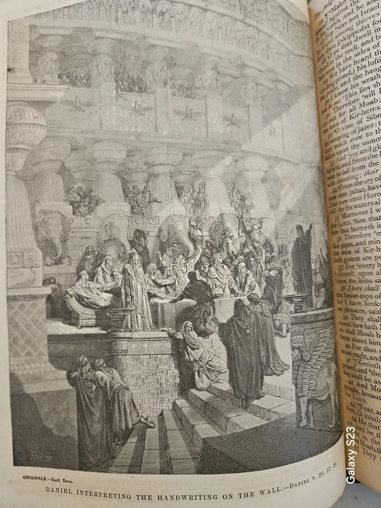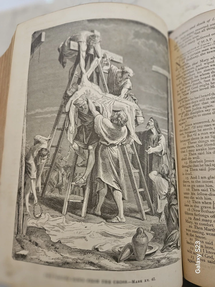 1874 Philadelphia publication 13x10.5x4.25 embossed leather 1300 Gustave Dore and other great artists full page engraves-etchings. Not many colored pictures being a bit older than 1980 publications... Binding is very firm, covers good, spine in great condition. few pages on the front side has been taped and attached. please ask for more pictures if need to get a full idea of the condition... its 160 year old bible!