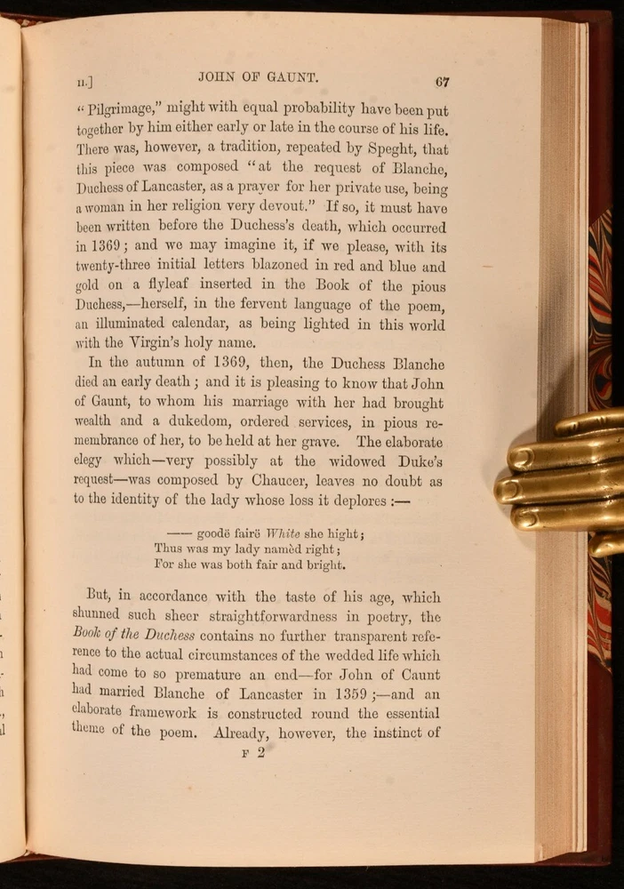 A stunning first edition of Ward’s biography on Chaucer—beautifully rebound in leather with vibrant color plates. The condition is excellent, and despite its age, it feels solid and well-preserved. A must-have for collectors of classic literature. Shipping is reasonable, especially within the UK. Highly recommended for anyone who appreciates rare books!