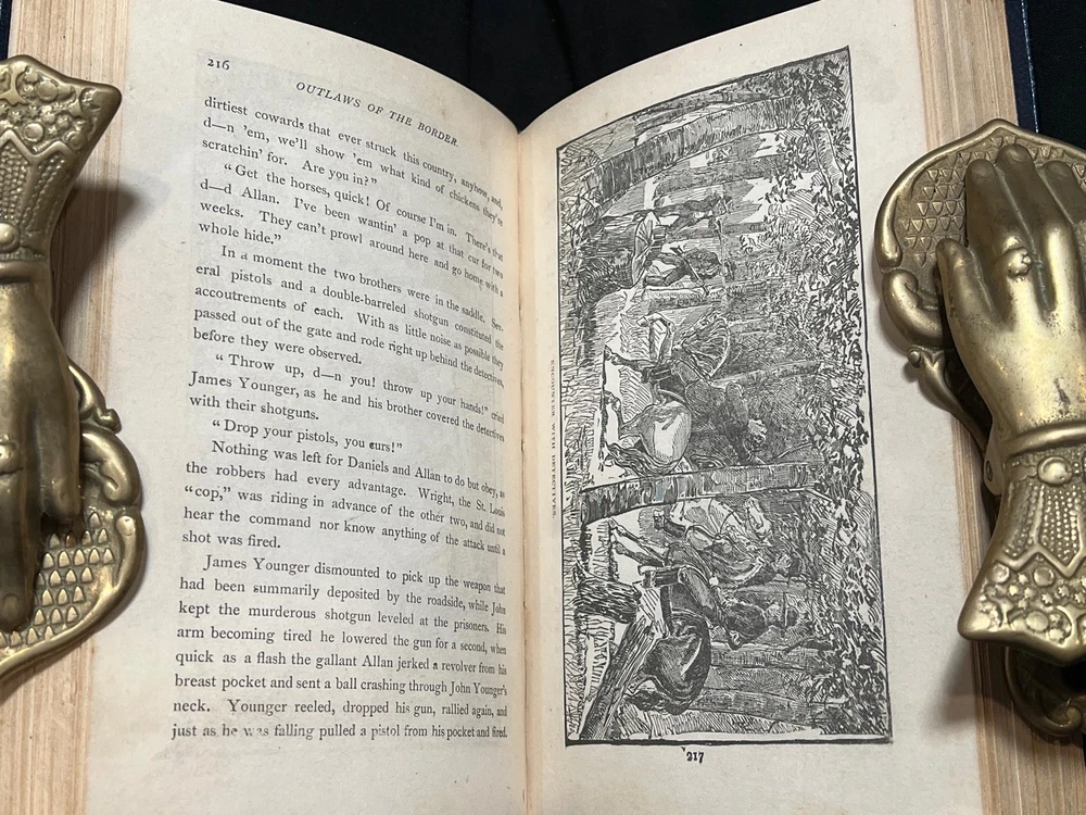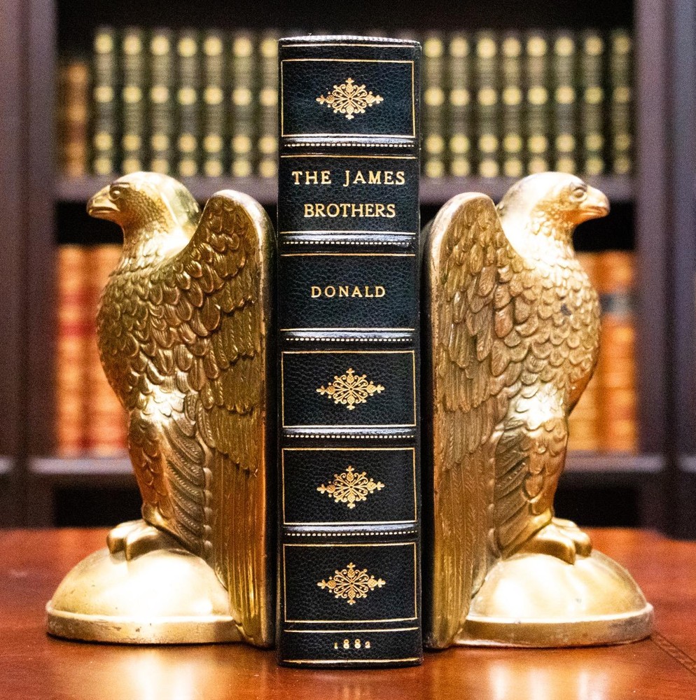 BOOK IS IN NEAR FINE CONDITION BEAUTIFULLY BOUND BY BAYNTUN IN 3/4 CRUSHED MOROCCO WITH BRIGHT GILT RULE TO BOARDS, SIX COMPARTMENTS AND FIVE RAISED BANDS TO SPINE WITH BRIGHT GILT DETAILS AND TITLE. SOME LIGHT SOILING TO BOARDS. BINDING AND HINGES ARE VERY GOOD, MARBLED END PAPERS, PASTE DOWNS AND BRIGHT GILT TOP END PAGES. NO LOOSE OR MISSING PAGES, PAGES ARE BRIGHT AND CLEAN, WITHOUT MARKS AND MINIMAL FOXING. PROFUSELY ILLUSTRATED, 520 PAGES, BOOK MEASURES 7.5"x5.5". FIRST EDITION, 141 YEARS OLD. A STUNNING EXAMPLE IN SCARCE BAYNTUN BINDING. 1882 1stED Outlaws of the Border Frank & Jesse James Bound by Bayntun Fine Rare 1882 1stED Outlaws of the Border Frank & Jesse James Bound by Bayntun Fine Rare Description BOOK IS IN NEAR FINE CONDITION BEAUTIFULLY BOUND BY BAYNTUN IN 3/4 CRUSHED MOROCCO WITH BRIGHT GILT RULE TO BOARDS, SIX COMPARTMENTS AND FIVE RAISED BANDS TO SPINE WITH BRIGHT GILT DETAILS AND TITLE. SOME LIGHT SOILING TO BOARDS. BINDING AND HINGES ARE VERY GOOD, MARBLED END PAPERS, PASTE DOWNS AND BRIGHT GILT TOP END PAGES. NO LOOSE OR MISSING PAGES, PAGES ARE BRIGHT AND CLEAN, WITHOUT MARKS AND MINIMAL FOXING. PROFUSELY ILLUSTRATED, 520 PAGES, BOOK MEASURES 7.5"x5.5". FIRST EDITION, 141 YEARS OLD. A STUNNING EXAMPLE IN SCARCE BAYNTUN BINDING. !!!CLICK HERE!!! Visit My eBay Store TO SEE ALL THE BOOKS WE HAVE FOR SALE!!! IF YOU LIKE WHAT YOU SEE THAN SAVE US TO YOUR FAVORITES BY CLICKING HERE. Add me to your Favorite Sellers RARE ANTIQUARIAN BOOKS CAN BE FRAGILE AND NEED TO BE HANDLED WITH CARE. About us: Reagan's Rare Books is a purveyor of Antiquarian books primarily from the 18th and 19th centuries. We love antique books! We search all over the country for the finest rare books, looking for those with beautiful bindings and in great condition so that we can offer you, the customer, a truly rare one of a kind collectible. Paypal Preferred. Please make payment arrangements within 48 hours of winning your auction. We reserve the right to re-list items not paid within 5 days. Shipping *To Insure That Your Package arrives without any Problems , Please Double Check to Make Sure That The Address You Have Selected in eBay Is Correct. All books are carefully bubble wrapped and packed in a box with adequate packing peanuts to prevent any damage during shipment. All books are shipped with delivery confirmation and tracking. Books over $75.00 are automatically insured. RETURNS 100% Satisfaction Guaranteed. Returns accepted for any reason within 30 days of receipt. PLEASE CHECK MY OTHER LISTINGS. POSTING NEW RARE BOOKS DAILY/WEEKLY. Pictures sell! Auctiva offers Free Image Hosting and Editing. 300+ Listing Templates! Auctiva gets you noticed! The complete eBay Selling Solution. Track Page Views With Auctiva's Counter