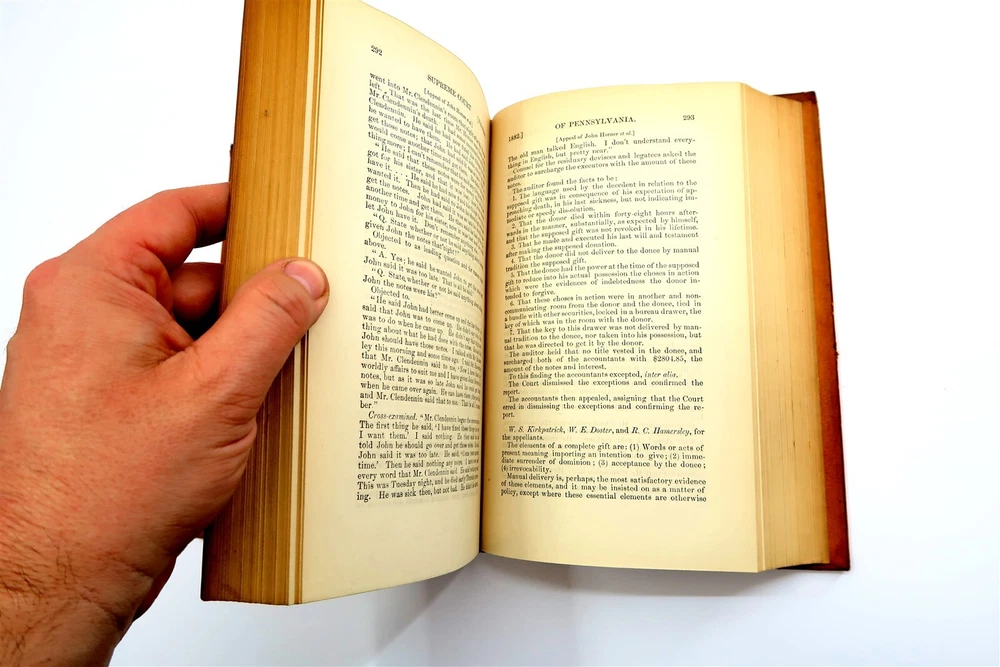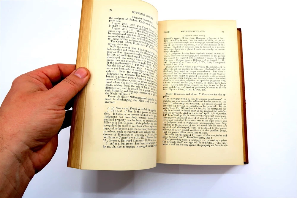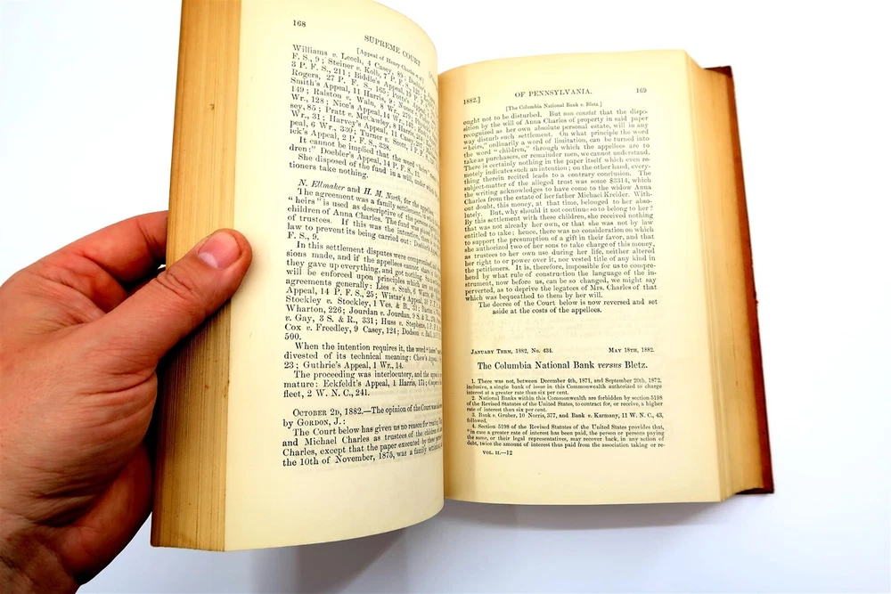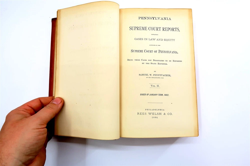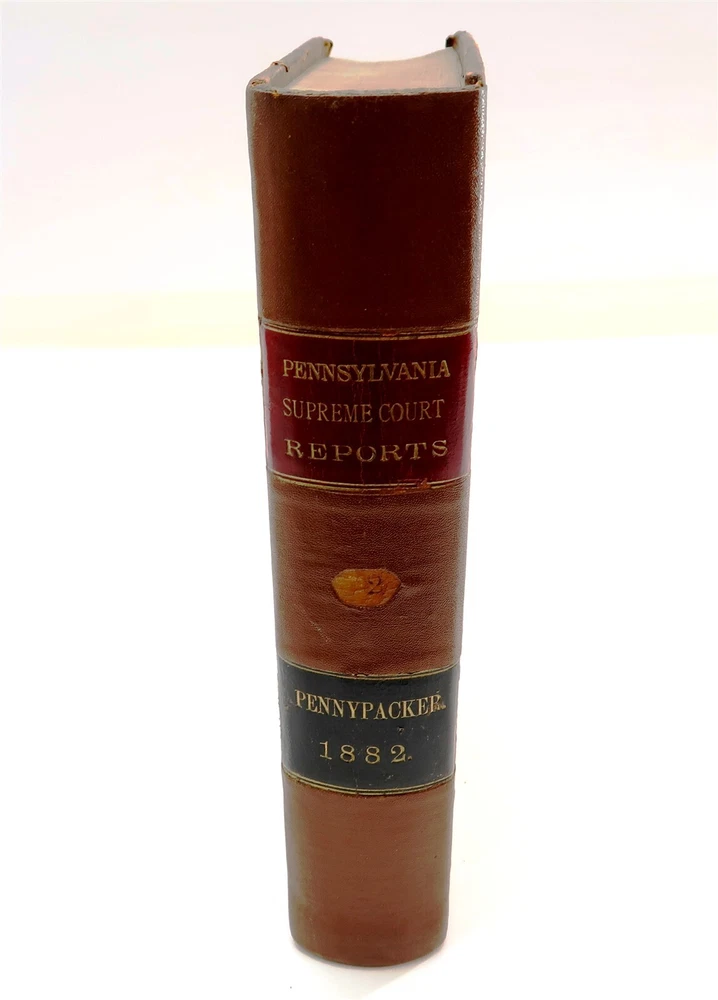 1882 PENNSYLVANIA SUPREME COURT REPORTS Leather Hardback Book Pennypacker Vol 2 This eBay listing is for a wonderful antique leather bound hardback book title: Pennsylvania Supreme Court Reports by Samuel Pennypacker. The book looks to be in very good condition for it's age! The outside of the book looks like someone applied some sort of special tape on the binding (unless this is how it came when new). The overall size of the book is 9.25" tall. Inside front page has an old signature from a previous owner and stamp. No other writing or marks found inside the book. There are also no foul odors as well. If you collect antique legal books, then be sure to check out my other listings. I just picked up about 30 antique books and will have all the others listed in my ebay store at this time. Seller Location Reference - Smalls / Long Box 7 BID IN CONFIDENCE – CHECK MY FEEDBACK! My goal is your satisfaction. I leave positive feedback right after the payment is received for all orders!! If you plan to leave anything less than positive feedback and 5 stars - please let me know so that I can work out any problems that you may have. I aim to please!! SHIPPING & HANDLING FOR US BIDDERS We ship ASAP upon payment as noted above within 1 business day 99% of the time!! We normally pack up your new treasures 2 - 3 times a day and ship using USPS and Fedex Ground so that you get your items in a timely fashion. As always - there is no charge for local pickup on any of my items!! SHIPPING AND HANDLING FOR INTERNATIONAL BIDDERS Import duties, taxes and charges are not included in the item price or shipping charges. These charges are the buyer’s responsibility. Please check with your country’s customs office to determine what these additional costs will be prior to bidding/buying.” THANK YOU AND HAVE A WONDERFUL DAY!! Powered by SixBit's eCommerce Solution
