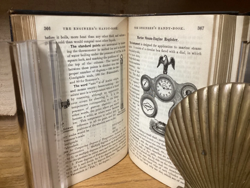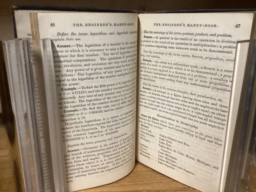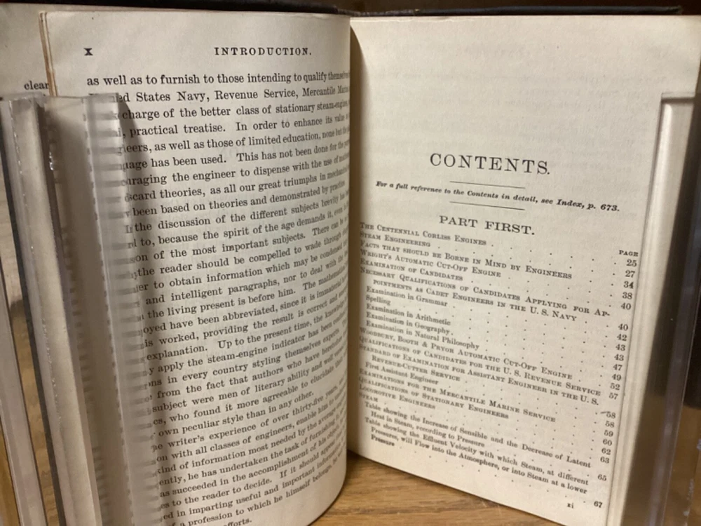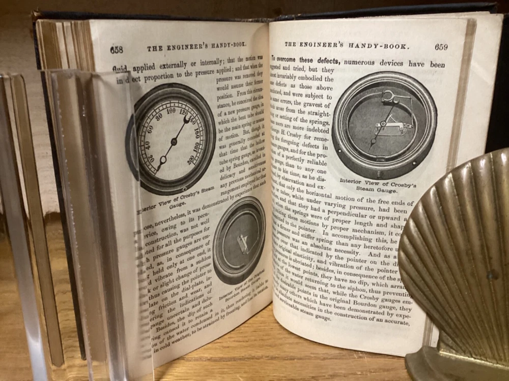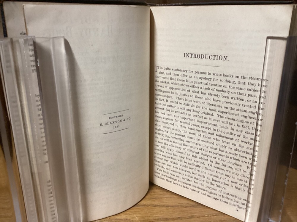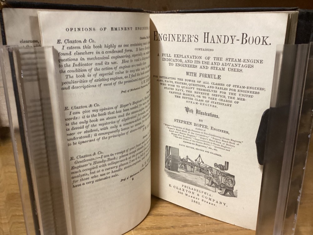 Engineer’s Handy-Book. Containing a Full Explanation of the Steam-Engine INdicator, and its Use and Advantages to Engineers and Steam Users. By Stephen Roper and printed in Philadelphia by E. Clayton and Company. 1883, 690 pp, 7” x 5.5”, decorative full leather cover. In good condition, with superficial rubbing and wear to exteriors, primarily along edges and corners. Clasp remains intact and book closes easily. Bookplate and markings at front of text block. Nicely illustrated with an assortment of black-and-white sketches throughout. General age-related toning to pages, along with periodic foxing and wear. Please see photographs and ask any questions prior to purchasing. A scarce and beautifully preserved Victorian-era reference manual for engineers, complimented with a variety of nice engravings throughout. COLN1883ABCD-0624-aj1798