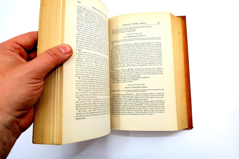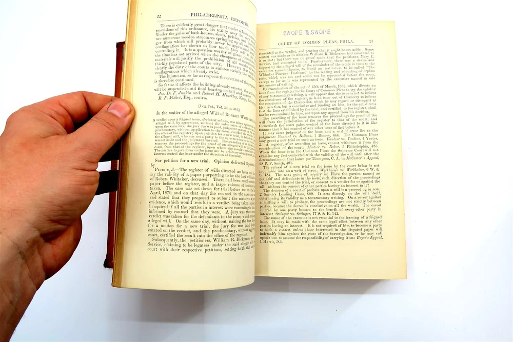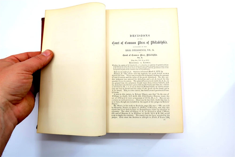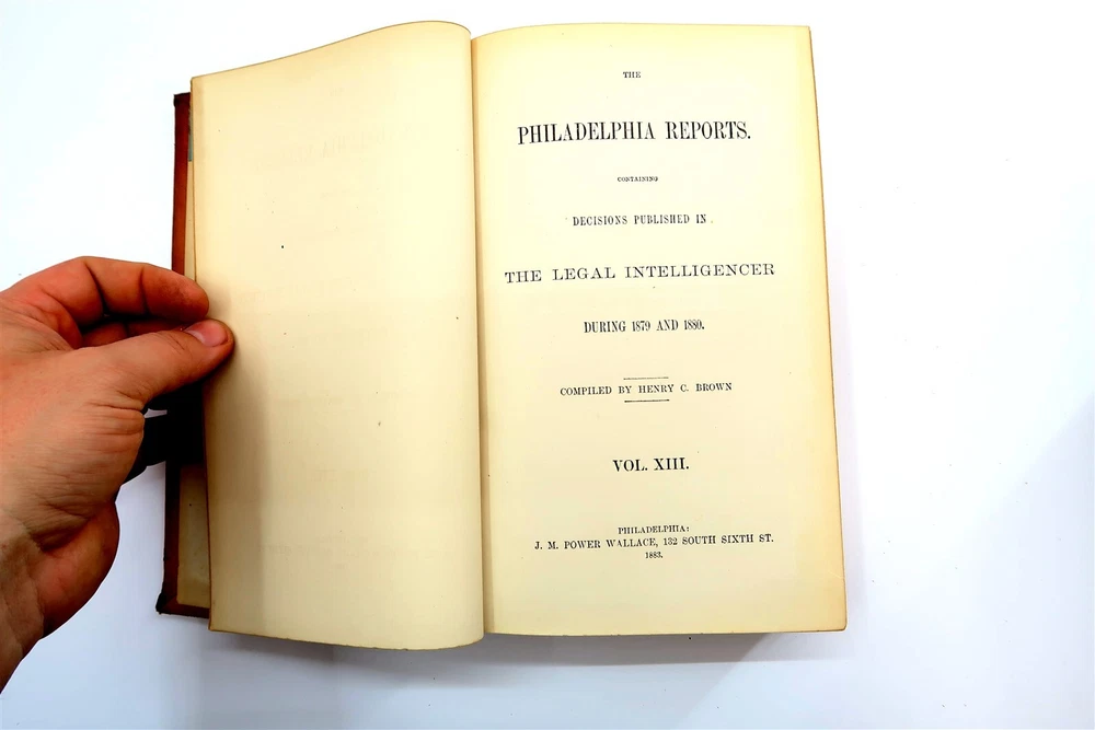 1883 PHILADELPHIA REPORTS Leather Bound Hardback Book Henry Brown Vol 13 This eBay listing is for a wonderful antique leather bound hardback book title: The Philadelphia Reports by Henry Brown. The book looks to be in very good condition for it's age! The outside of the book looks like someone applied some sort of special tape on the binding. The overall size of the book is 9.25" tall. Inside front page has an old sticker and stamp from a previous owner. No other writing or marks found inside the book. There are also no foul odors as well. If you collect antique legal books, then be sure to check out my other listings. I just picked up about 30 antique books and will have all the others listed in my ebay store at this time. Seller Location Reference - Smalls / Long Box 7 BID IN CONFIDENCE – CHECK MY FEEDBACK! My goal is your satisfaction. I leave positive feedback right after the payment is received for all orders!! If you plan to leave anything less than positive feedback and 5 stars - please let me know so that I can work out any problems that you may have. I aim to please!! SHIPPING & HANDLING FOR US BIDDERS We ship ASAP upon payment as noted above within 1 business day 99% of the time!! We normally pack up your new treasures 2 - 3 times a day and ship using USPS and Fedex Ground so that you get your items in a timely fashion. As always - there is no charge for local pickup on any of my items!! SHIPPING AND HANDLING FOR INTERNATIONAL BIDDERS Import duties, taxes and charges are not included in the item price or shipping charges. These charges are the buyer’s responsibility. Please check with your country’s customs office to determine what these additional costs will be prior to bidding/buying.” THANK YOU AND HAVE A WONDERFUL DAY!! Powered by SixBit's eCommerce Solution