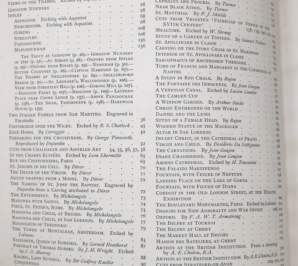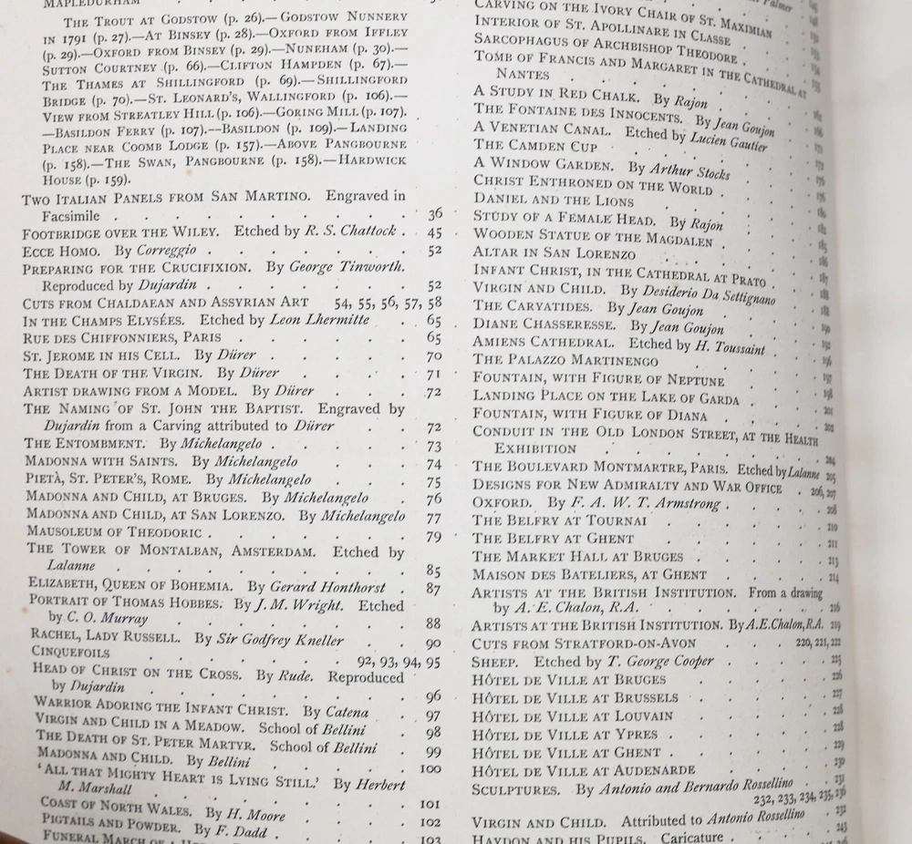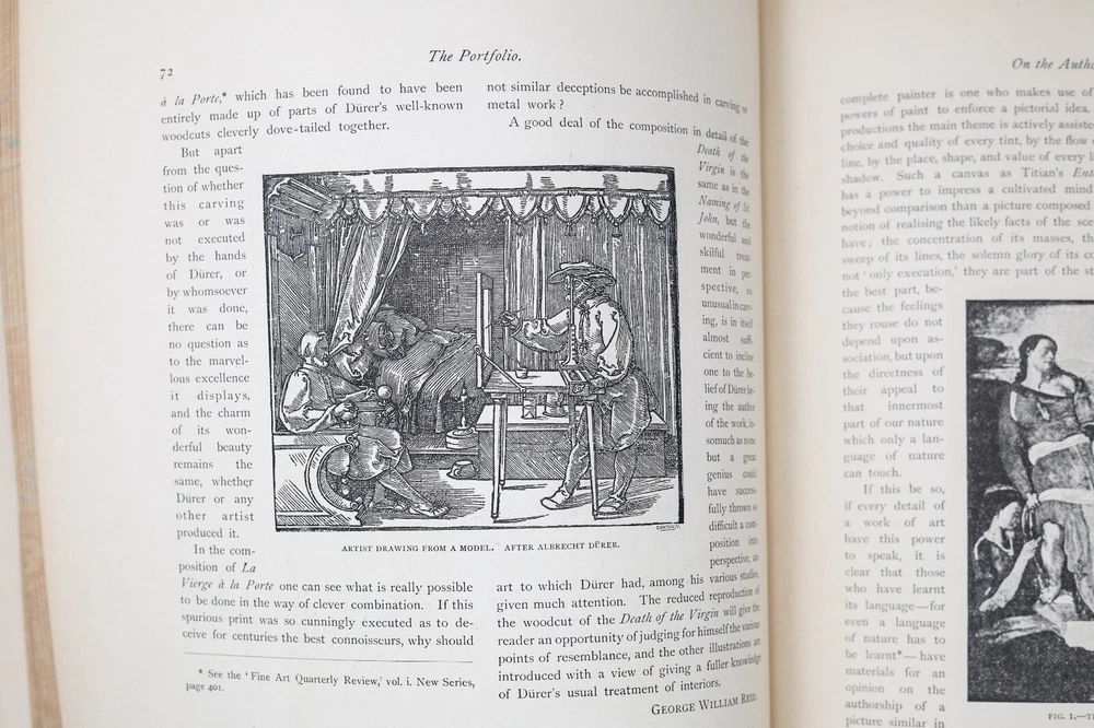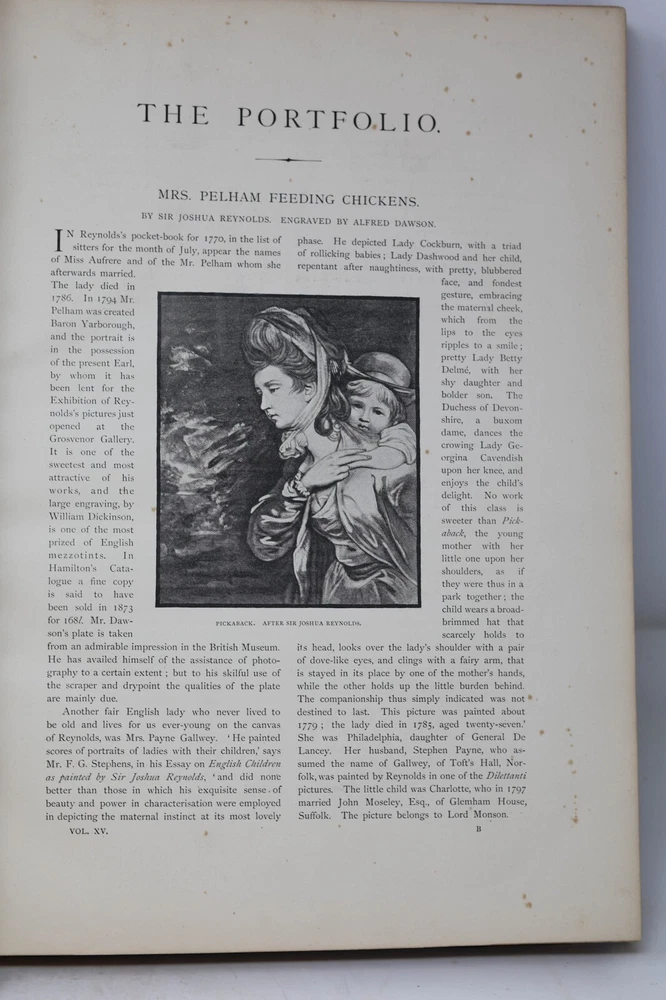 “The Portfolio - An Artistic Periodical" edited by Philip Gilbert Hamerton. Published in 1884 by Seeley & Co., The Strand, London, England . Printed by Strangeways & Sons, Tower Street, St. Martin’s Lane. 248 pages. Marbled end papers and text block edges. Spine has incised gilt decoration between raised bands. Black cover material with leather spine surround and corners. Large oversized, illustrated book from the late nineteenth century giving critical reviews of artists and their work. Illustrated with many full page plates. Over 100 illustrations many of which are full-page plates. Articles in this volume includes: "Hogarth and the Pirates" by F.G. Stephens, "The Birds of Aristophanes at Cambridge" by Henry Norman, "The Artist in Venice" by Julia Cartwright, "The Rossellini" by Cosmo Monkhouse amongst many others. The whole is illustrated by engravings including many full page plates including "Mrs Pelham Feeding Chickens" by Joshua Reynolds. Hamerton (1834-1894) was himself a painter but most well known as an art critic with his work appearing in a range of nineteenth century periodicals including the Fine Arts Quarterly Review, The Cornhill Magazine and Macmillan's Magazine. From 1869 until his death, Hamerton edited and co-owned The Portfolio magazine which is regarded as one of the major British art periodicals of the 1800's. This book is from the collection of a prolific collector of scientific, engineering, and drafting reference books, usually containing prolific drawings and schematics. Additionally, he collected antique engravings, prints, and rare books. The gentleman was one of the first e xecutive engineers at Texas Instruments, and collected numerous examples of fine draftsmanship. I will be listing many scientific books from his collection in the coming days. Please see my other items -- combined shipping always applies. Book will be mailed by USPS media mail unless prior arrangement made with seller. Note that if other services are used, EBAY shipping estimate will not be correct, and buyer should wait for invoice. Note that media mail postage is most economic, but can also be somewhat delayed compared to regular mail. Please consider the trade-off between cost and delivery speed in your shipping choice. Dimensions: 14.25” tall x 10.5” wide x 1” deep. Unpacked weight: 4 lbs. 12 oz. Condition: Fine condition, commiserate with age. Mentionable issues: a) prior owners name on fly leaf, b) rubbing on corners, spine joints, and raised bands, c) scuffs to black exterior covering, commiserate with age and use, and d) very light tanning on edges. Binding and text block are solid and tight. Pages are supple and not brittle. No other visible writing, marks, or highlights. No loose pages, and free from rips and tears. No foxing, water stains, or unusual discolorations. Always happy to pass through discounts on combined shipping. I only charge actual postage, and always use recycled packing materials. Note some photos appear redundant because I take photos from all possible angles. On symmetrical items, these photos may appear redundant when there are no distinguishing differences or condition issues between side views. I gladly accept returns, but please note I do not pay return postage unless there was a significant error in my description. The item listed is being sold as is, as pictured and as described to the best of my knowledge. All dimensions and weights approximate. If you have a question or an assumption on an item prior to purchase, please ask. I much prefer to take the time on the front end to make sure you will be satisfied with your purchase. Remember, when buying vintage expect imperfections as these items have a history and have been in the possession of others. I try to list EVERY flaw which would be commented on something in an antique or vintage condition – this does not mean all imperfections resulting from normal wear & use require comment. My goal is to have no rude surprises upon receipt.