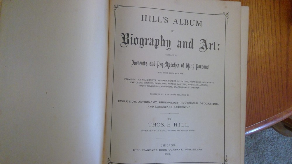 1884 edition Hill s Album of Biography and Art. Excellent condition throughout, cover reinforced decades ago with bookbinding tape.