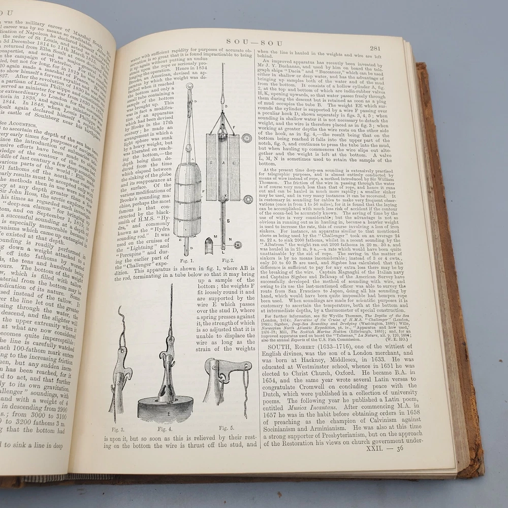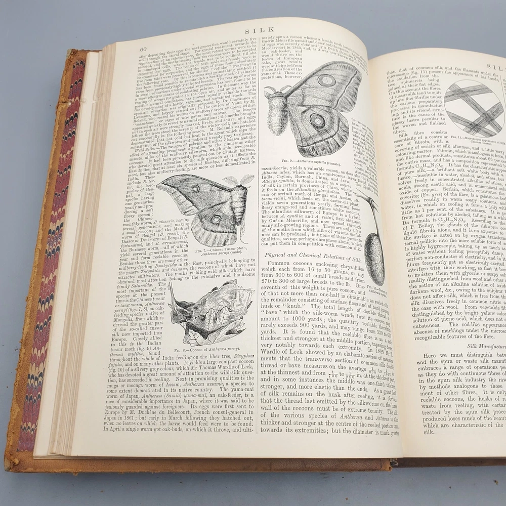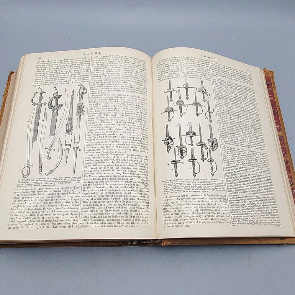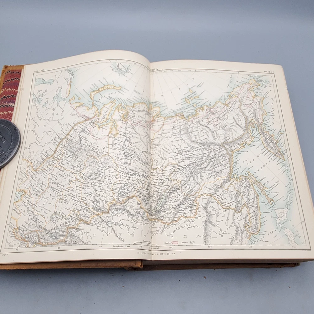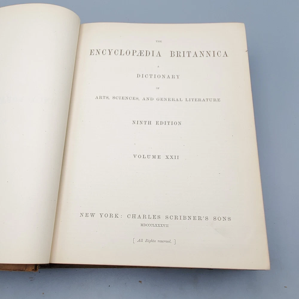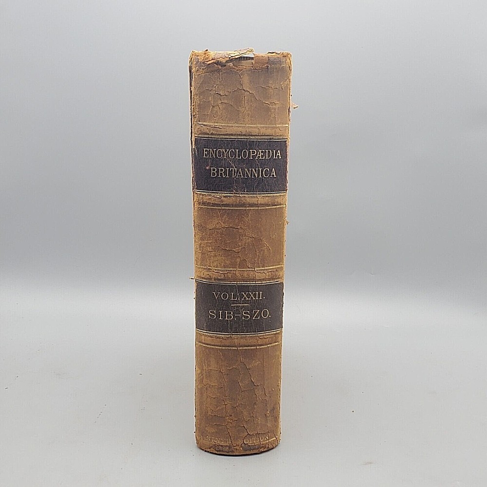 We’re offering Encyclopedia Britannica, Dictionary of Arts, Sciences, and General Literature, Volume XXII (22) SIB-SZO. Published 1887 by Charles Scribner’s Sons, New York, this book features a full leather binding with gilt stamped black and red labels on the spine, all edges marbled, marbled endpapers, colored maps, and numerous black and white illustrations. The book measures apx. 8 ½ x 11” (WxL) and contains 856pp with a Table of Contents at the end of the book. Fair condition (see photos and full description). Bright illustrations and clear text; binding tight; clean interior; no loose or torn pages; toning and scattered foxing due to age; significant edge and spine wear with a piece of the head of the spine torn and peeling; covers soiled, scuffed, and faded with peeling; corners bumped. (See photos) Combined shipping for multiple purchases. Please review the photos and description. Email us with any questions you have BEFORE you purchase. We offer a 30-day money-back GUARANTEE. Please email us with questions BEFORE you return any item. Be sure to visit Bees Book Collective Ebay Store for more great items!
