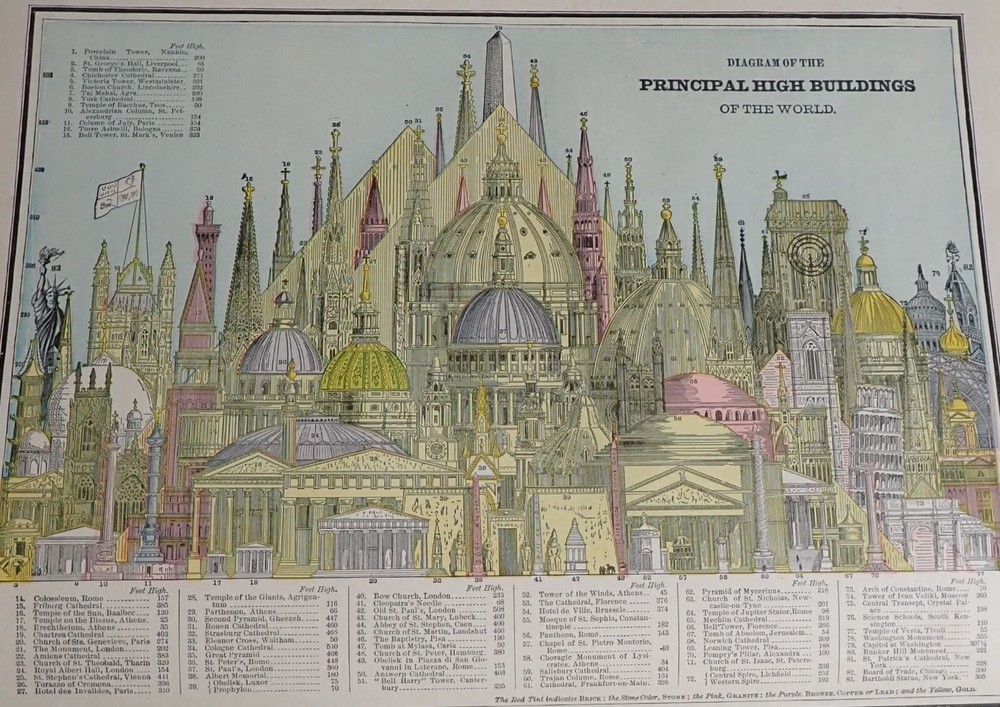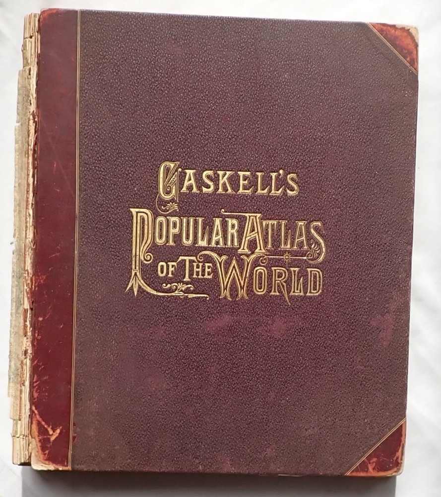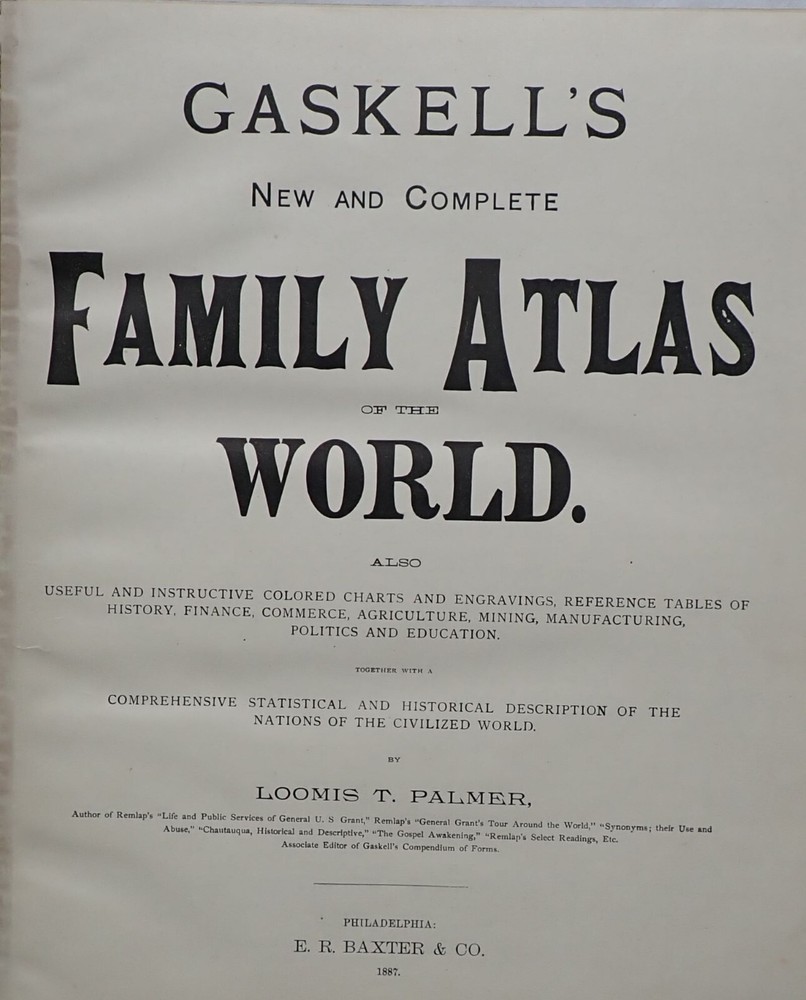 1887 GASKELL'S FAMILY COMPLETE ATLAS OF THE WORLD For sale is a rare 138 years old 19th Century Atlas titled "Gaskell's New and Complete Family Atlas of the World" dated 1887 by Louis T. Palmer. Published in 1887 by E. R. Baxter & Co, Philadelphia, Pennsylvania. Three-quarter leather binding. Measures 14 by 12 by 2 inches. Lots of full-colored maps. Useful and instructive colored charts and engravings ... together with a comprehensive statistical and historical description of the nations of the civilized world. It goes into serious depth for each state, and for many of the older states, there is a companion city map. Some included city maps: New York City, Boston, Philadelphia, Chicago, New Orleans, St. Louis, D.C. There are also some awesome charts and illustrations like the Tallest Building one (pictured) where you can see what the largest structures were in 1886-7, Time Zones, population/demographics, and tons of other info. There are 581 pages. This atlas is honestly unique for the period. Condition: Previous owner’s name on second endpaper. No loose or torn pages. No handwriting on the pages. Front and rear hinges are sound. Binding is tight. Wear to the leather binding with dusting. Missing the spine. Please view all the pictures as they are a part of this description. I ship with two business days of your cleared payment.