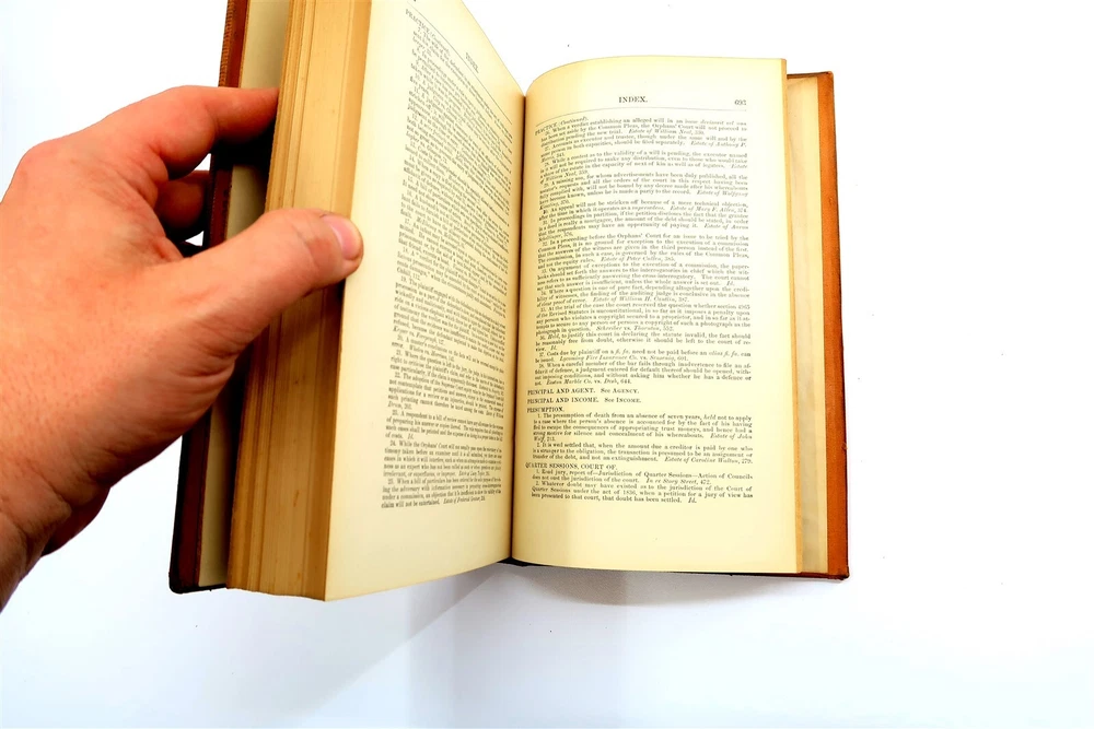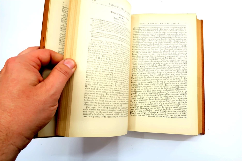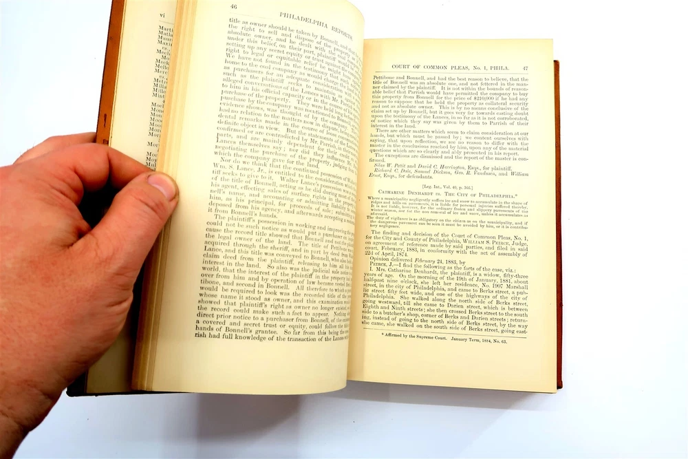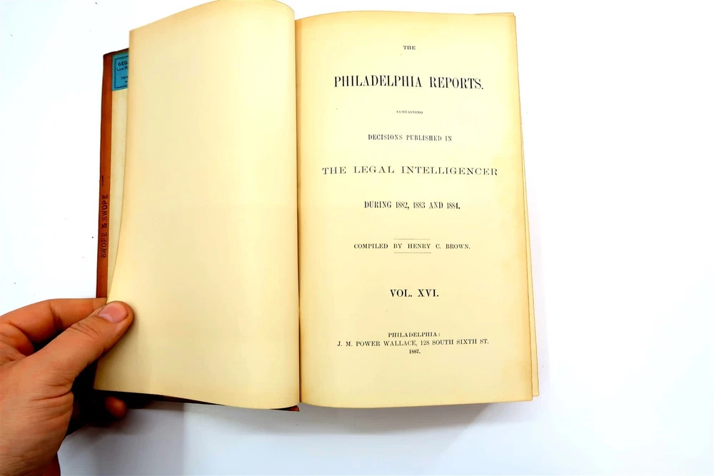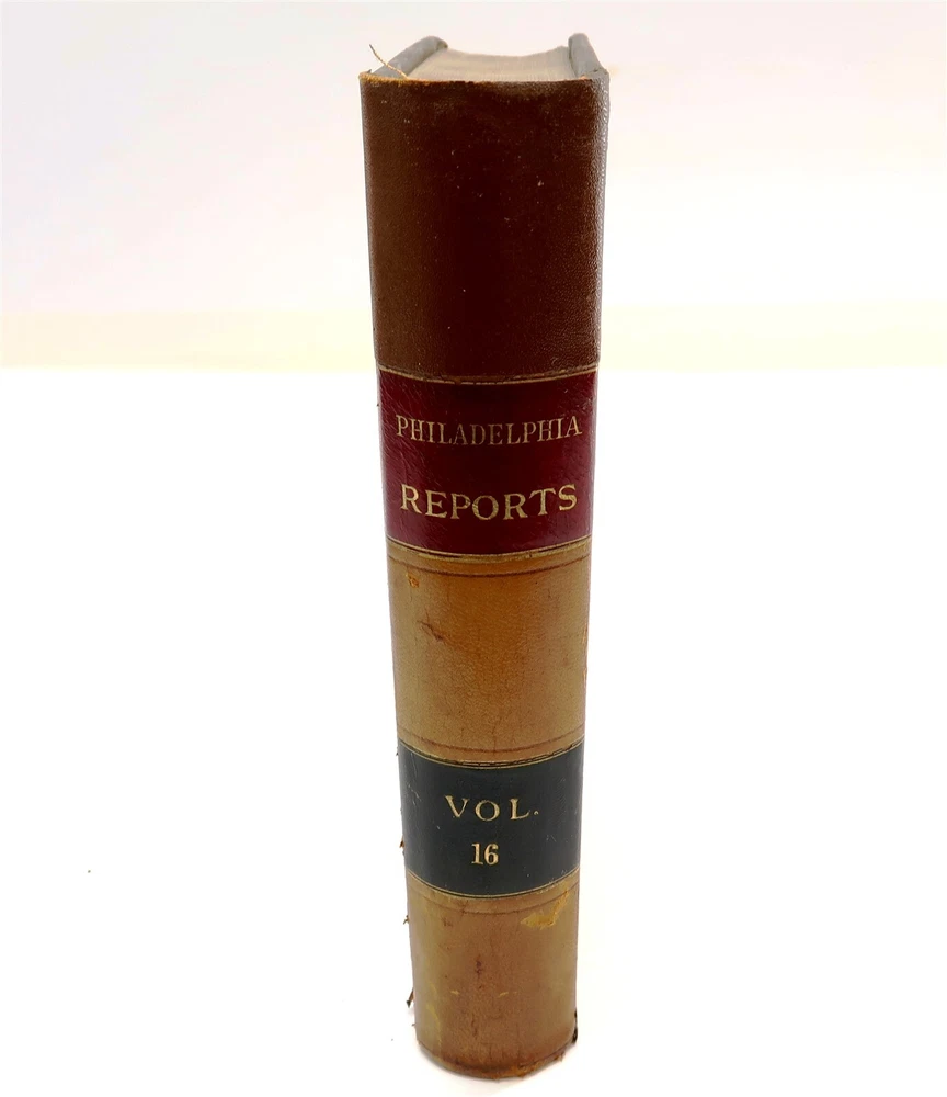1887 PHILADELPHIA REPORTS Leather Bound Hardback Book Henry Brown Vol 16 This eBay listing is for a wonderful antique leather bound hardback book title: The Philadelphia Reports by Henry Brown. The book looks to be in good condition for it's age! PLEASE NOTE - while I was taking the pictures - the first few came loose from the binding. The outside of the book looks like someone applied some sort of special tape on the binding. The overall size of the book is 9.25" tall. Inside front page has an old sticker and stamp from a previous owner. No other writing or marks found inside the book. There are also no foul odors as well. If you collect antique legal books, then be sure to check out my other listings. I just picked up about 30 antique books and will have all the others listed in my ebay store at this time. Seller Location Reference - Smalls / Long Box 7 BID IN CONFIDENCE – CHECK MY FEEDBACK! My goal is your satisfaction. I leave positive feedback right after the payment is received for all orders!! If you plan to leave anything less than positive feedback and 5 stars - please let me know so that I can work out any problems that you may have. I aim to please!! SHIPPING & HANDLING FOR US BIDDERS We ship ASAP upon payment as noted above within 1 business day 99% of the time!! We normally pack up your new treasures 2 - 3 times a day and ship using USPS and Fedex Ground so that you get your items in a timely fashion. As always - there is no charge for local pickup on any of my items!! SHIPPING AND HANDLING FOR INTERNATIONAL BIDDERS Import duties, taxes and charges are not included in the item price or shipping charges. These charges are the buyer’s responsibility. Please check with your country’s customs office to determine what these additional costs will be prior to bidding/buying.” THANK YOU AND HAVE A WONDERFUL DAY!! Powered by SixBit's eCommerce Solution