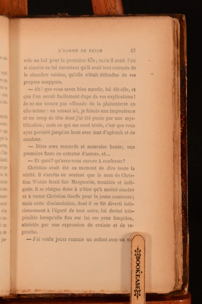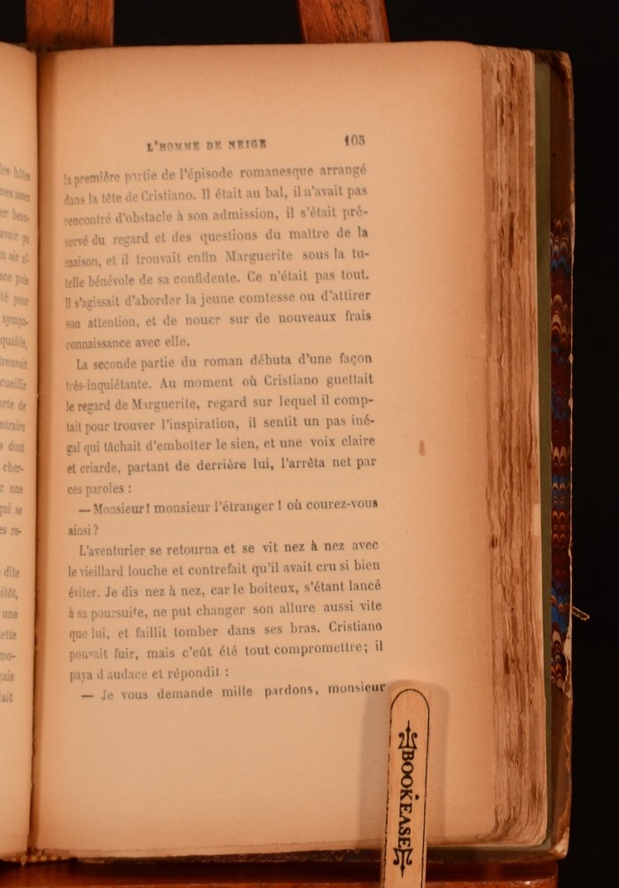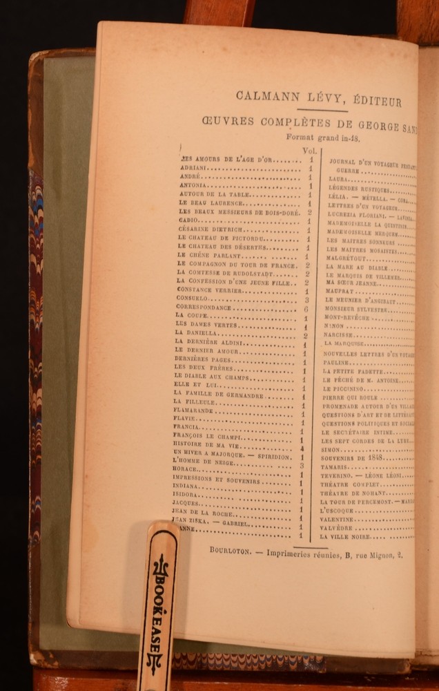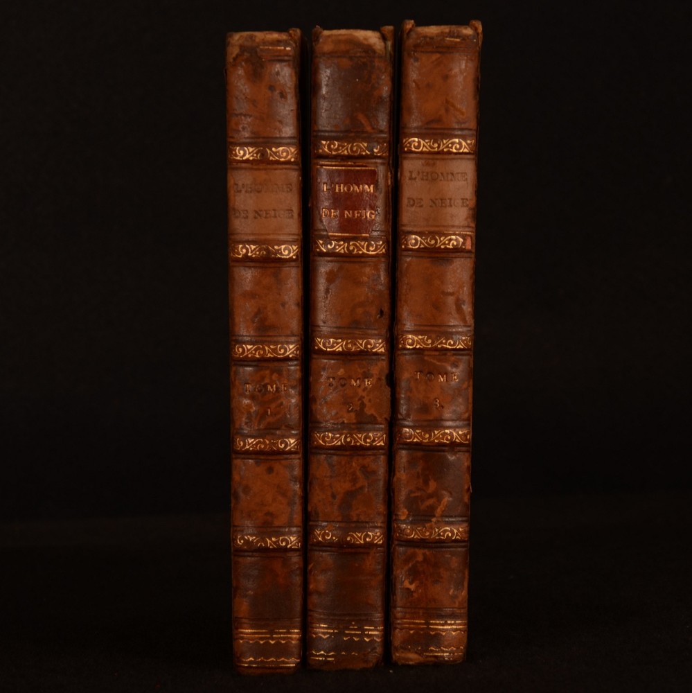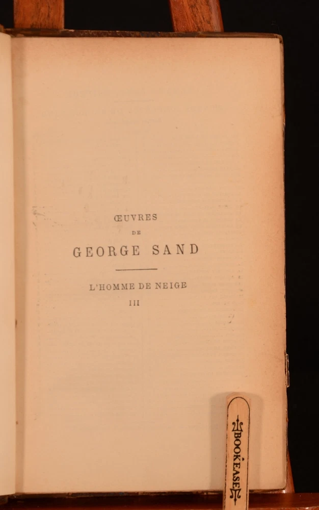 Click here to see our other books! L' Homme De Neige I II III George Sand [Amantine-Lucile-Aurore Dupin]; Calmann Lévy (ed.) 1887-1892 Michel Lévy Frères : Paris 7.5" by 5" 286pp; 303pp; 300pp. SUMMARY A complete three volume set of Sand's romantic French novel, 'The Snowman'. Leather Binding,Rebound Overall Condition: Good This book weighs 1.5 KG when packed UK Postage: £ 3.99 US Postage: £ 23.99 EU Postage : £ 18.99 European Postage: £ 19.99 Asia Postage: £ 31.99 Worldwide Postage: £ 32.99 DESCRIPTION 'Nouvelle Édition'. Amantine-Lucile-Aurore Dupin was best known by her pseudonym, George Sand and was a French Novelist and memoirist, remembered for her affairs with Frederic Chopin and Alfred de Musset as much as her work. Sand actively supported the February revolution of 1848 as a radical left-wing supporter, but the events of the June Day uprising shattered her Utopian illusions and her work reflected that, returning to the romantic spirit of her earlier work. 'The Snowman' is part of her later romantic work, along with 'Jean de la Roche'. A mixed edition set, with volume I published in 1887, and volume II and III published in 1892. All volumes are from the larger collection 'Oeuvres Complètes de George Sand', edited by Calvin Lévy and published by the Parisian publishing house Michel Lévy Frères. In French. CONDITION In a uniform half calf binding with marbled paper boards. Externally bumped and rubbed to extremities. Rubbing to paper boards, joints, and leather to spine. Bumping to head and tail of spines resulting in slight loss to leather. Spine labels detached and lacking to volume I and III. Leather to spine partially detached to backstrip, volume II but still holding. Front joint partially split and tender, volume I and II. Rear joint and hinge slightly strained but firm, volume I and II. Joints slightly strained but firm, volume III. Front hinge split and tender, with front free-endpaper and title page detached but present, volume II. Hinges split and strained, but still reasonably firm, volume I and III. Internally firmly bound, slightly strained in places. Pages age toned to edges, but clean throughout. Small sections of chipping to the extremity of the odd page, not affecting text. Prior owner's ink inscription to title page dated '94', all volumes. Very slight ink marking to half title page, volume III. Small scattered spotting to lower extremity of page 1/2, volume III, not affecting text. Overall Condition: Good GLOSSARY OF TERMS Overall Condition (Dustwrapper condition rating is shown after that for the book itself, where a dustwrapper is present) Fine - Very well preserved copy showing very little wear Very Good Indeed - Only one or two minor faults, really a very attractive copy Very Good - Quite a wide term meaning no major faults but probably several smaller ones often expected given the age of the book, but still a respectable copy Good - Meaning not very good. Some more serious faults as will be described in the condition report under 'condition' Good Only - Meaning one or more faults that could really do with repair Fair - As with good only above but with other faults leaving a compromised copy even after repair Poor - Really bad and possibly seriously incomplete. We only sell books in this condition where their rarity or value makes them attractive none the less. Major defects will be described. GUARANTEE We offer a full money back guarantee on our descriptions. Please ask for details and conditions. We prefer PAYPAL. If you pay via PAYPAL we will post the item off the same or the next working day with the postage you have selected. Please note we cannot accept USD cheques