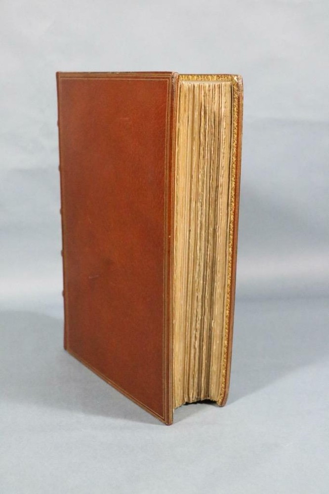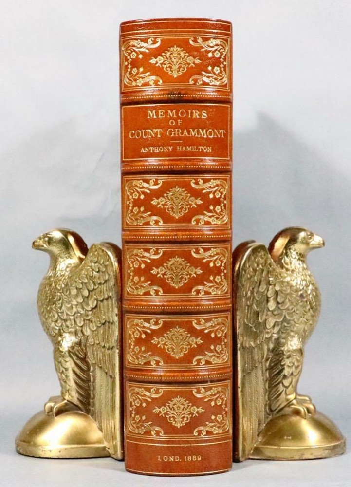 BOOK IS IN NEAR FINE CONDITION BEAUTIFULLY BOUND BY RIVIERE IN FULL CRUSHED MOROCCO WITH BRIGHT GILT RULE AND TURN INS TO BOARDS, SIX COMPARTMENTS AND FIVE LARGE RIBS TO SPINE WITH BRIGHT GILT DETAILS AND TITLE. BINDING AND HINGES ARE VERY GOOD, NO LOOSE OR MISSING PAGES, PAGES ARE BRIGHT AND CLEAN, WITHOUT MARKS AND MINIMAL FOXING. EXTRA ILLUSTRATED, SIR WALTER SCOTT (EDITOR) AUTOGRAPH LETTER BOUND IN FRONT, LIMITED LARGE PAPER EDITION #668 of 780. BOOK MEASURES 11.5"x8.5". 131 YEARS OLD. A BEAUTIFUL EXAMPLE IN SCARCE RIVIERE BINDING. 1889 Memoirs of Count Grammont Limited Riviere Binding Extra Illustrated 12"tall 1889 Memoirs of Count Grammont Limited Riviere Binding Extra Illustrated 12"tall Description RARE!!! 1889 BOUND BY RIVIERE SIR WALTER SCOTT SIGNED LETTER 131 YEARS OLD EXTRA ILLUSTRATED BOOK IS IN NEAR FINE CONDITION BEAUTIFULLY BOUND BY RIVIERE IN FULL CRUSHED MOROCCO WITH BRIGHT GILT RULE AND TURN INS TO BOARDS, SIX COMPARTMENTS AND FIVE LARGE RIBS TO SPINE WITH BRIGHT GILT DETAILS AND TITLE. BINDING AND HINGES ARE VERY GOOD, NO LOOSE OR MISSING PAGES, PAGES ARE BRIGHT AND CLEAN, WITHOUT MARKS AND MINIMAL FOXING. EXTRA ILLUSTRATED, SIR WALTER SCOTT (EDITOR) AUTOGRAPH LETTER BOUND IN FRONT, LIMITED LARGE PAPER EDITION #668 of 780. BOOK MEASURES 11.5"x8.5". 131 YEARS OLD. A BEAUTIFUL EXAMPLE IN SCARCE RIVIERE BINDING. !!!CLICK HERE!!! Visit My eBay Store TO SEE ALL THE BOOKS WE HAVE FOR SALE!!! IF YOU LIKE WHAT YOU SEE THAN SAVE US TO YOUR FAVORITES BY CLICKING HERE. Add me to your Favorite Sellers RARE ANTIQUARIAN BOOKS CAN BE FRAGILE AND NEED TO BE HANDLED WITH CARE. About us: Reagan's Rare Books is a purveyor of Antiquarian books primarily from the 18th and 19th centuries. We love antique books! We search all over the country for the finest rare books, looking for those with beautiful bindings and in great condition so that we can offer you, the customer, a truly rare one of a kind collectible. Paypal Preferred. Please make payment arrangements within 48 hours of winning your auction. We reserve the right to re-list items not paid within 5 days. Shipping *To Insure That Your Package arrives without any Problems , Please Double Check to Make Sure That The Address You Have Selected in eBay Is Correct. All books are carefully bubble wrapped and packed in a box with adequate packing peanuts to prevent any damage during shipment. All books are shipped with delivery confirmation and tracking. Books over $75.00 are automatically insured. RETURNS 100% Satisfaction Guaranteed. Returns accepted for any reason within 30 days of receipt. PLEASE CHECK MY OTHER LISTINGS. POSTING NEW RARE BOOKS DAILY/WEEKLY. Get images that make Supersized seem small. Showcase your items with Auctiva's Listing Templates! THE simple solution for eBay sellers. Track Page Views With Auctiva's FREE Counter