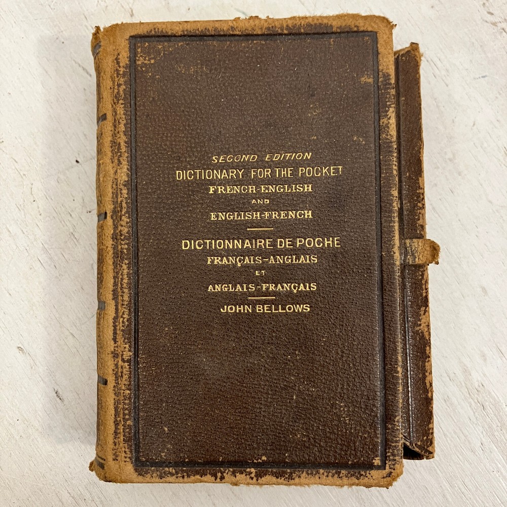 1896 Dictionary for the Pocket French-English 2nd Ed by John Bellows Antique (3400591) This is a used book in rough condition, has scuffing and wear to the leather cover. Staining throughout, but no writing noticed. Binding is weakened in places but overall intact. Smells like an old book, but not smoky, moldy, or musty. See pictures for overview of condition. We are BrightLight Books. We have sold tens of thousands of items online since 1998. Money Back Guaranteed! For Local Pickup in our Fern Park, FL store, please message us! 37-16 (8/23/24) JW