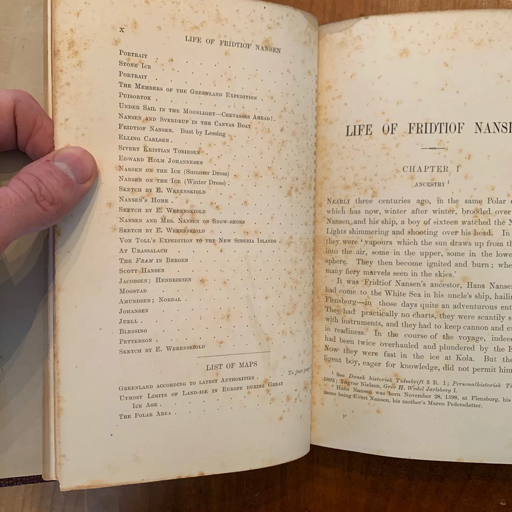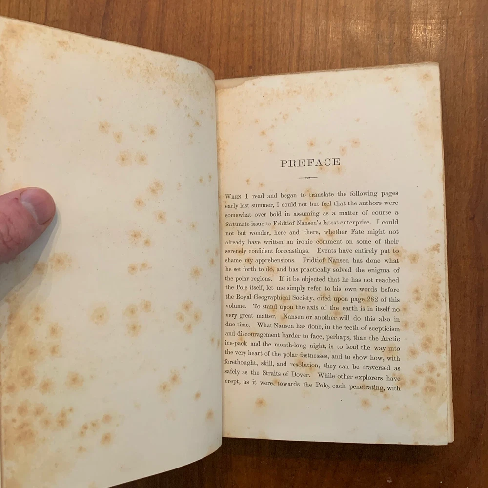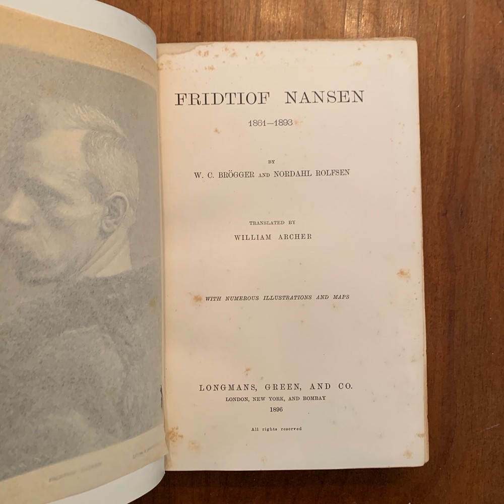 1896 Fridtjof Nansen 1861-1893 by Brogger and Rolfsen w/ Illustrations Maps Foxing throughout the book, see pictures for details. Satisfaction guaranteed or you can send it back!