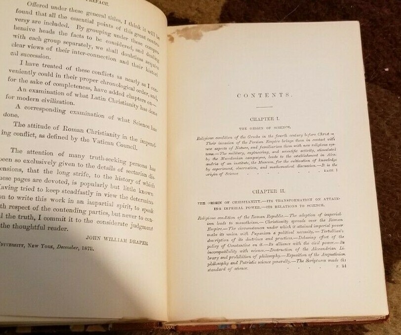 HISTORY OF THE CONFLICT BETWEEN RELIGION AND SCIENCE by John William Draper Published by D. Appleton and Company, 1896. HISTORY OF THE CONFLICT BETWEEN RELIGION AND SCIENCE (John William Draper, M. D., LL. D. - PROFESSOR IN THE UNIVERSITY OF NEW YORK, AUTHOR OF A TREATISE ON HUMAN PHYSIOLOGY, HISTORY OF THE INTELLECTUAL DEVELOPMENT OF EUROPE, HISTORY OF THE AMERICAN CIVIL WAR, AND OF MANY EXPERIMENTAL MEMOIRS ON CHEMICAL AND OTHER SCIENTIFIC SUBJECTS) PREFACE. WHOEVER has had an opportunity of becoming acquainted with the mental condition of the intelligent classes in Europe and America, must have perceived that there is a great and rapidly-increasing departure from the public religious faith, and that, while among the more frank this divergence is not concealed, there is a far more extensive and far more dangerous secession, private and unacknowledged. So wide-spread and so powerful is this secession, that it can neither be treated with contempt nor with punishment. It cannot be extinguished by derision, by vituperation, or by force. The time is rapidly approaching when it will give rise to serious political results. Ecclesiastical spirit no longer inspires the policy of the world. Military fervor in behalf of faith has disappeared. Its only souvenirs are the marble effigies of crusading knights, reposing in the silent crypts of churches on their tombs. That a crisis is impending is shown by the attitude of the great powers toward the papacy. The papacy represents the ideas and aspirations of two-thirds of the population of Europe. It insists on a political supremacy in accordance with its claims to a divine origin and mission, and a restoration of the medieval order of things, loudly declaring that it will accept no reconciliation with modern civilization. The antagonism we thus witness between Religion and Science is the continuation of a struggle that commenced when Christianity began to attain political power. A divine revelation must necessarily be intolerant of contradiction; it must repudiate all improvement in itself, and view with disdain that arising from the progressive intellectual development of man. But our opinions on every subject are continually liable to modification, from the irresistible advance of human knowledge. Can we exaggerate the importance of a contention in which every thoughtful person must take part whether he will or not? In a matter so solemn as that of religion, all men, whose temporal interests are not involved in existing institutions, earnestly desire to find the truth. They seek information as to the subjects in dispute, and as to the conduct of the disputants. The history of Science is not a mere record of isolated discoveries; it is a narrative of the conflict of two contending powers, the expansive force of the human intellect on one side, and the compression arising from traditionary faith and human interests on the other. No one has hitherto treated the subject from this point of view. Yet from this point it presents itself to us as a living issue—in fact, as the most important of all living issues. A few years ago, it was the politic and therefore the proper course to abstain from all allusion to this controversy, and to keep it as far as possible in the background. The tranquillity of society depends so much on the stability of its religious convictions, that no one can be justified in wantonly disturbing them. But faith is in its nature unchangeable, stationary; Science is in its nature progressive; and eventually a divergence between them, impossible to conceal, must take place. It then becomes the duty of those whose lives have made them familiar with both modes of thought, to present modestly, but firmly, their views; to compare the antagonistic pretensions calmly, impartially, philosophically. History shows that, if this be not done, social misfortunes, disastrous and enduring, will ensue. When the old mythological religion of Europe broke down under the weight of its own inconsistencies, neither the Roman emperors nor the philosophers of those times did any thing adequate for the guidance of public opinion. They left religious affairs to take their chance, and accordingly those affairs fell into the hands of ignorant and infuriated ecclesiastics, parasites, eunuchs, and slaves. The intellectual night which settled on Europe, in consequence of that great neglect of duty, is passing away; we live in the daybreak of better things. Society is anxiously expecting light, to see in what direction it is drifting. It plainly discerns that the track along which the voyage of civilization has thus far been made, has been left; and that a new departure, on all unknown sea, has been taken. Though deeply impressed with such thoughts, I should not have presumed to write this book, or to intrude on the public the ideas it presents, had I not made the facts with which it deals a subject of long and earnest meditation. And I have gathered a strong incentive to undertake this duty from the circumstance that a "History of the Intellectual Development of Europe," published by me several years ago, which has passed through many editions in America, and has been reprinted in numerous European languages, English, French, German, Russian, Polish, Servian, etc., is everywhere received with favor. In collecting and arranging the materials for the volumes I published under the title of "A History of the American Civil War," a work of very great labor, I had become accustomed to the comparison of conflicting statements, the adjustment of conflicting claims. The approval with which that book has been received by the American public, a critical judge of the events considered, has inspired me with additional confidence. I had also devoted much attention to the experimental investigation of natural phenomena, and had published many well-known memoirs on such subjects. And perhaps no one can give himself to these pursuits, and spend a large part of his life in the pub