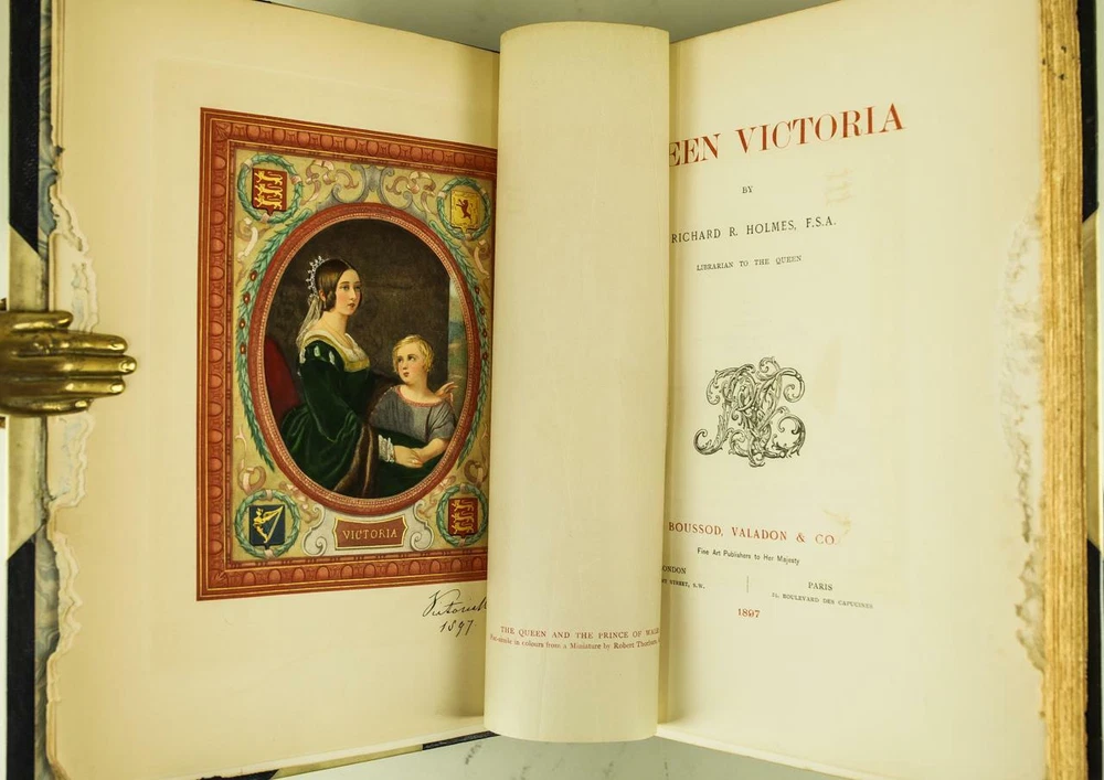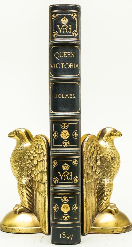 THIS ATTRACTIVE FOLIO IS IN GREAT CONDITION BEAUTIFULLY BOUND BY HATCHARDS IN 3/4 CRUSHED MOROCCO WITH BRIGHT GILT RULE AND PATTERNING TO BOARDS CONTAINING VELLUM. SIX COMPARTMENTS AND FIVE RAISED BANDS TO SPINE WITH BRIGHT GILT DETAILS AND TITLE. BINDING AND HINGES ARE VERY GOOD, MARBLED END PAPERS AND PASTE DOWNS, TOP EDGES GILT. NO LOOSE OR MISSING PAGES, WORM HOLING TO EDGES OF FIRST 20 PAGES. PAGES ARE BRIGHT AND CLEAN, WITHOUT MARKS AND MINIMAL FOXING. PROFUSELY ILLUSTRATED, 200 PAGES, BOOK MEASURES 13"x10". FIRST EDITION, 124 YEARS OLD. A NICE EXAMPLE. 1897 1stED Queen Victoria by Richard R. Holmes Bound by Hatchards Folio 13" 1897 1stED Queen Victoria by Richard R. Holmes Bound by Hatchards Folio 13" Description RARE! 1897 BOUND BY HATCHARDS THIS ATTRACTIVE FOLIO IS IN GREAT CONDITION BEAUTIFULLY BOUND BY HATCHARDS IN 3/4 CRUSHED MOROCCO WITH BRIGHT GILT RULE AND PATTERNING TO BOARDS CONTAINING VELLUM. SIX COMPARTMENTS AND FIVE RAISED BANDS TO SPINE WITH BRIGHT GILT DETAILS AND TITLE. BINDING AND HINGES ARE VERY GOOD, MARBLED END PAPERS AND PASTE DOWNS, TOP EDGES GILT. NO LOOSE OR MISSING PAGES, WORM HOLING TO EDGES OF FIRST 20 PAGES. PAGES ARE BRIGHT AND CLEAN, WITHOUT MARKS AND MINIMAL FOXING. PROFUSELY ILLUSTRATED, 200 PAGES, BOOK MEASURES 13"x10". FIRST EDITION, 124 YEARS OLD. A NICE EXAMPLE. !!!CLICK HERE!!! Visit My eBay Store TO SEE ALL THE BOOKS WE HAVE FOR SALE!!! IF YOU LIKE WHAT YOU SEE THAN SAVE US TO YOUR FAVORITES BY CLICKING HERE. Add me to your Favorite Sellers RARE ANTIQUARIAN BOOKS CAN BE FRAGILE AND NEED TO BE HANDLED WITH CARE. About us: Reagan's Rare Books is a purveyor of Antiquarian books primarily from the 18th and 19th centuries. We love antique books! We search all over the country for the finest rare books, looking for those with beautiful bindings and in great condition so that we can offer you, the customer, a truly rare one of a kind collectible. Paypal Preferred. Please make payment arrangements within 48 hours of winning your auction. We reserve the right to re-list items not paid within 5 days. Shipping *To Insure That Your Package arrives without any Problems , Please Double Check to Make Sure That The Address You Have Selected in eBay Is Correct. All books are carefully bubble wrapped and packed in a box with adequate packing peanuts to prevent any damage during shipment. All books are shipped with delivery confirmation and tracking. Books over $75.00 are automatically insured. RETURNS 100% Satisfaction Guaranteed. Returns accepted for any reason within 30 days of receipt. PLEASE CHECK MY OTHER LISTINGS. POSTING NEW RARE BOOKS DAILY/WEEKLY. Pictures sell! Auctiva offers Free Image Hosting and Editing. 300+ Listing Templates! Auctiva gets you noticed! The complete eBay Selling Solution. Track Page Views With Auctiva's FREE Counter