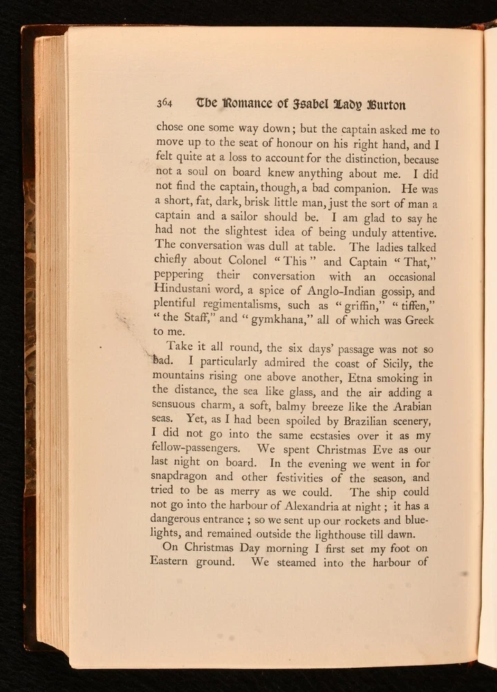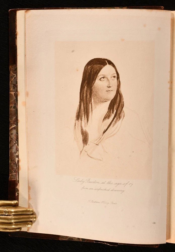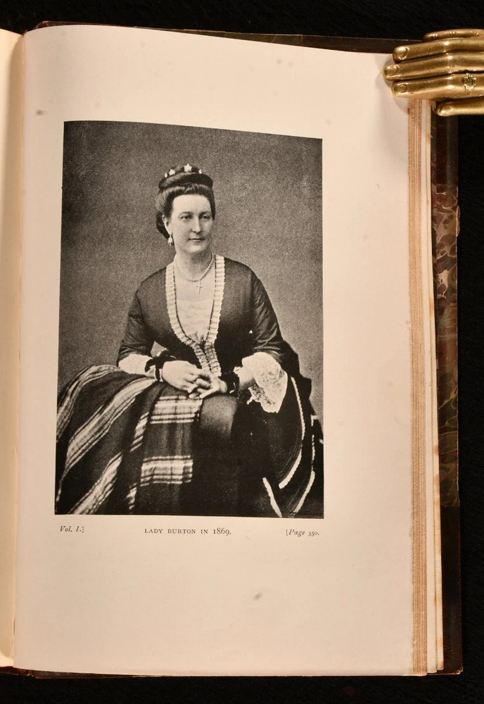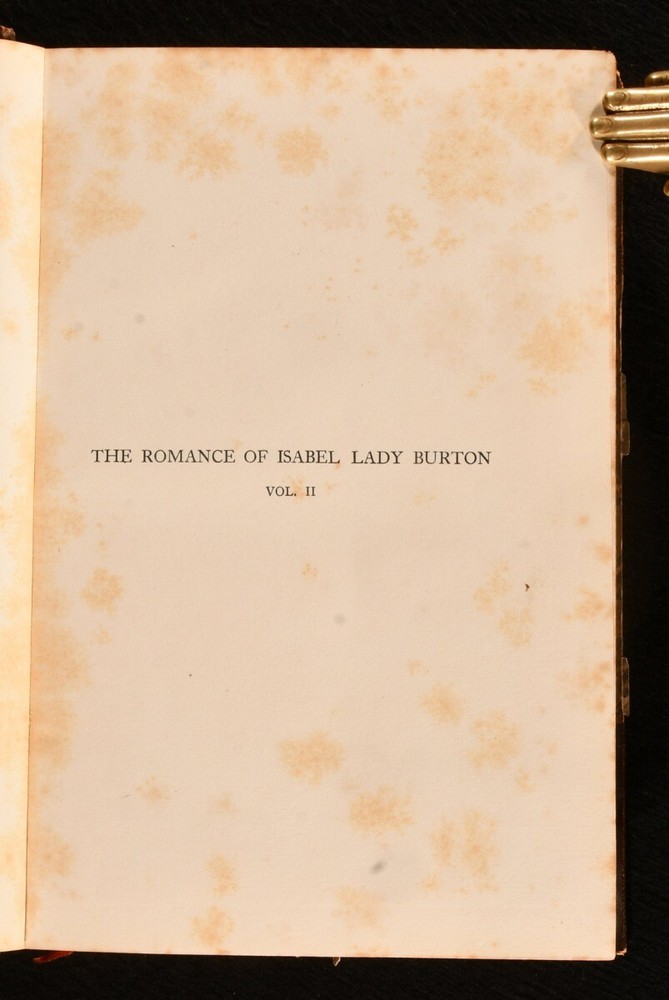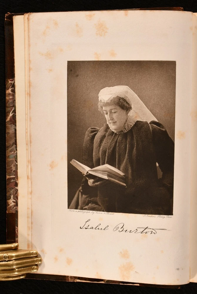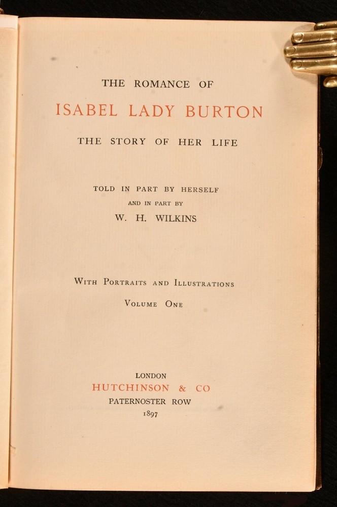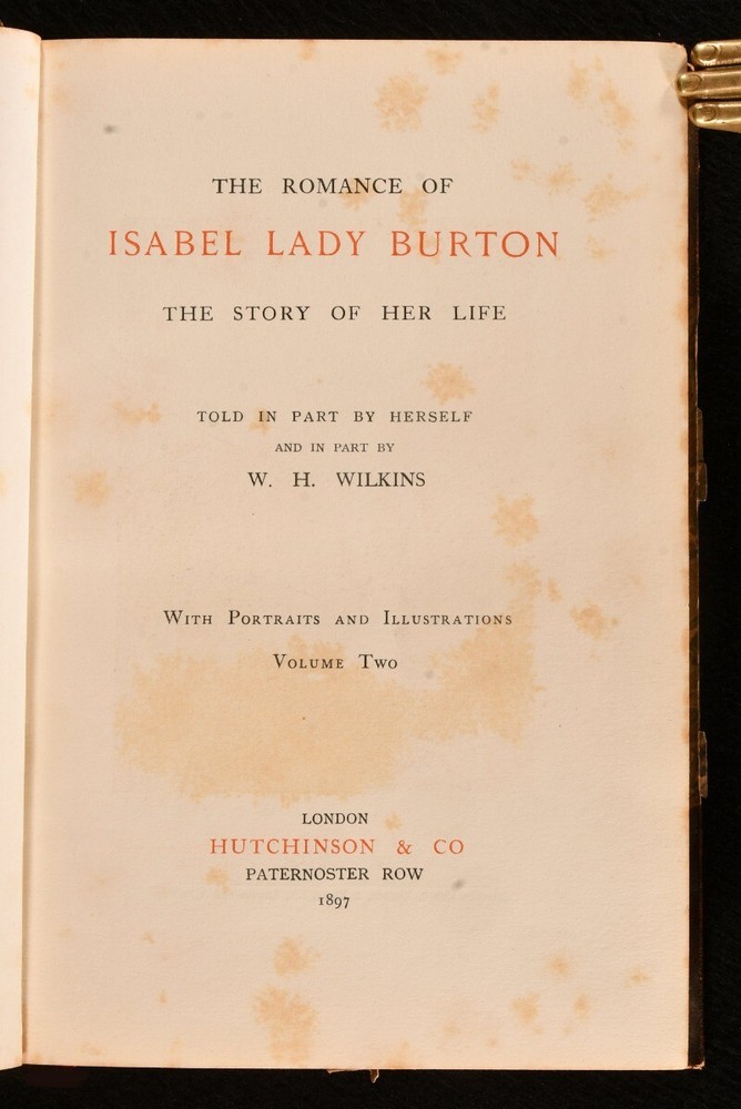 Click here to see our other books! The Romance of Isabel Lady Burton: The Story of Her Life Isabel Burton; W. H. Wilkins 1897 Hutchinson & Co. : London 8.5" by 5.5" xii, 374; vii, 375-778pp. SUMMARY A first edition copy of this fascinating biography of Isabel Burton, the writer, adventurer and wife of Richard Francis Burton. First Edition,Illustrated,Leather Binding,Rebound,Scarce Overall Condition: Very Good Indeed This book weighs 2 KG when packed UK Postage: £ 3.99 US Postage: £ 29.99 EU Postage : £ 21.99 European Postage: £ 23.99 Asia Postage: £ 37.99 Worldwide Postage: £ 38.99 DESCRIPTION The scarce first edition. Complete in two volumes. Uniformly bound in a neat half morocco binding with gilt detail. Volume one has a portrait frontispiece, and seventeen plates. Collated complete. Volume two has a portrait frontispiece, and twenty-four plates. Collated complete. The interesting biography of Isabel, Lady Burton, written from the memoirs and letters of Lady Burton herself, alongside the writing of W. H. Wilkins. Isabel Burton was an English writer and explorer, best known for being the wife of the famous adventurer, Richard Francis Burton. Much of Lady Burton's life was influenced by her Catholic faith, and during the Crimean War, she set up a Catholic group called the 'Stella Club', which helped support the families of soldiers. William Henry Wilkins was an English writer, esteemed biographer, and personal friend of Lady Burton. The half title pages are present. CONDITION Uniformly bound in half morocco. Externally, very smart with some rubbing to the edges and spine. Fading to the spine. Light marks to the boards and spine. Internally, firmly bound. Pages age-toned to the edges but generally bright and clean. Spotting towards the front and rear of both volumes, with the odd spot throughout. Small mark to pages 364 and 372 of volume one. Overall Condition: Very Good Indeed GLOSSARY OF TERMS Overall Condition (Dustwrapper condition rating is shown after that for the book itself, where a dustwrapper is present) Fine - Very well preserved copy showing very little wear Very Good Indeed - Only one or two minor faults, really a very attractive copy Very Good - Quite a wide term meaning no major faults but probably several smaller ones often expected given the age of the book, but still a respectable copy Good - Meaning not very good. Some more serious faults as will be described in the condition report under 'condition' Good Only - Meaning one or more faults that could really do with repair Fair - As with good only above but with other faults leaving a compromised copy even after repair Poor - Really bad and possibly seriously incomplete. We only sell books in this condition where their rarity or value makes them attractive none the less. Major defects will be described. GUARANTEE We offer a full money back guarantee on our descriptions. Please ask for details and conditions. We prefer PAYPAL. If you pay via PAYPAL we will post the item off the same or the next working day with the postage you have selected. Please note we cannot accept USD cheques