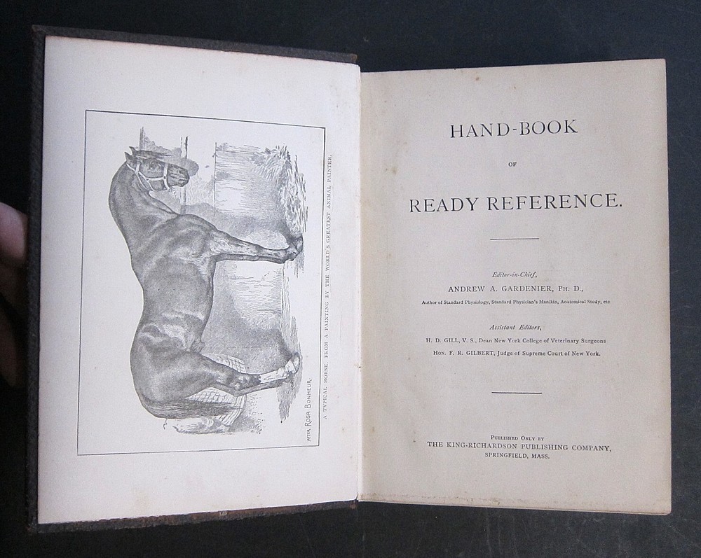 Copyright 1897. "Issued by Subscription Only". Pebbled leather, gilt titles on spine. (xii) 636 pp. ~7" x 9.5". Illustrated with color "manikins" -- pop ups with multiple layers, and b+w illustrations in text. Good Condition. Please examine photos closely . Wear & aging to covers. Wear/loss at head of spine with cuts/loss to spine ends. B inding is firm. Front hinge is very tender. Rear hinge is loose with webbing & cords visible. Age discoloration to edges of text block. Light age spotting to endpapers; soiling/age spotting to title page and to manikins/facing pages; a few loose pages but complete o/w interior is age toned, free of markings, with age spotting/soiling scattered throughout. Buyer pays $8.00 USPS media mail shipping. Please ask any questions before purchase. Local Rochester buyers are welcome to pick up an item at our store on Monroe Ave. Thanks and check out our other listings!