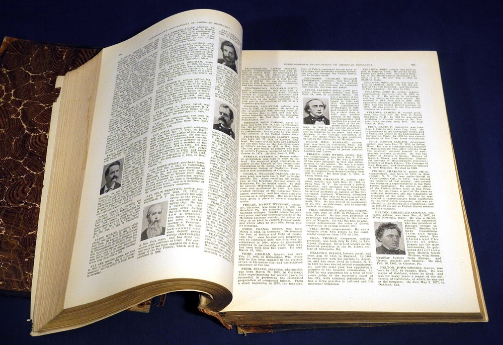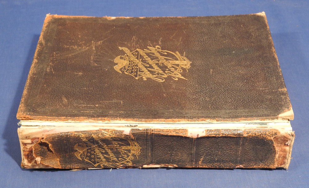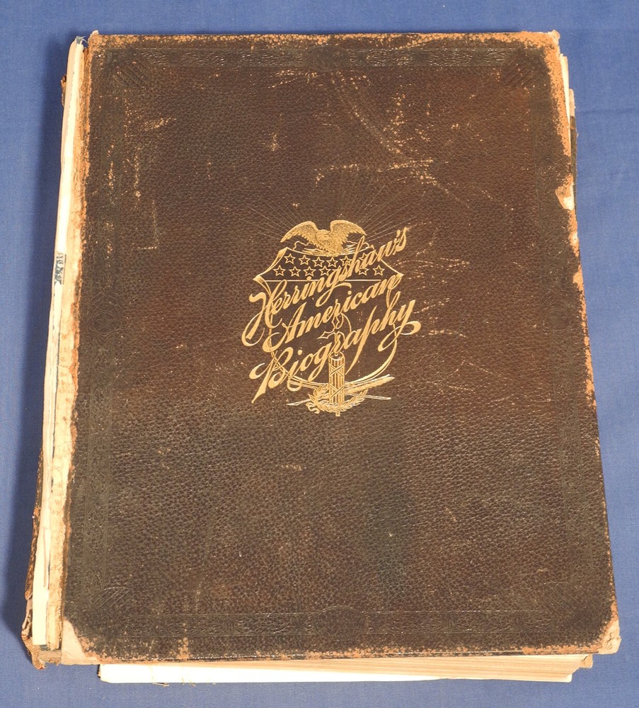 This is for a Antique Book: Herringshaw's Encyclopedia of American Biography of the Nineteenth Century. Illustrated Leather bound Hardcover Book, with Gold Gilt on all three page edges, published by American Publishers Assoc., dated 1898 on title page. Approximately 12-1/2 in. by 9-3/4 in., 1046 pages. Book has wear, including edge wear to leather, some stains, covers are loose, marbled page in front is loose, marbled page in back is missing, some damage to spine, etc., see also pictures. Buyer to pay $10.00 for shipping and handling for U.S. address. We ship worldwide. International costs to be determined. Please click on 'See Details' for quote. We combine shipping if possible. Please take the time to read the following: Payment should be received within 3 days of purchase. We only ship to the address shown on the paypal payment. Because we are selling fresh items from estates, barns, etc., expect signs of wear and usage appropriate with the age of such items. We usually take multiple photographs of an item. Please check for a second row of photos, they often are there but can be overlooked. Photographs are part of the description and show all that is included. We photograph and accurately describe every item as to its condition and authenticity to the best of our ability. If you have any questions, please let us know. We often have similar items available, so please see our Other Items , or go to our 'ewkauctions' ebay store .