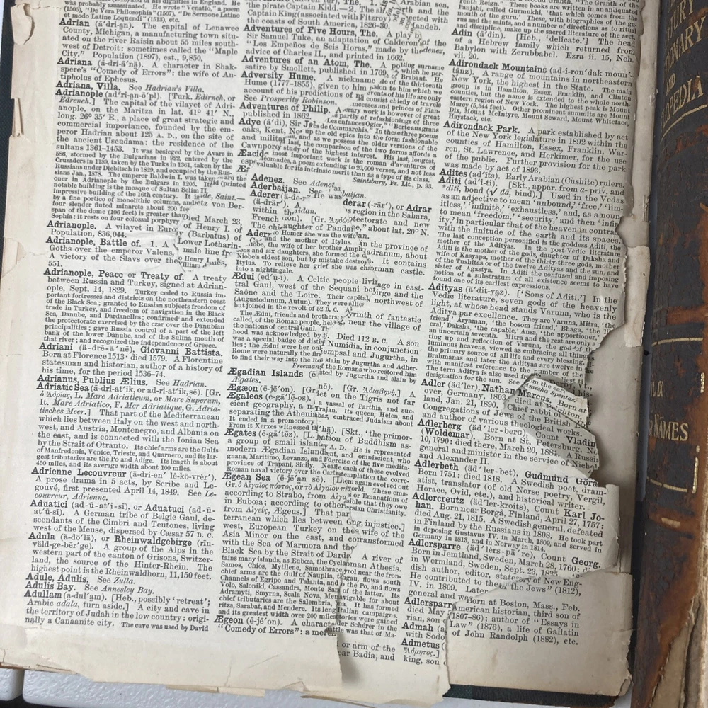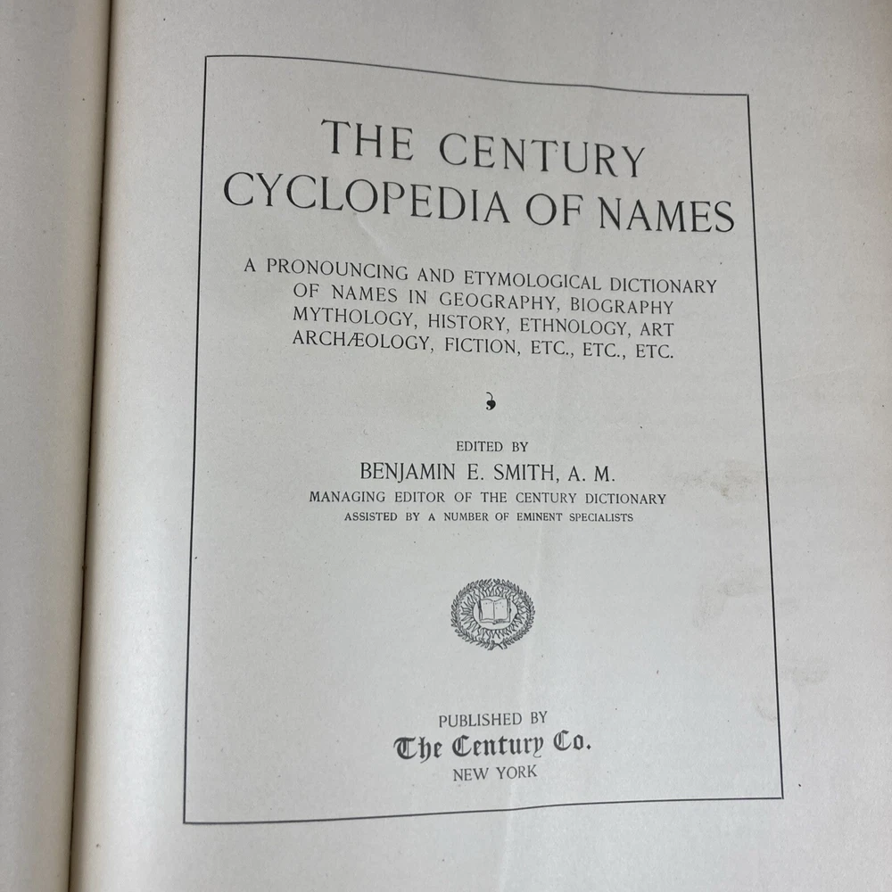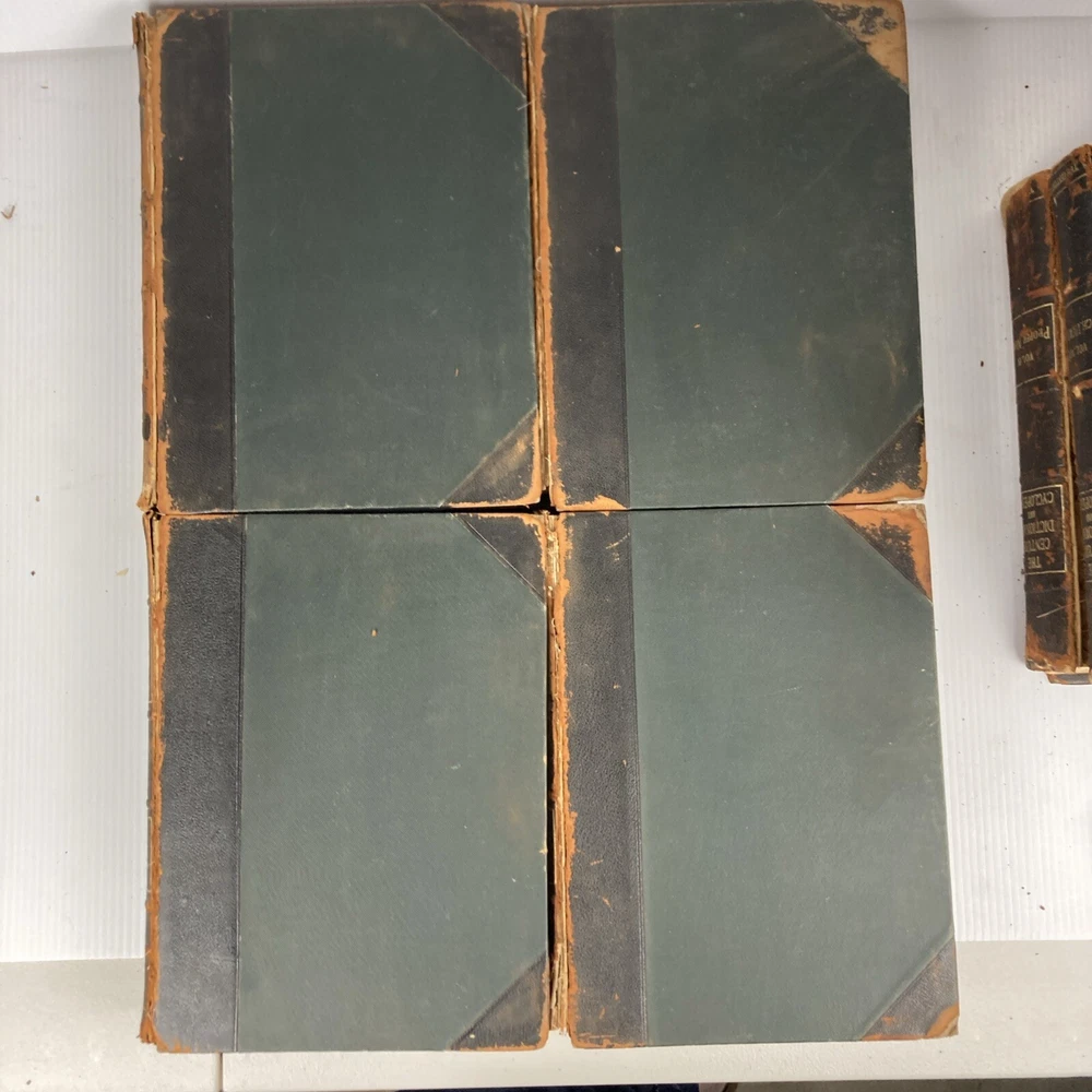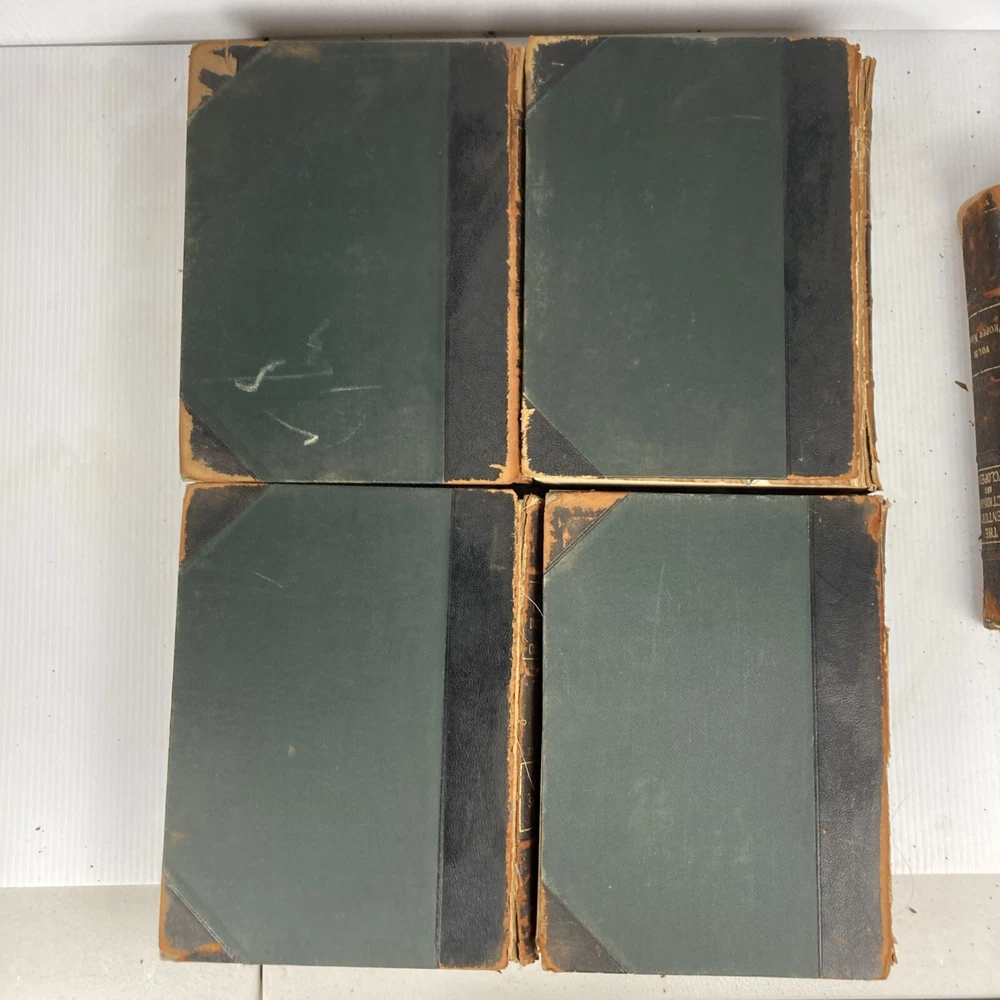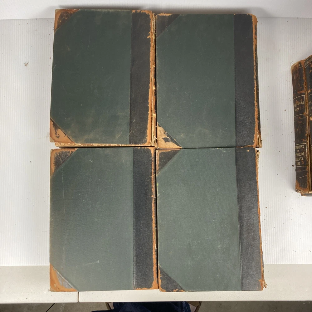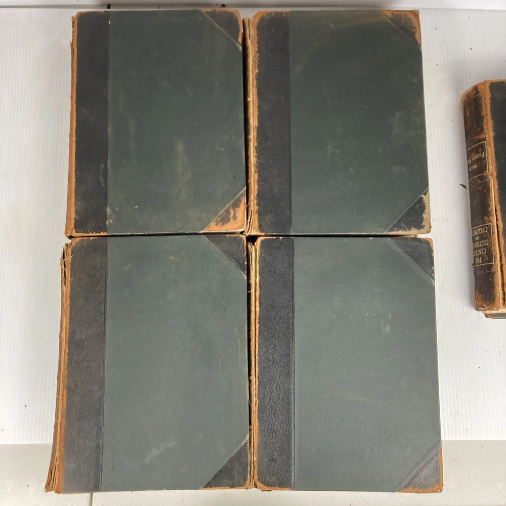 This is a rare, antique, 9-volume set of The Century Dictionary and Cyclopedia: A Work of Universal Reference in All Departments of Knowledge with a New Atlas of the World , published by The Century Company in 1899. The books are bound in leather. Please note condition issues described above. The set contains: 8 profusely illustrated A to Z volumes. The plan for the dictionary and cyclopedia was described as including "three things: the construction of a general dictionary for every literary and practical use; a more complete collection of the technical terms of the various sciences, arts, trades, and professions than has yet been attempted; and the addition to the definitions proper of such related encyclopedic matterk, with pictorial illustrations as shall constitute a convenient book of general reference." The 9th volume addresses Proper Names of prominent historic individuals and places. The set provides a fascinating look at the state of the world's knowledge and perspectives at the turn of the century. The volumes are 12" tall x 9" wide and about 2" thick. See photos for content examples. (The 10th atlas volume is not included.) I ship books carefully and securely in protective boxes.