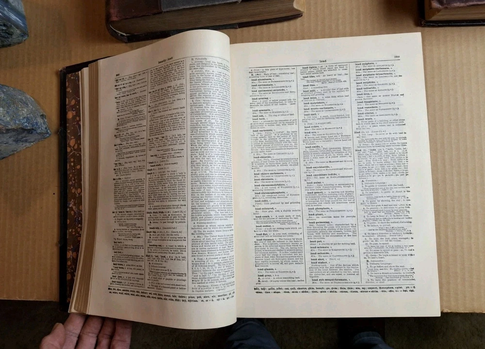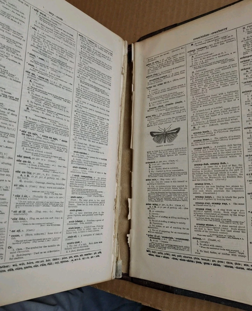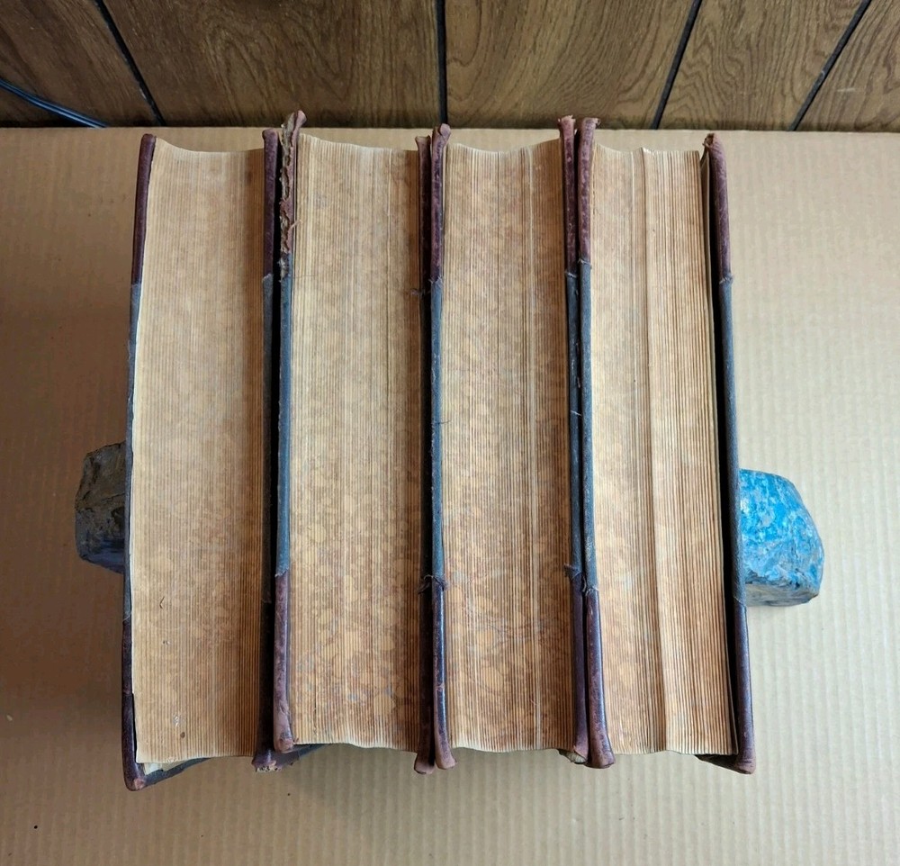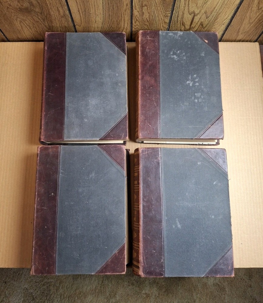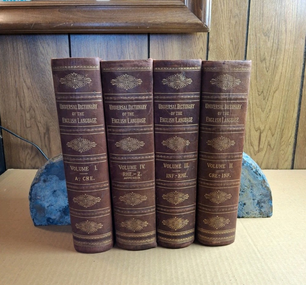 UNIVERSAL DICTIONARY OF THE ENGLISH LANGUAGE VOLUME I-IV Profusely Illustrated Edited by Robert Hunter and Charles Morris Published by Peter Fenelon Collier 1899 These books are in fair to good condition. The first two volumes do have a split spine. Volume one is split between some pages at the end. Volume two is closer to the middle of the book. That said, they are fully intact. Volume three and four do not have such issues. They all have straight spines and largely clean pages (a soi;l spot here and there). The covers are partially leather and the end papers are marbled. The text block is marbled as well but has faded. They contain numerous full page color illustrations. Please see all of my pictures for the best determination of condition. I am happy to send additional photos. Free Shipping and Handling via USPS Media Mail PLEASE SEE MY OTHER LISTINGS FOR MORE BOOKS