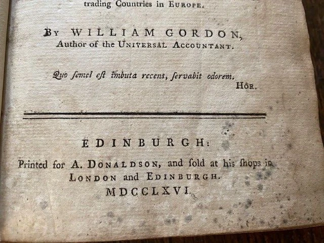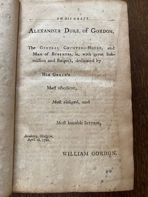THIS 18TH CENTURY BOOK, PRINTED IN 1766 IS TITLED "GENERAL COUNTING-HOUSE AND MAN OF BUSINESS" BY PROLIFIC AUTHOR OF HIS TIME, WILLIAM GORDON. IT IS A VALUABLE ADDITION TO ANY COLLECTION. GEORGE WASHINGTON WAS KNOWN TO HAVE SEVERAL OF WILLIAM GORDON'S BOOKS IN HIS PERSONAL COLLECTION. THE LEATHER BOUND BOOK HAS BEEN PROFESSIONALLY RESTORED AND WAS ORIGINALLY PRINTED IN 1766 FOR A. DONALDSON AND SOLD AT HIS SHOPS IN LONDON AND EDINBURGH. THE BOOK COVERS VARIOUS ASPECTS OF BUSINESS AND IS WRITTEN IN ENGLISH. THIS BOOK IS PERFECT FOR THOSE INTERESTED IN THE HISTORY OF BUSINESS AND ACCOUNTING PRACTICES. IT ALSO COMES WITH THE CUSTOM MADE STORAGE BOX. THE BOOK ITSELF MEASURES ROUGHLY 5.125" BY 8.125" AND THE CUSTOM MADE BOX MEASURES ROUGHLY 6.5" BY 9.5" BY 2.625". PLEASE LOOK CLOSELY AT THE PHOTOS. PAYPAL PAYMENT ONLY. THANKS FOR LOOKING AND THANKS FOR BIDDING.