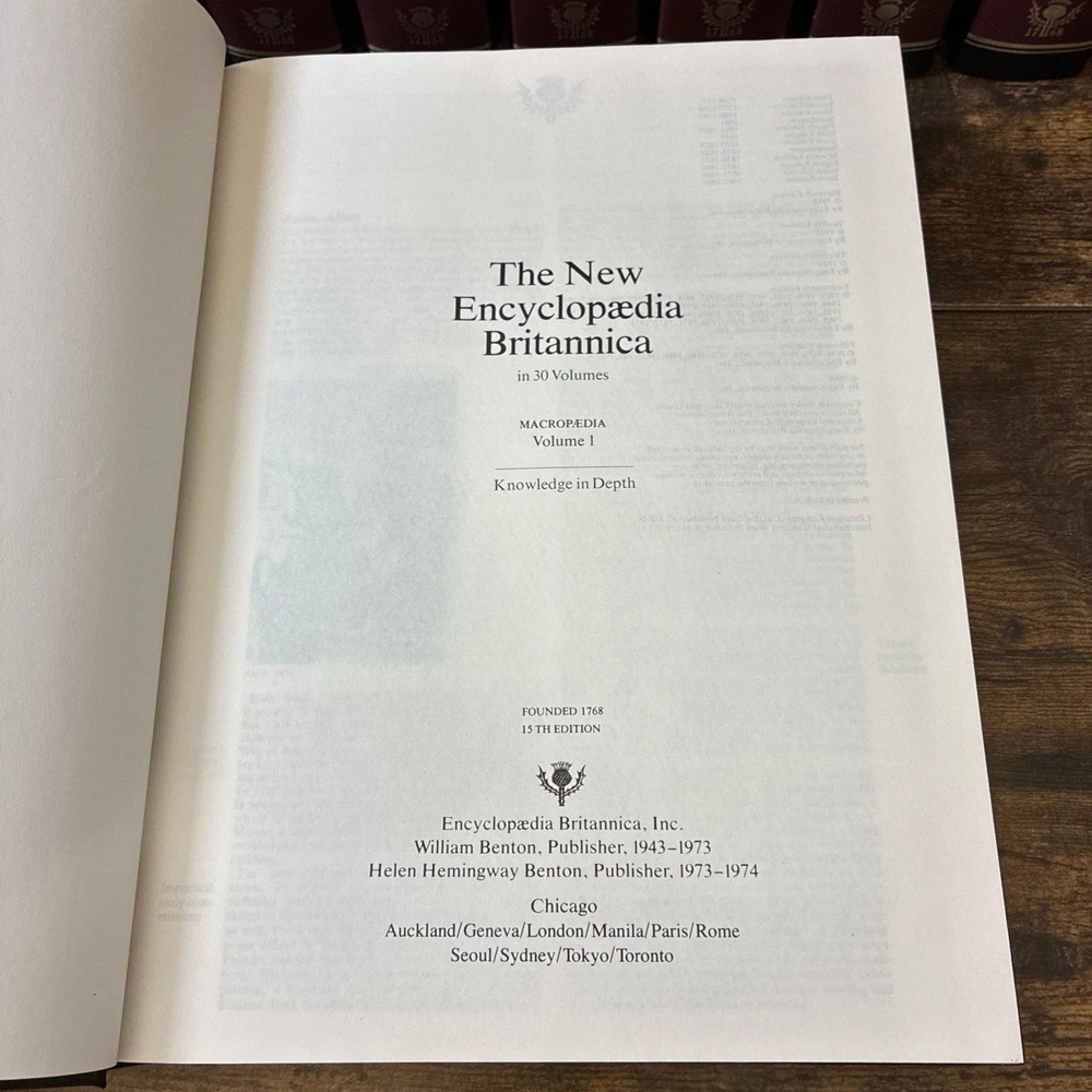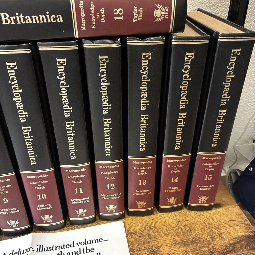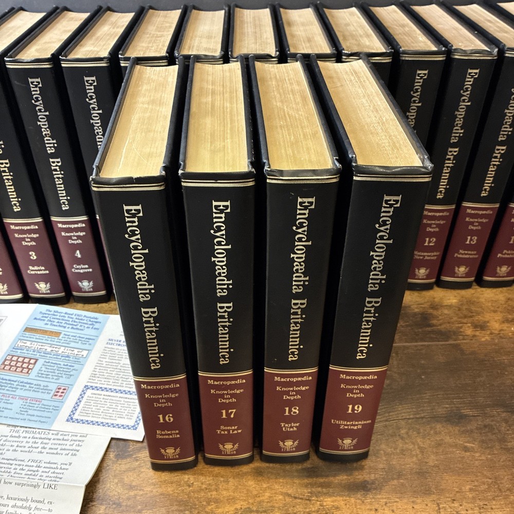Lot of 19 Encyclopedia Britannica 15th Edition Volume Set 1984 MACROPEDIAS Leather HC Vol 1-19 Very good overall condition for this large bundle set. Pages clean and intact. Shipped out within 1 busin...