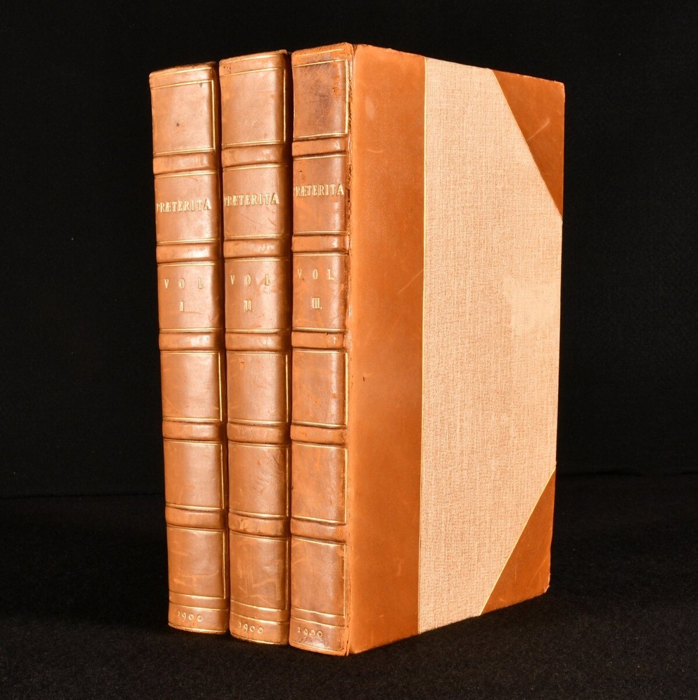 Click here to see our other books! Praeterita. Outlines of Scenes and Thoughts Perhaps Worthy of Memory in My Past Life John Ruskin 1900 George Allen : London 9.5" by 6" xv, [1], 432; xi, [1], 442; viii, 171pp SUMMARY A nice Hatchard's bound second edition of John Ruksin's personal autobiography, an interesting work about the eminent Victorian. Illustrated,Leather Binding,Signed Binding Overall Condition: Very Good This book weighs 4 KG when packed UK Postage: £ 4.49 US Postage: £ 39.99 EU Postage : £ 26.99 European Postage: £ 36.99 Asia Postage: £ 65.99 Worldwide Postage: £ 99.99 DESCRIPTION The second edition. Complete in three volumes. Bound by Hatchards. Illustrated with a frontispiece to each volume, and one plate in Volume III. Collated, complete. The autobiography of John Ruskin, this second edition published in the year of his death. This is considered to be his last great work, first published in 1885-89. It's considered to be a personal and eloquent autobiography, though not completely honest about all aspects of his life. John Ruskin was an art critic in Victorian England, being an influential figure in the art world, especially with the Pre-Raphaelites. He was also greatly admired by Leo Tolstoy, Marcel Proust, and William Morris. Prior owner's gift inscription to the verso to the front endpaper of Volume I, 'Alice Hudson, the first Lady Mayor of Eastbourne, a New Year's memorial of her memorable mayorality, from her affectionate old friend, C. Crowden, D.D. Jan 1 1928'. Hudson was the first woman councillor and mayor of Eastbourne, becoming a councillor in 1919 and Mayor in 1926. Letter from Crowden to Alice loosely inserted. CONDITION In a half calf binding by Hatchards with cloth to the boards. Externally, smart, with some light rubbing to the leather. Spines are joints are very light faded. A few very small marks to the boards and spines. Some spots to the fore edges. Front hinge of Volume II is starting but firm. Prior owner's gift inscription to the verso to the front endpaper of Volume I. Internally, firmly bound. Pages are bright and clean with the occasional spot. Overall Condition: Very Good GLOSSARY OF TERMS Overall Condition (Dustwrapper condition rating is shown after that for the book itself, where a dustwrapper is present) Fine - Very well preserved copy showing very little wear Very Good Indeed - Only one or two minor faults, really a very attractive copy Very Good - Quite a wide term meaning no major faults but probably several smaller ones often expected given the age of the book, but still a respectable copy Good - Meaning not very good. Some more serious faults as will be described in the condition report under 'condition' Good Only - Meaning one or more faults that could really do with repair Fair - As with good only above but with other faults leaving a compromised copy even after repair Poor - Really bad and possibly seriously incomplete. We only sell books in this condition where their rarity or value makes them attractive none the less. Major defects will be described. GUARANTEE We offer a full money back guarantee on our descriptions. Please ask for details and conditions. We prefer PAYPAL. If you pay via PAYPAL we will post the item off the same or the next working day with the postage you have selected. Please note we cannot accept USD cheques