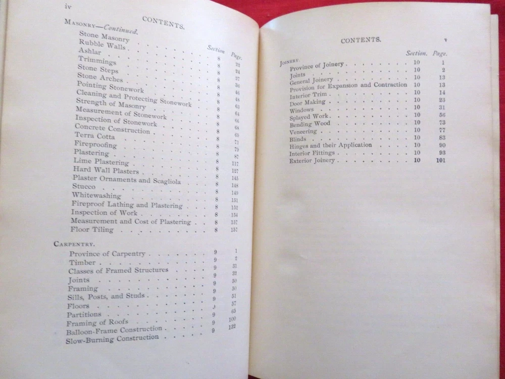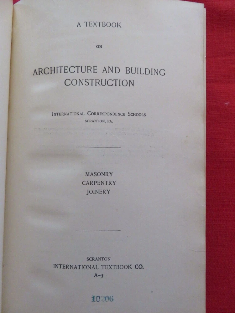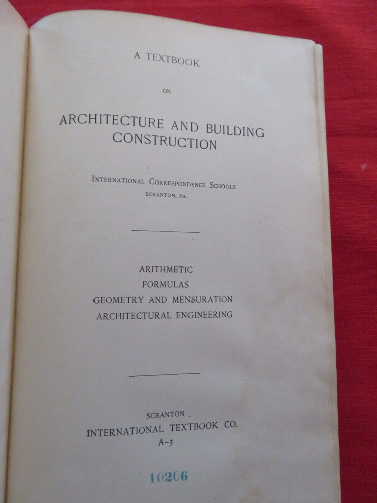 I. C. S. A Textbook On ARCHITECYURE AND BUILDING CONSTRUCTION MASONRY CARPENTRY JOINERY ARITMETIC FORMULAS GEOMETRY AND MENSURATION ARCHITECTURAL ENGINEERING 1900 Check out my other items !...