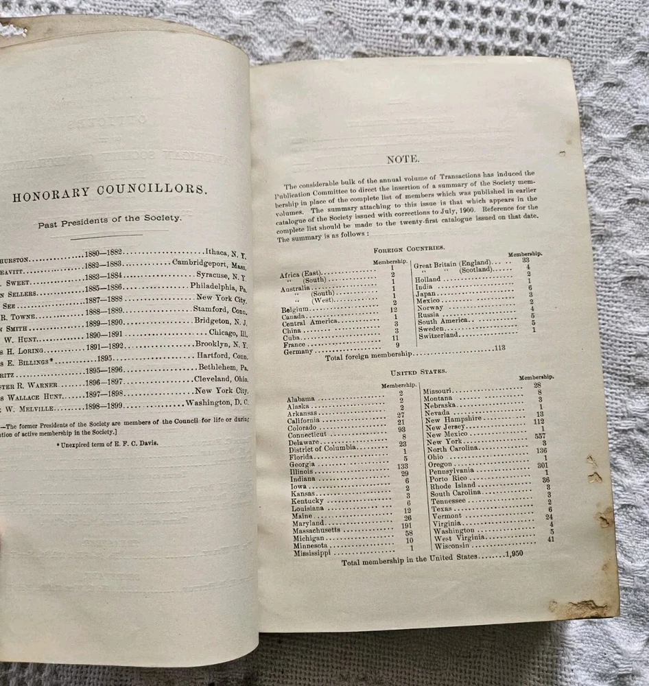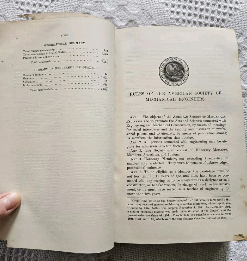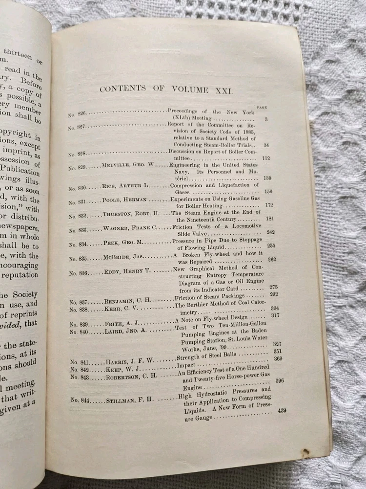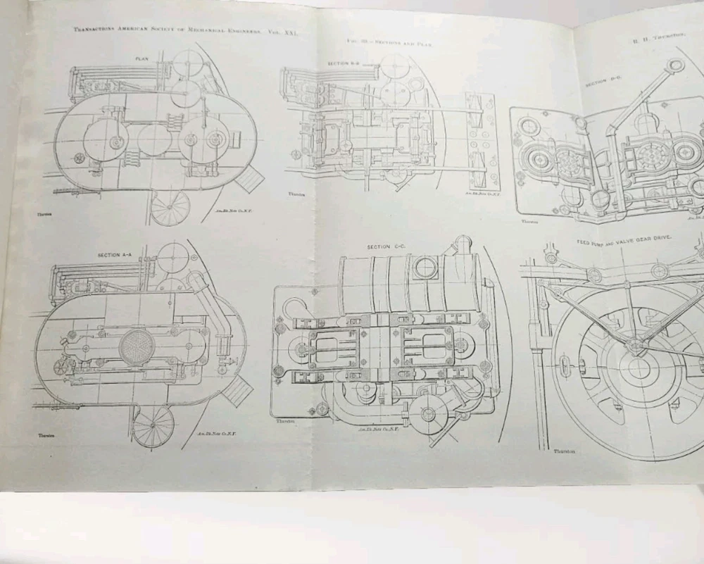 VERY RARE. 1900. Transactions of the American Society of Mechanical Engineers Vol XXI RARE. Antique Leather Hardcover book in good condition. It has edgewear, leather wear, chipping to first introduction pages, some cracking to hinging, and crisp and clean pages. It includes tons of illustrations, pull outs, and folders. See photos for specific details and wear.