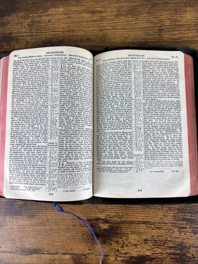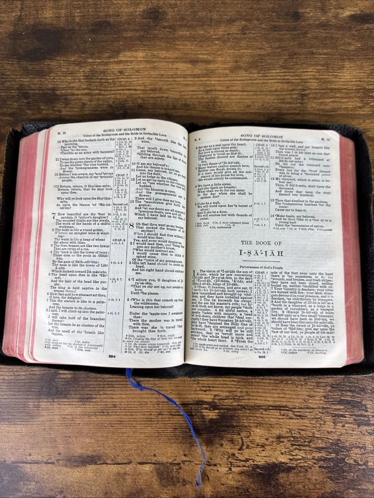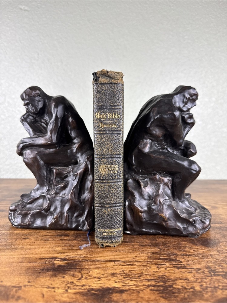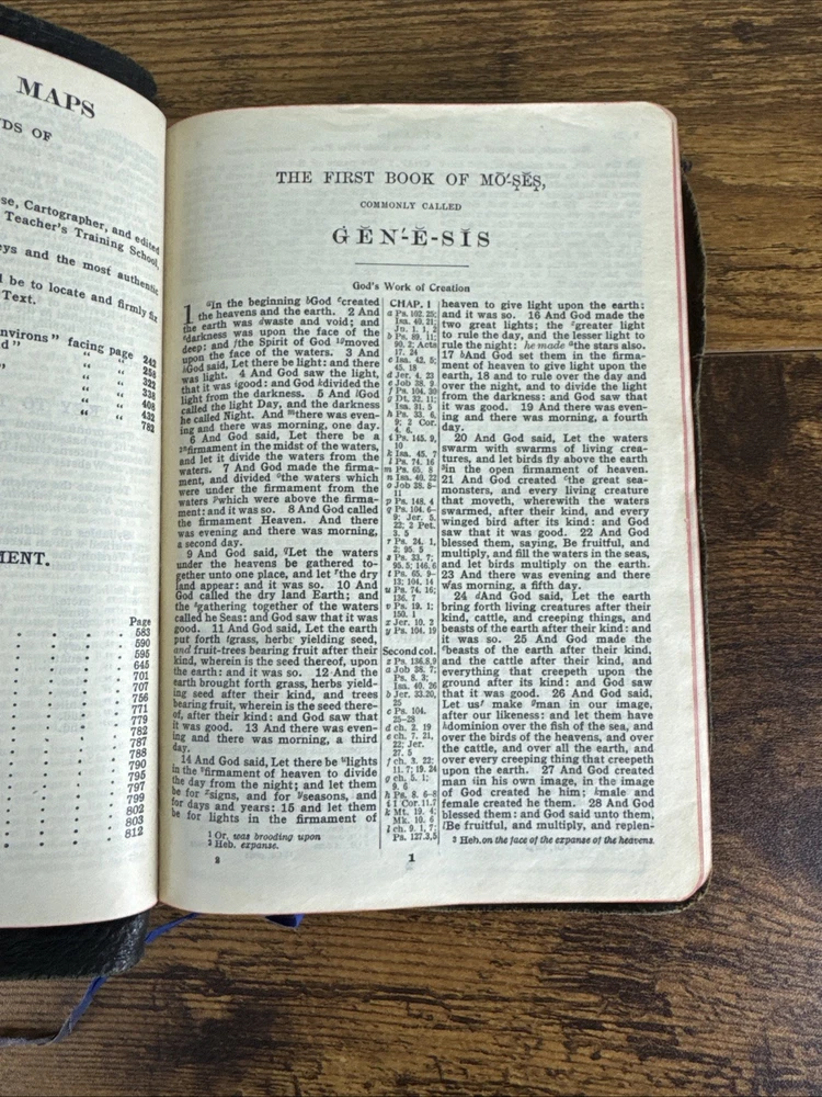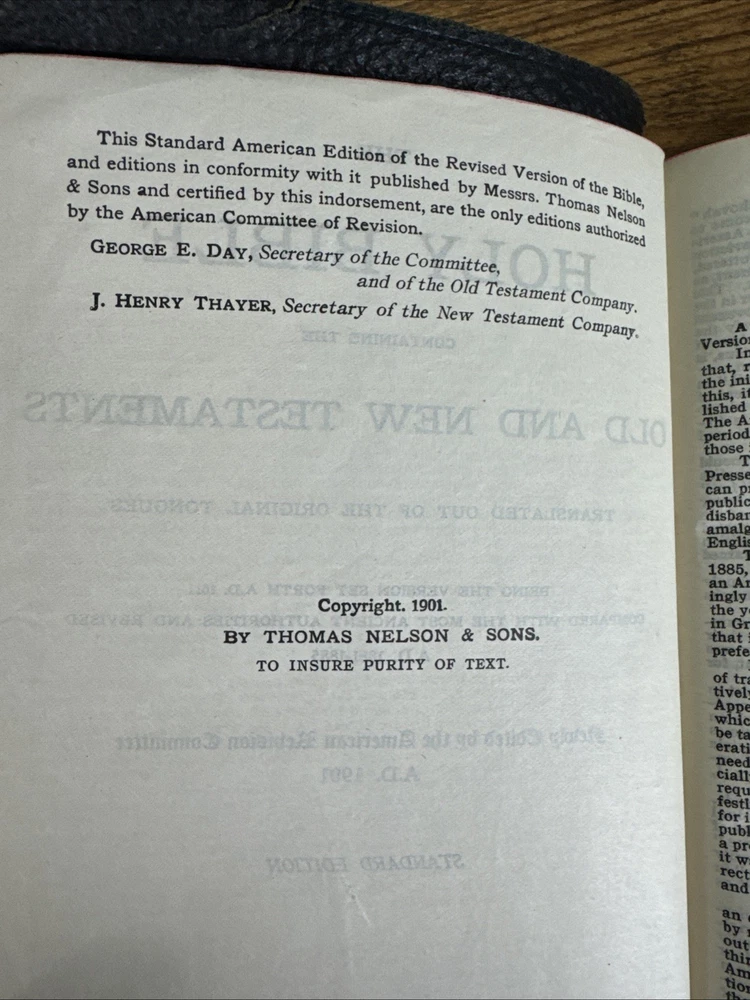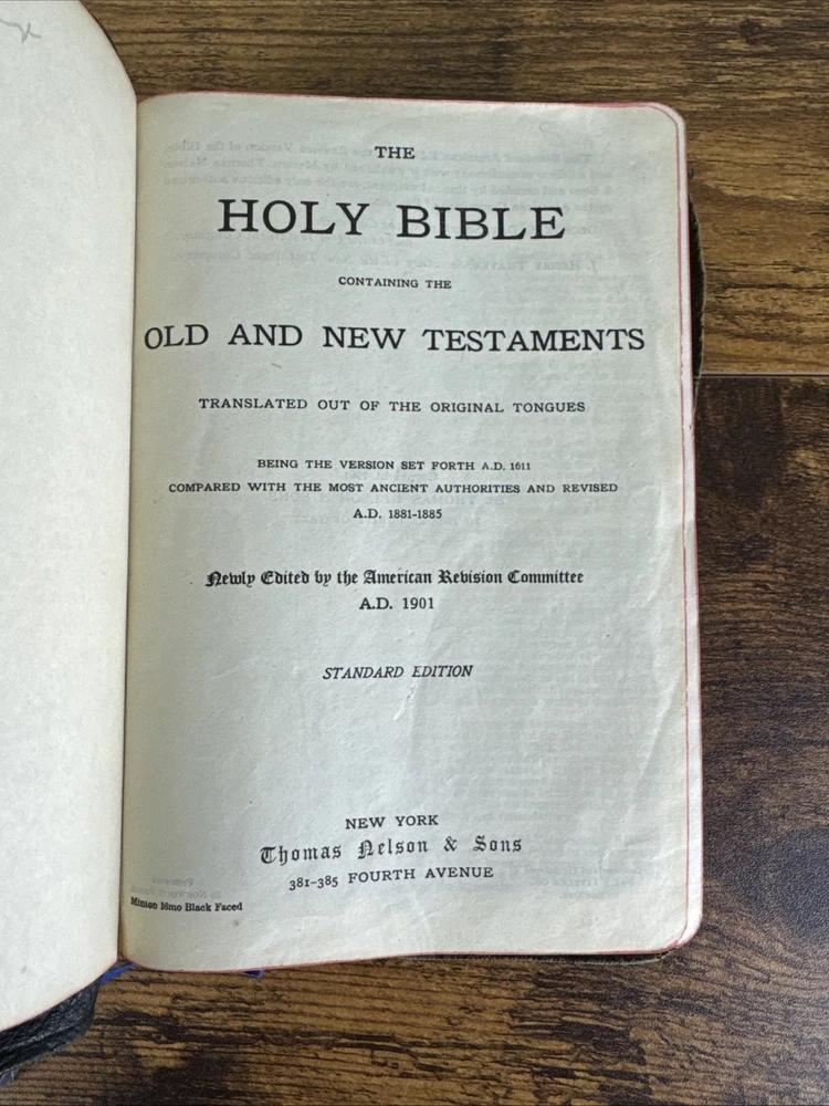 1901 HOLY BIBLE SELF-PRONOUNCING NELSON AMERICAN STANDARD VERSION - REFERENCES Minor-moderate wear to the outside leather with some tears along the edges, light markings on the inside front/back endpapers, the book is otherwise in good condition with no writing or markings throughout the pages. Message for any questions or concerns.