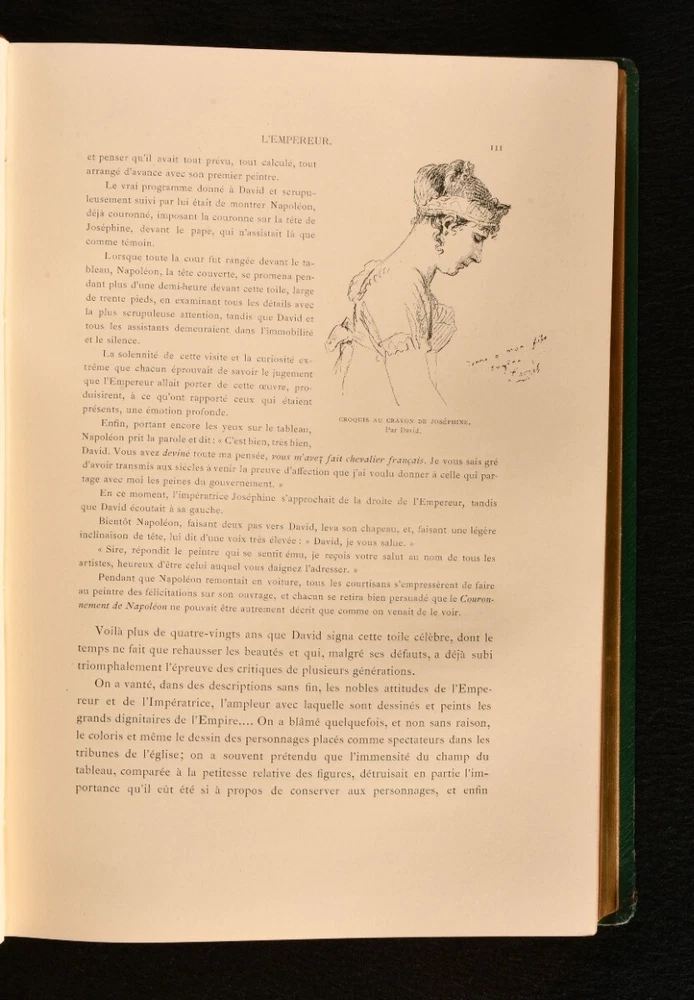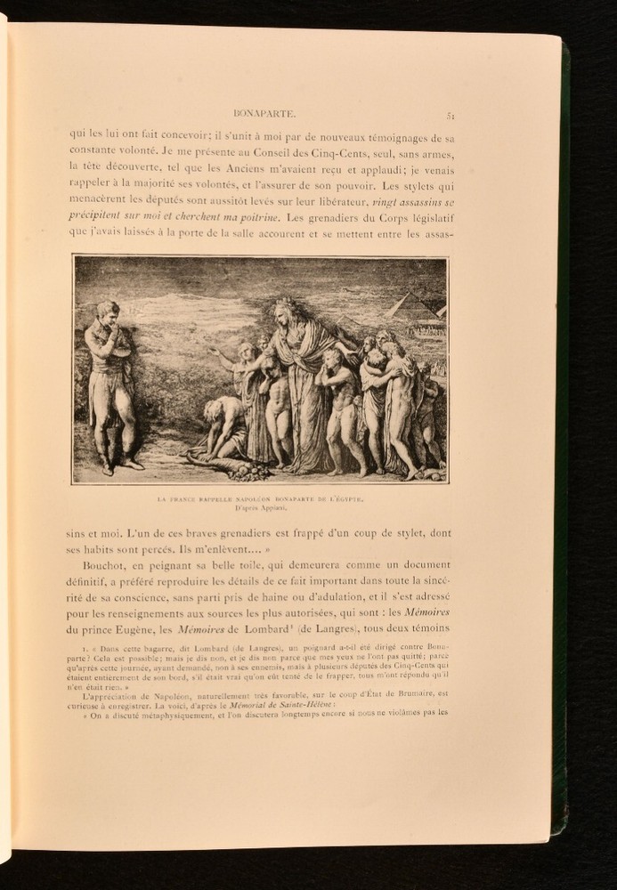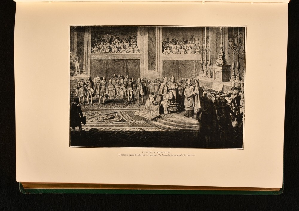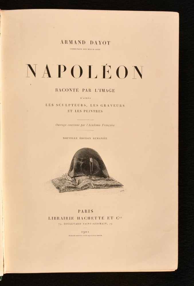 Click here to see our other books! Napoleon Raconte par l'Image d'Apres les Sculpteurs, les Graveurs, et les Peintres Armand Dayot 1902 Librairie Hachette et Cie : Paris 12" by 8" [5], ii-iv, [1], 2-388, [3pp] SUMMARY A French study into the image and life of Napoleon Bonaparte, illustrated heavily throughout with portraits and satirical images. Decorative Binding,Illustrated,Leather Binding Overall Condition: Very Good This book weighs 3 KG when packed UK Postage: £ 3.99 US Postage: £ 36.99 EU Postage : £ 25.99 European Postage: £ 27.99 Asia Postage: £ 47.99 Worldwide Postage: £ 69.99 DESCRIPTION In the original French. A study of the images surrounding Napoleon Bonaparte, from his striking portraits to the satirical illustrations of newspapers under his reign. An interesting biography on the polarising historical figure. Illustrated with a frontispiece, and both full-paged and in-text illustrations. Written by Armand Dayot, a French art critic and historian. Bookplate of Major Sir Brunel Cohen to the front pastedown, with a later example of his bookplate loosely inserted. Cohen was a British Conservative Party politician, who massively campaigned on the behalf of disabled people after he lost both of his legs in the First World War. Prior owner's ink inscription to the recto to the front endpaper, 'From Theresa Otterbourg, Jack's godmother who wishes him many happy returns of his birthday - 1905'. Theresa was the godmother of Jack Benn Cohen, whose bookplate it to the front pastedown. CONDITION In the original quarter morocco binding with decorative cloth to the boards. Externally, generally smart, with some light rubbing to the boards and spines. Extremities are a little worn. Spine is a touch faded. Front hinge is starting but firm. Bookplate to the front pastedown. Prior owner's ink inscription to the recto to the front endpaper. Internally, firmly bound. Pages are bright and clean, with a couple of light handling marks. Overall Condition: Very Good GLOSSARY OF TERMS Overall Condition (Dustwrapper condition rating is shown after that for the book itself, where a dustwrapper is present) Fine - Very well preserved copy showing very little wear Very Good Indeed - Only one or two minor faults, really a very attractive copy Very Good - Quite a wide term meaning no major faults but probably several smaller ones often expected given the age of the book, but still a respectable copy Good - Meaning not very good. Some more serious faults as will be described in the condition report under 'condition' Good Only - Meaning one or more faults that could really do with repair Fair - As with good only above but with other faults leaving a compromised copy even after repair Poor - Really bad and possibly seriously incomplete. We only sell books in this condition where their rarity or value makes them attractive none the less. Major defects will be described. GUARANTEE We offer a full money back guarantee on our descriptions. Please ask for details and conditions. We prefer PAYPAL. If you pay via PAYPAL we will post the item off the same or the next working day with the postage you have selected. Please note we cannot accept USD cheques