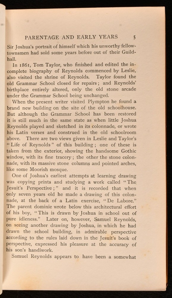 Click here to see our other books! Sir Joshua Reynolds His Life and Art Lord Ronald Sutherland Gower 1902 George Bell and Sons : London 8.5" by 5.5" xv, 144pp SUMMARY An early edition of this biography of Joshua Reynolds in Bumpus signed full calf binding. Early Edition,Illustrated,Leather Binding Overall Condition: Very Good This book weighs 0.75 KG when packed UK Postage: £ 3.99 US Postage: £ 19.99 EU Postage : £ 15.99 European Postage: £ 16.99 Asia Postage: £ 21.99 Worldwide Postage: £ 25.99 DESCRIPTION Early edition of Sir Joshua Reynolds His Life and Art by Lord Ronald Sutherland Gower in Bumpus signed full calf binding. A lovely biography of the English portrait painter of the eighteenth century. Illustrated with seventy nine monochrome plates. Collated, complete. Prior owner's ink inscriptions to the first free endpaper. CONDITION In full Bumpus signed full calf binding. Externally, smart. There is some bumping to the head and tail of the spine and to the extremities. There is some light marking to the front board. Prior owner's ink inscriptions to the first free endpaper. Internally, firmly bound. The pages are bright and clean Overall Condition: Very Good GLOSSARY OF TERMS Overall Condition (Dustwrapper condition rating is shown after that for the book itself, where a dustwrapper is present) Fine - Very well preserved copy showing very little wear Very Good Indeed - Only one or two minor faults, really a very attractive copy Very Good - Quite a wide term meaning no major faults but probably several smaller ones often expected given the age of the book, but still a respectable copy Good - Meaning not very good. Some more serious faults as will be described in the condition report under 'condition' Good Only - Meaning one or more faults that could really do with repair Fair - As with good only above but with other faults leaving a compromised copy even after repair Poor - Really bad and possibly seriously incomplete. We only sell books in this condition where their rarity or value makes them attractive none the less. Major defects will be described. GUARANTEE We offer a full money back guarantee on our descriptions. Please ask for details and conditions. We prefer PAYPAL. If you pay via PAYPAL we will post the item off the same or the next working day with the postage you have selected. Please note we cannot accept USD cheques