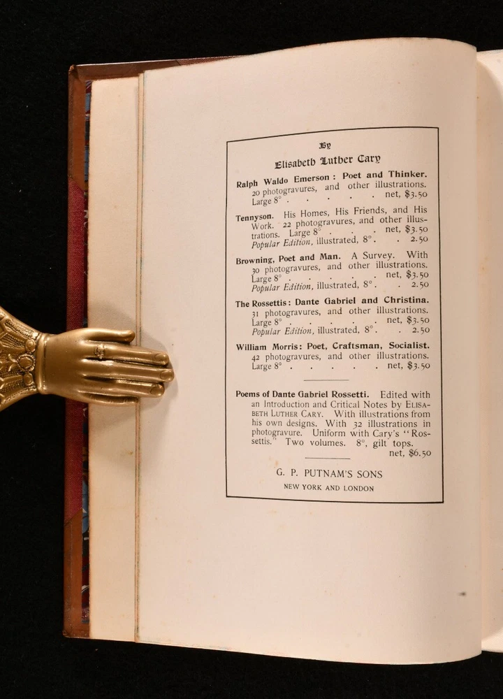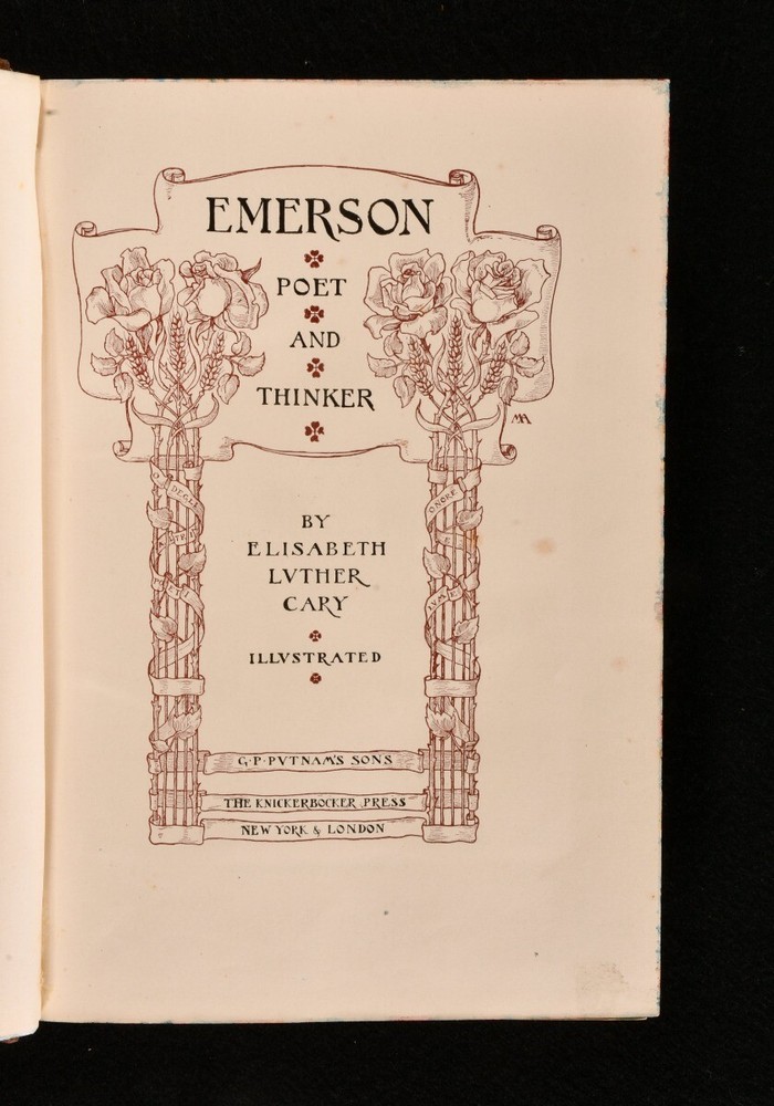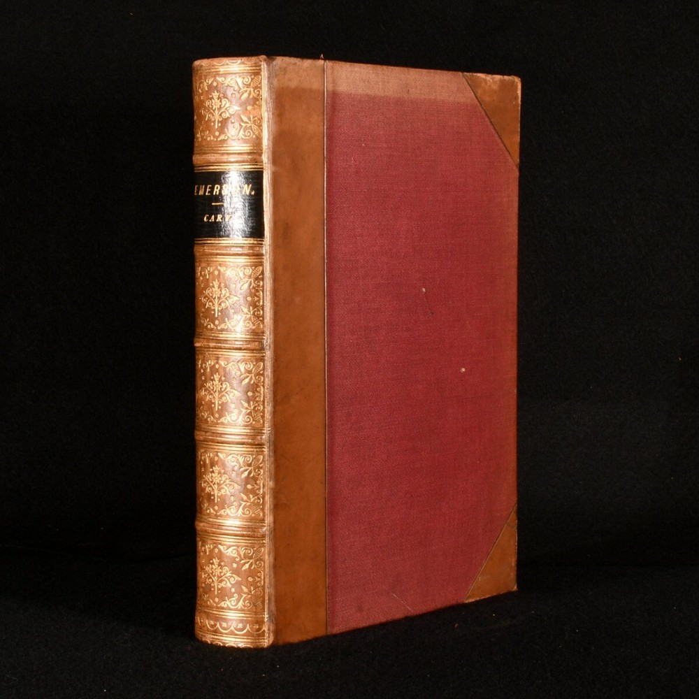 Click here to see our other books! Emerson: Poet and Thinker By Elizabeth Luther Cary Illustrated Elizabeth Luther Cary 1904 G. P. Putnam's Sons : New York 9.5" by 6.5" [6], iii-viii, 284pp SUMMARY A wonderfully illustrated first edition of this charming study of the life and work of Emerson. First Edition,Illustrated,Leather Binding,Original Binding Overall Condition: Very Good This book weighs 1.5 KG when packed UK Postage: £ 3.99 US Postage: £ 23.99 EU Postage : £ 18.99 European Postage: £ 19.99 Asia Postage: £ 31.99 Worldwide Postage: £ 32.99 DESCRIPTION A very smart, half calf, first edition of ‘Emerson: Poet and Thinker’ by Elizabeth Luther Cary. Ralph Waldo Emerson (1803 – 1882), was an American essayist, lecturer, philosopher, abolitionist, and poet who led the transcendentalist movement of the mid-19th century. Emerson was seen as a champion of individualism and his work has greatly influenced the thinkers, writers, and poets that followed him. Emerson is also well known as a mentor and friend of Henry David Thoreau. With a page listing other publications of Cary’s works to the front. Containing 20 wonderful plates, including frontispiece, all with tissue guard. Collated, complete. Final plate is on page 162 rather than 172 as stated in the illustrations list at the front of the book. A printed paper note is stuck to the edge of the contents page: “The Essay on Emerson by Maeterlinck printed in this volume is included under arrangement with Mr. George Allen who controls the English publishing rights for the same.” CONDITION In a half calf binding with cloth to the boards. Gilt title and decoration to the spine. Externally, smart. Some very light markings to the boards. Very light rubbing to the extremities. Marbled paper to pastedowns and recto of endpapers. School prize bookplate to recto of front endpaper. Dated 1904-1905. Spotting to endpapers, particularly rear endpapers. Internally, firmly bound. Pages are bright and clean with the occasional spot. Printed paper note stuck to edge of contents page. Overall Condition: Very Good GLOSSARY OF TERMS Overall Condition (Dustwrapper condition rating is shown after that for the book itself, where a dustwrapper is present) Fine - Very well preserved copy showing very little wear Very Good Indeed - Only one or two minor faults, really a very attractive copy Very Good - Quite a wide term meaning no major faults but probably several smaller ones often expected given the age of the book, but still a respectable copy Good - Meaning not very good. Some more serious faults as will be described in the condition report under 'condition' Good Only - Meaning one or more faults that could really do with repair Fair - As with good only above but with other faults leaving a compromised copy even after repair Poor - Really bad and possibly seriously incomplete. We only sell books in this condition where their rarity or value makes them attractive none the less. Major defects will be described. GUARANTEE We offer a full money back guarantee on our descriptions. Please ask for details and conditions. We prefer PAYPAL. If you pay via PAYPAL we will post the item off the same or the next working day with the postage you have selected. Please note we cannot accept USD cheques