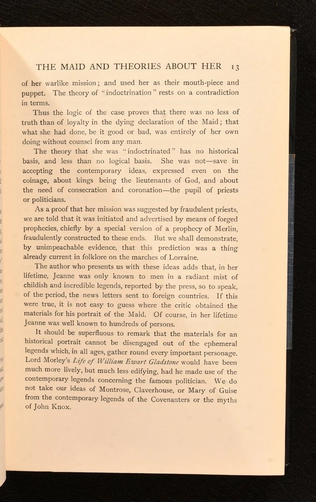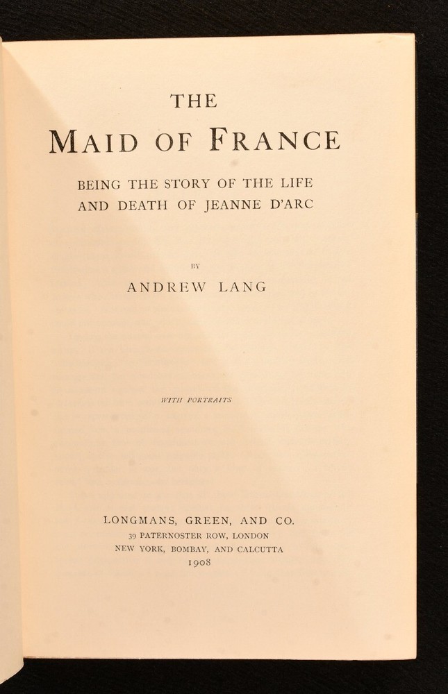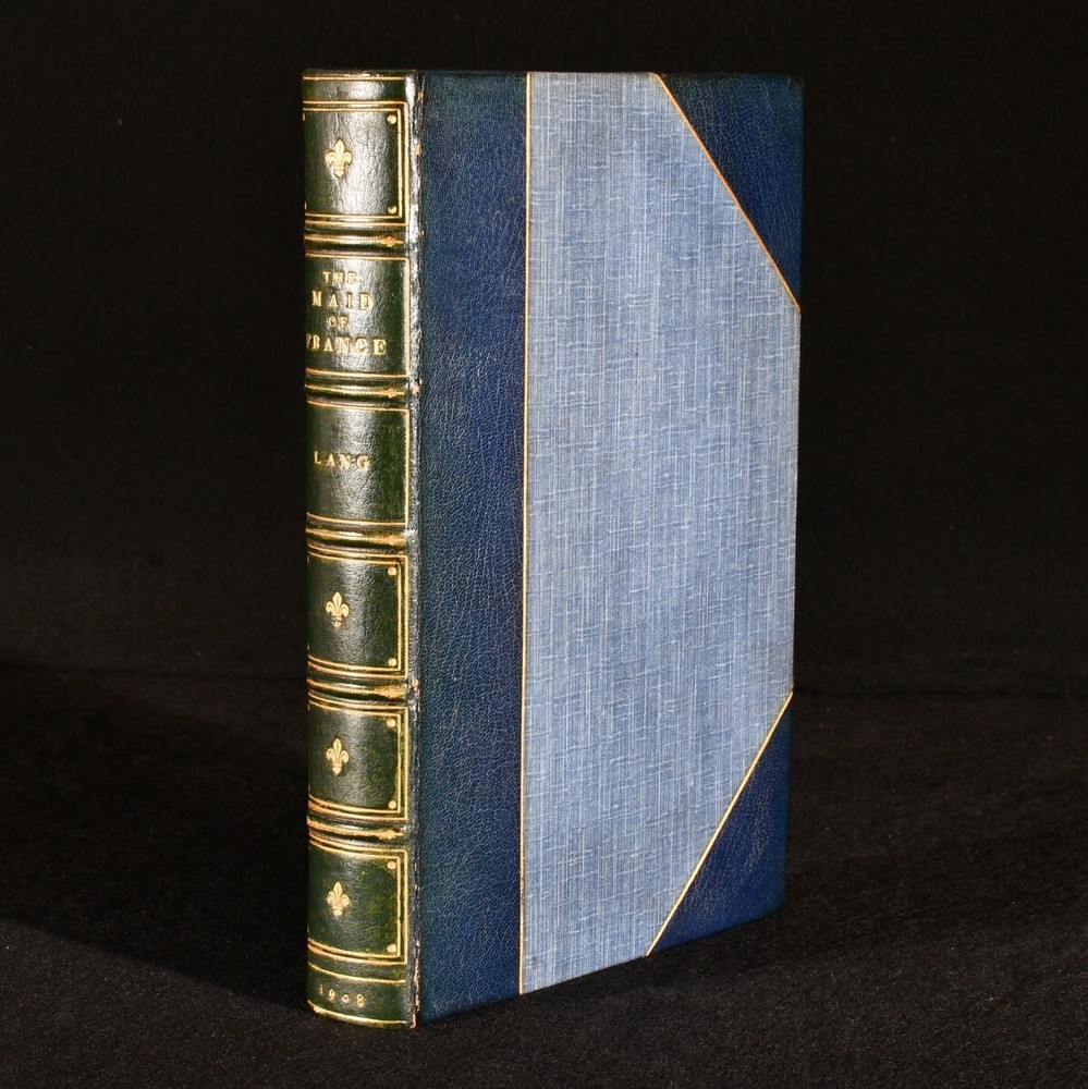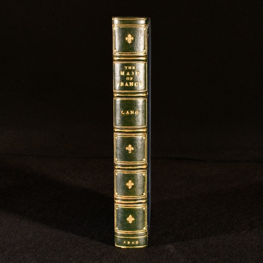 Click here to see our other books! The Maid of France, Being the Story of the Life and Death of Jeanne D'Arc Andrew Lang 1908 Longmans, Green, and Co. : London 9" by 6" xvi, 379pp. SUMMARY A wonderfully presented, first edition of Andrew Lang's thorough biography on Jeanne D'Arc, elegantly bound by Hatchard in half crushed morocco. First Edition,Illustrated,Leather Binding,Uncommon Overall Condition: Near Fine This book weighs 1 KG when packed UK Postage: £ 3.99 US Postage: £ 22.99 EU Postage : £ 16.99 European Postage: £ 17.99 Asia Postage: £ 22.99 Worldwide Postage: £ 28.99 DESCRIPTION The first edition. Smartly bound by Hatchards in half crushed morocco with cloth to the boards. Bound with half title. Written by Scottish poet and novelist Andrew Lang, widely recognised for his series of beautifully illustrated Fairy Books. An extremely well-researched and comprehensive biography surrounding the life and times of Joan of Arc, or Jeanne D'Arc, who was also known as the Maid of France. Lang explores Joan's short but extremely influential life, giving insight into why she was given the title of the patron saint of France. Illustrated with a frontispiece, two plates and three maps. Collated, complete. CONDITION Bound by Hatchards in half crushed morocco with cloth to the boards. Externally, lovely, with just a little rubbing to the extremities and joints. A touch of fading to the spine. Internally, firmly bound. Pages are very bright and clean. Overall Condition: Near Fine GLOSSARY OF TERMS Overall Condition (Dustwrapper condition rating is shown after that for the book itself, where a dustwrapper is present) Fine - Very well preserved copy showing very little wear Very Good Indeed - Only one or two minor faults, really a very attractive copy Very Good - Quite a wide term meaning no major faults but probably several smaller ones often expected given the age of the book, but still a respectable copy Good - Meaning not very good. Some more serious faults as will be described in the condition report under 'condition' Good Only - Meaning one or more faults that could really do with repair Fair - As with good only above but with other faults leaving a compromised copy even after repair Poor - Really bad and possibly seriously incomplete. We only sell books in this condition where their rarity or value makes them attractive none the less. Major defects will be described. GUARANTEE We offer a full money back guarantee on our descriptions. Please ask for details and conditions. We prefer PAYPAL. If you pay via PAYPAL we will post the item off the same or the next working day with the postage you have selected. Please note we cannot accept USD cheques