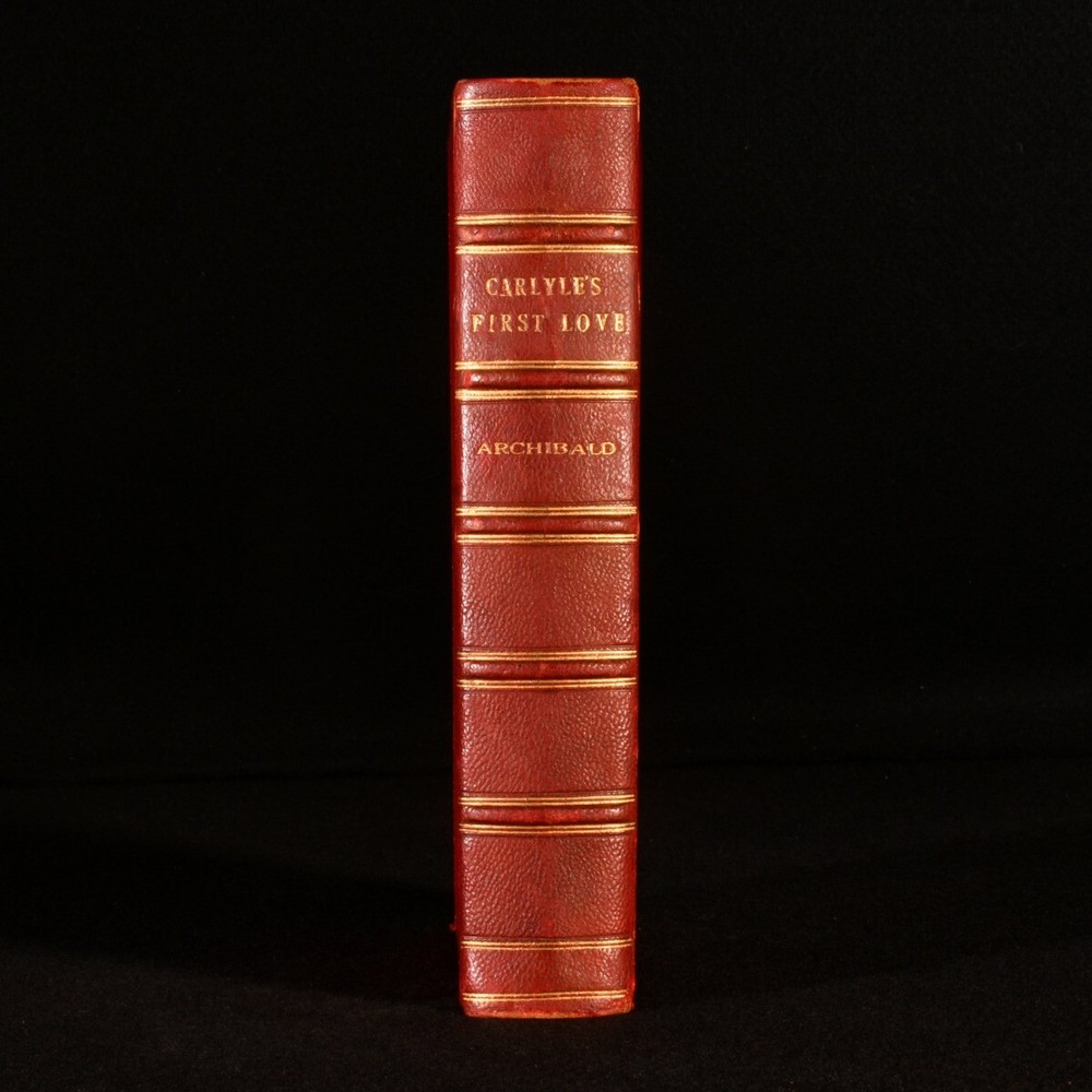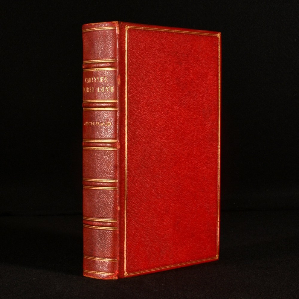 Click here to see our other books! Carlyle's First Love: Margaret Gordon, Lady Bannerman An account of her life, ancestry and homes, her family and friends Raymond Clare Archibald 1910 John Lane: The Bodley Head : London 8.5" by 5.5" xvi, 214pp. SUMMARY An illustrated first edition copy of this biography of Margaret Gordon, Lady Bannerman, the first love of Thomas Carlyle. Colour Plates,First Edition,Folding Plates,Illustrated,Leather Binding Overall Condition: Very Good This book weighs 0.75 KG when packed UK Postage: £ 3.99 US Postage: £ 19.99 EU Postage : £ 15.99 European Postage: £ 16.99 Asia Postage: £ 21.99 Worldwide Postage: £ 25.99 DESCRIPTION The first edition of this work in a full morocco binding, with marbled paste downs, endpapers and edges. Ink inscriptions to the front free end paper and first blank page. Illustrated with a colour frontispiece and a further 20 plates, one of which is a folding plate. Folding family tree to the rear. Collated complete. Raymond Clare Archibald (1875-1955) was a prominent Canadian-American mathematician. Known for his work as a historian of mathematics, Archibald contributed to many journals and authored a number of books. This was his biography of Margaret Gordon, Lady Bannerman, who was at one time the first love of Thomas Carlyle, a Scottish essayist, historian, and philosopher. CONDITION In a full morocco binding. Externally very smart, with only light rubbing to the spine joints. Spine is slightly darkened. Internally, firmly bound. Pages are bright and clean, but with a scattering of spots throughout. Overall Condition: Very Good GLOSSARY OF TERMS Overall Condition (Dustwrapper condition rating is shown after that for the book itself, where a dustwrapper is present) Fine - Very well preserved copy showing very little wear Very Good Indeed - Only one or two minor faults, really a very attractive copy Very Good - Quite a wide term meaning no major faults but probably several smaller ones often expected given the age of the book, but still a respectable copy Good - Meaning not very good. Some more serious faults as will be described in the condition report under 'condition' Good Only - Meaning one or more faults that could really do with repair Fair - As with good only above but with other faults leaving a compromised copy even after repair Poor - Really bad and possibly seriously incomplete. We only sell books in this condition where their rarity or value makes them attractive none the less. Major defects will be described. GUARANTEE We offer a full money back guarantee on our descriptions. Please ask for details and conditions. We prefer PAYPAL. If you pay via PAYPAL we will post the item off the same or the next working day with the postage you have selected. Please note we cannot accept USD cheques