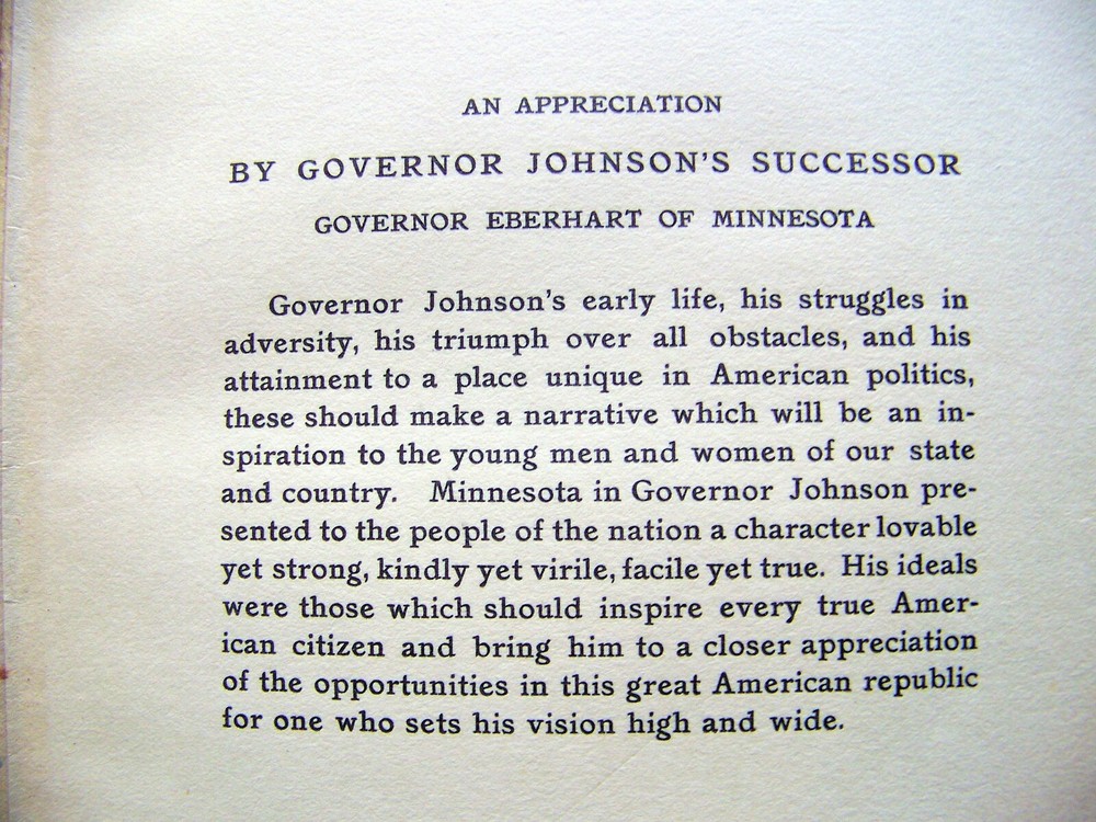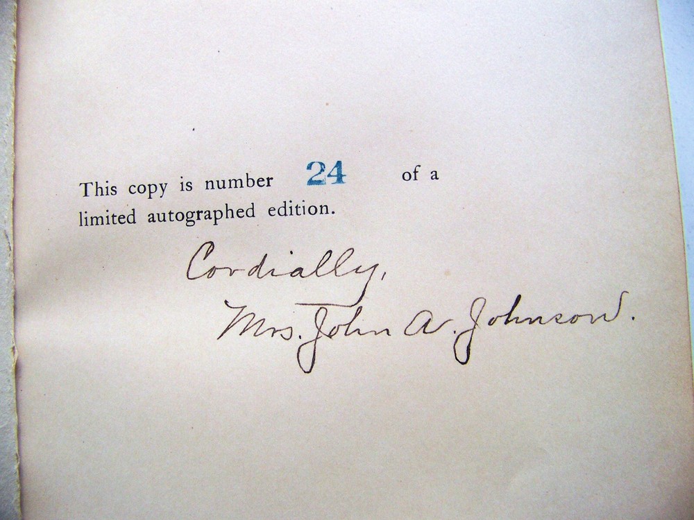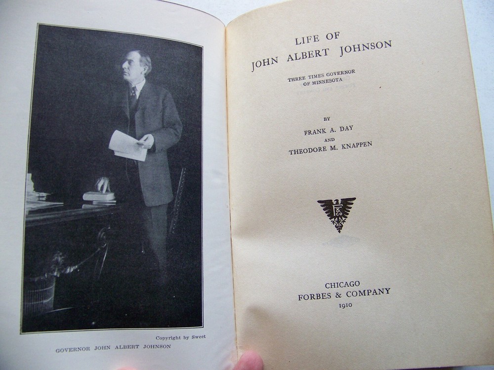 WE'VE PURCHASED ANOTHER TERRIFIC COLLECTION OF BOOKS A LIBRARY FULL OF VINTAGE BOOKS! FIRST EDITIONS SCARCE TITLES A WIDE VARIETY OF TOPICS SO GET COMFORTABLE...GRAB A CUP OF COFFEE...AND ENJOY SHOPPING RARE COPY OF THE 1910 LIMITED EDITION THIS COPY IS STAMPED '24' AND SIGNED BY THE WIFE OF THE GOVERNOR PHOTO ILLUSTRATED JOHNSON WAS A THREE TERM GOVERNOR OF MINNESOTA LIFE OF JOHN ALBERT JOHNSON BY: FRANK DAY PUBLISHED BY: FORBES