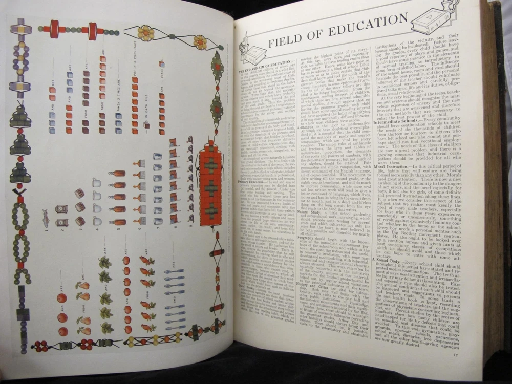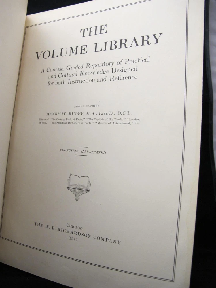 1911 ILLUSTRATED BOOK OF KNOWLEDGE Huge Leather Bound Antique Book Chromo Plates 1911 ILLUSTRATED BOOK OF KNOWLEDGE Huge Leather Bound Antique Book Chromo Plates Click image to enlarge Description The Volume Library [A Concise, Graded Repository of Practical and Cultural Knowledge Designed for both Instruction and Reference. 1911, first edition. 11.75" x 8.5" x 4.5" 830 numbered pages + 27 index pages.] Very good condition antique book. Bound in three-quarter leather with marbled end papers, marble stained end papers and gilt decorated spine. Light wear around edges; some fraying to cloth areas and leather lightly rubbed or scuffed; however, leather remains fully intact and gold lettering still bright. Pages are clean. Previous owner wrote name and date on first free end paper. Profusely illustrated with many woodcuts among text, full page plates in black and white, and many in full color. Get images that make Supersized seem small. Showcase your items with Auctiva's Listing Templates! THE simple solution for eBay sellers. Track Page Views With Auctiva's Counter